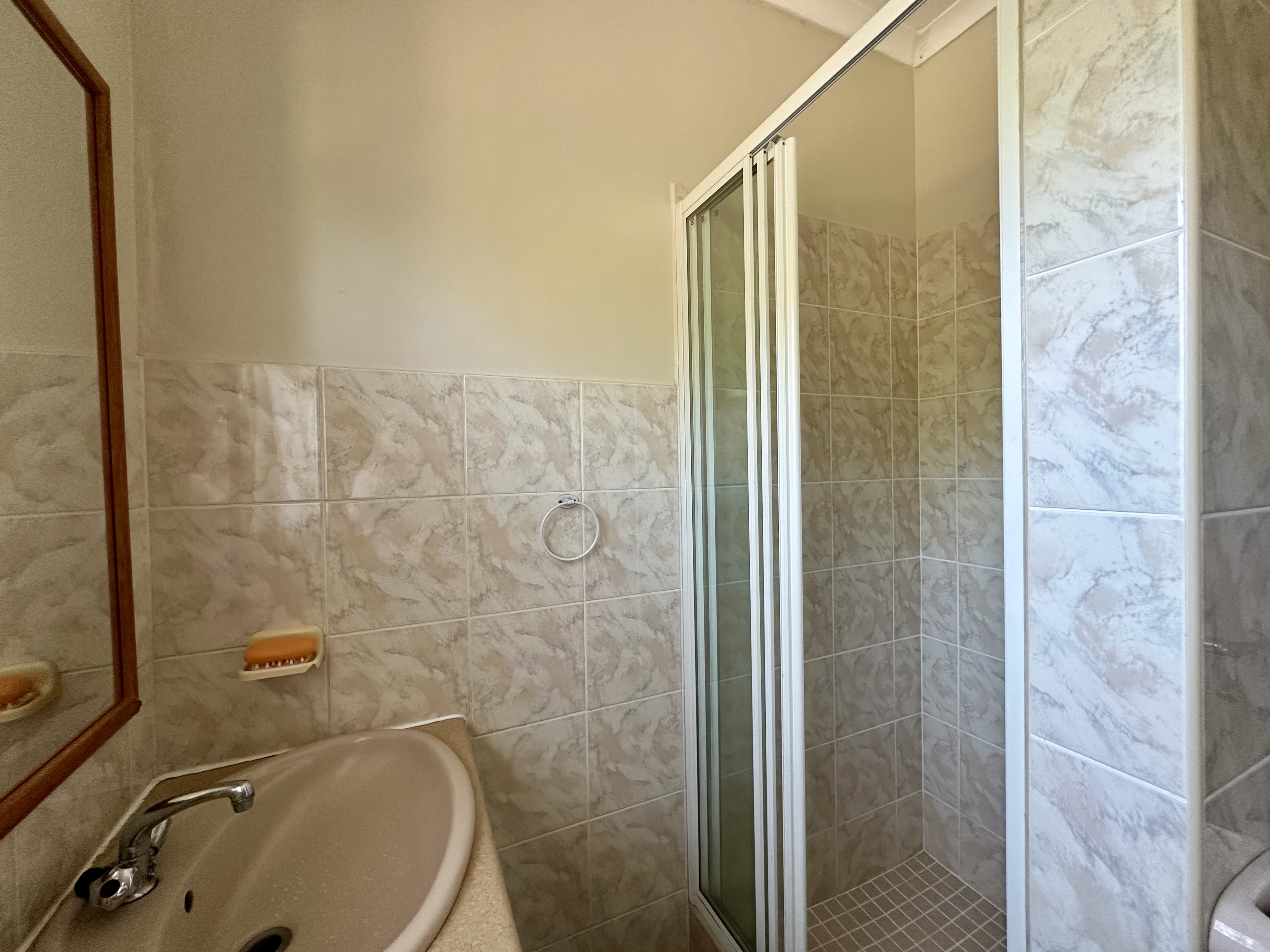 Step outside to the lovely patio overlooking a sparkling swimming pool and a large, well-kept garden. It’s the ideal setting for family braais, entertaining friends, or simply relaxing in the sun with your morning coffee.