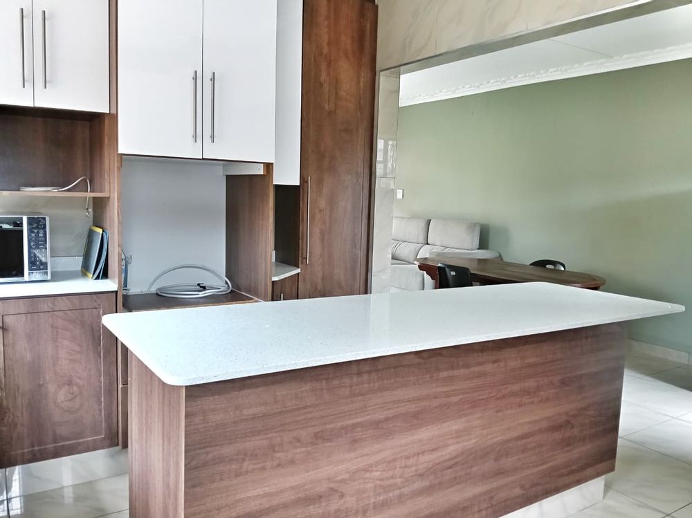 An added bonus is the neat one-bedroom granny flat, complete with its own kitchen, separate bathroom, and air conditioning, ideal for extra staff accommodation. Both the house and flat have their own prepaid electricity meters, and the main house includes a prepaid water meter. Security is taken care of with an alarm system and remote access gate, while parking is easy with a double open carport. Garden services and optional cleaning services are also available, making this property especially suitable for companies seeking convenience, comfort, and space.