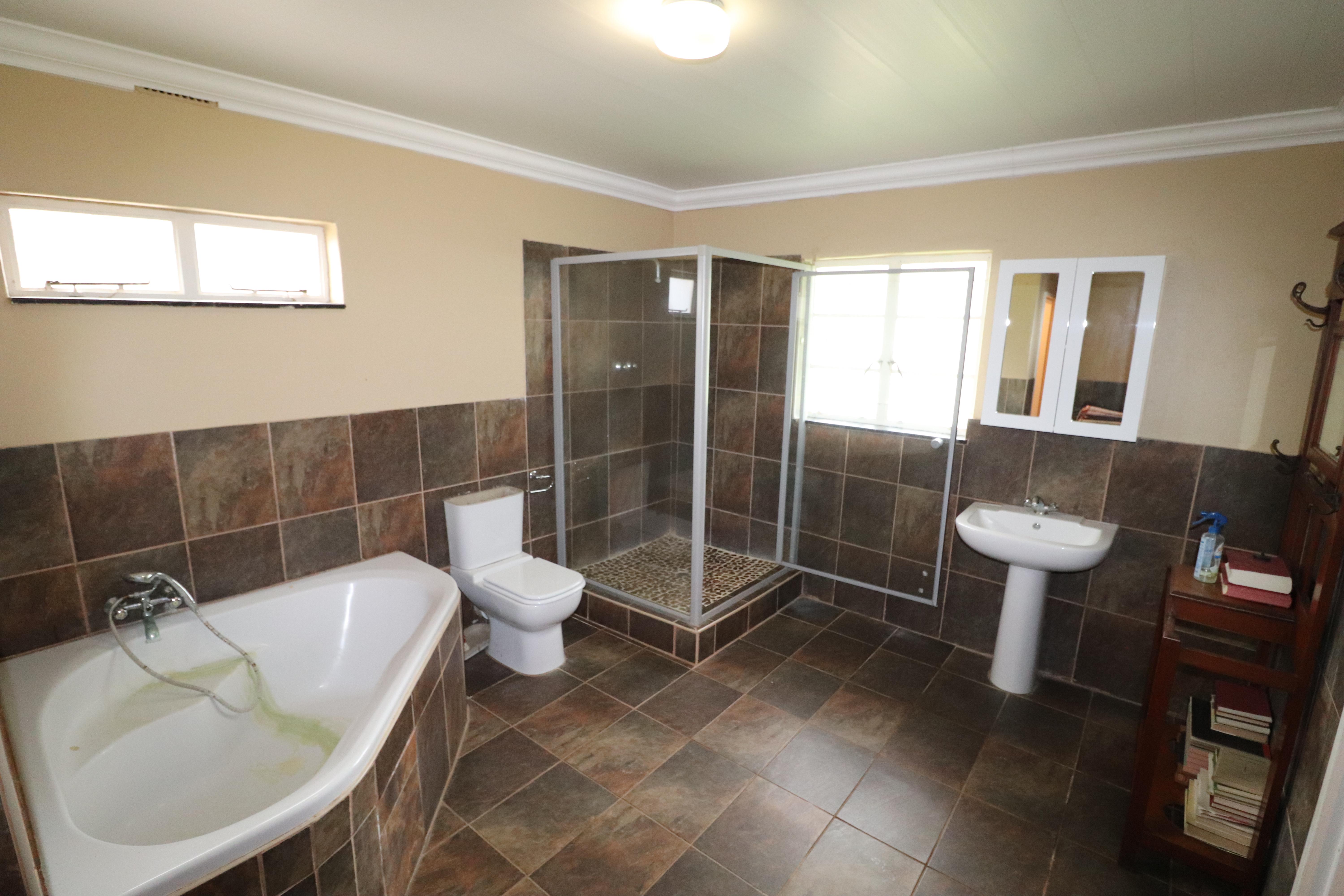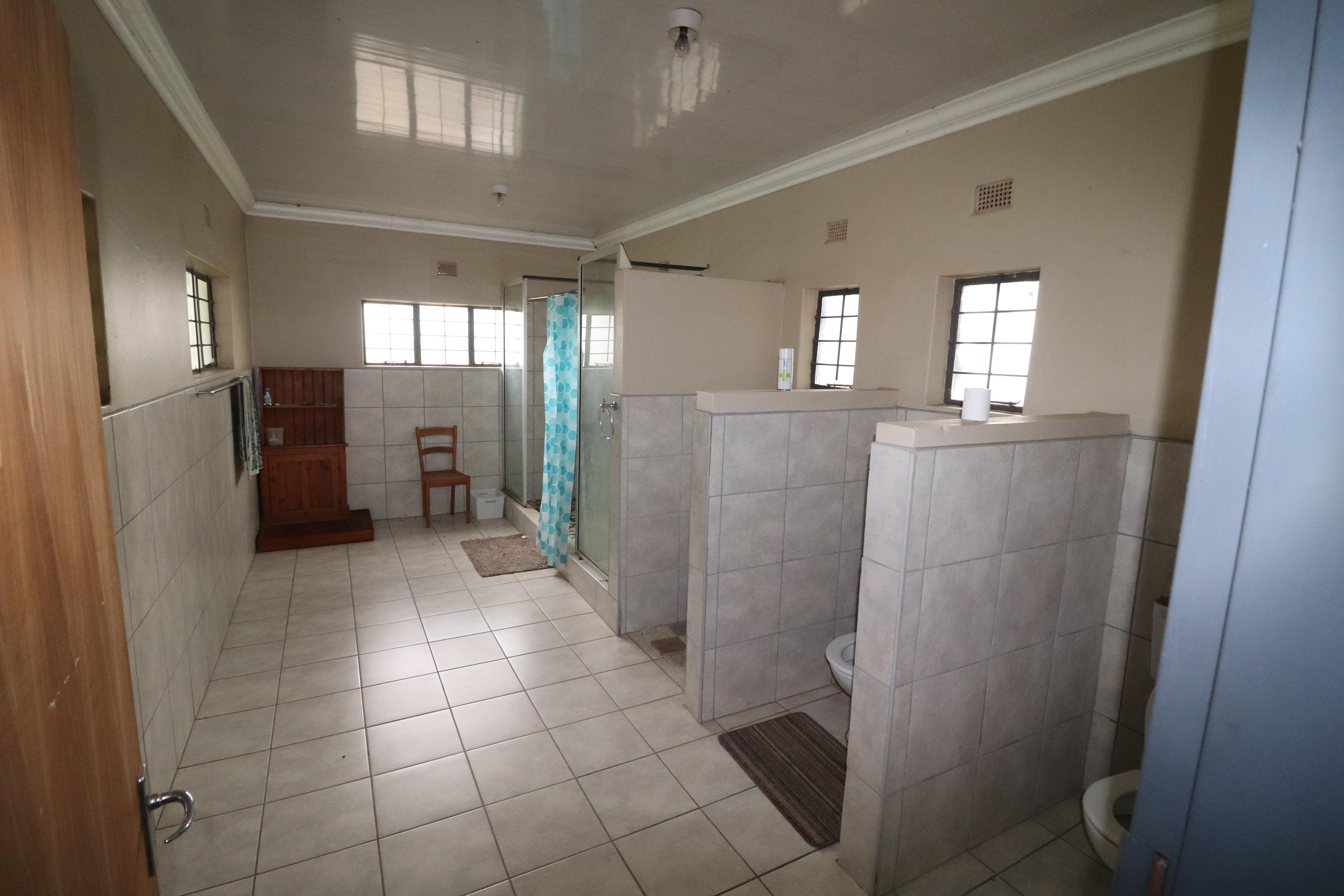 2 Bathrooms with 2 showers, 2 toilets, wash basins and bedroom.