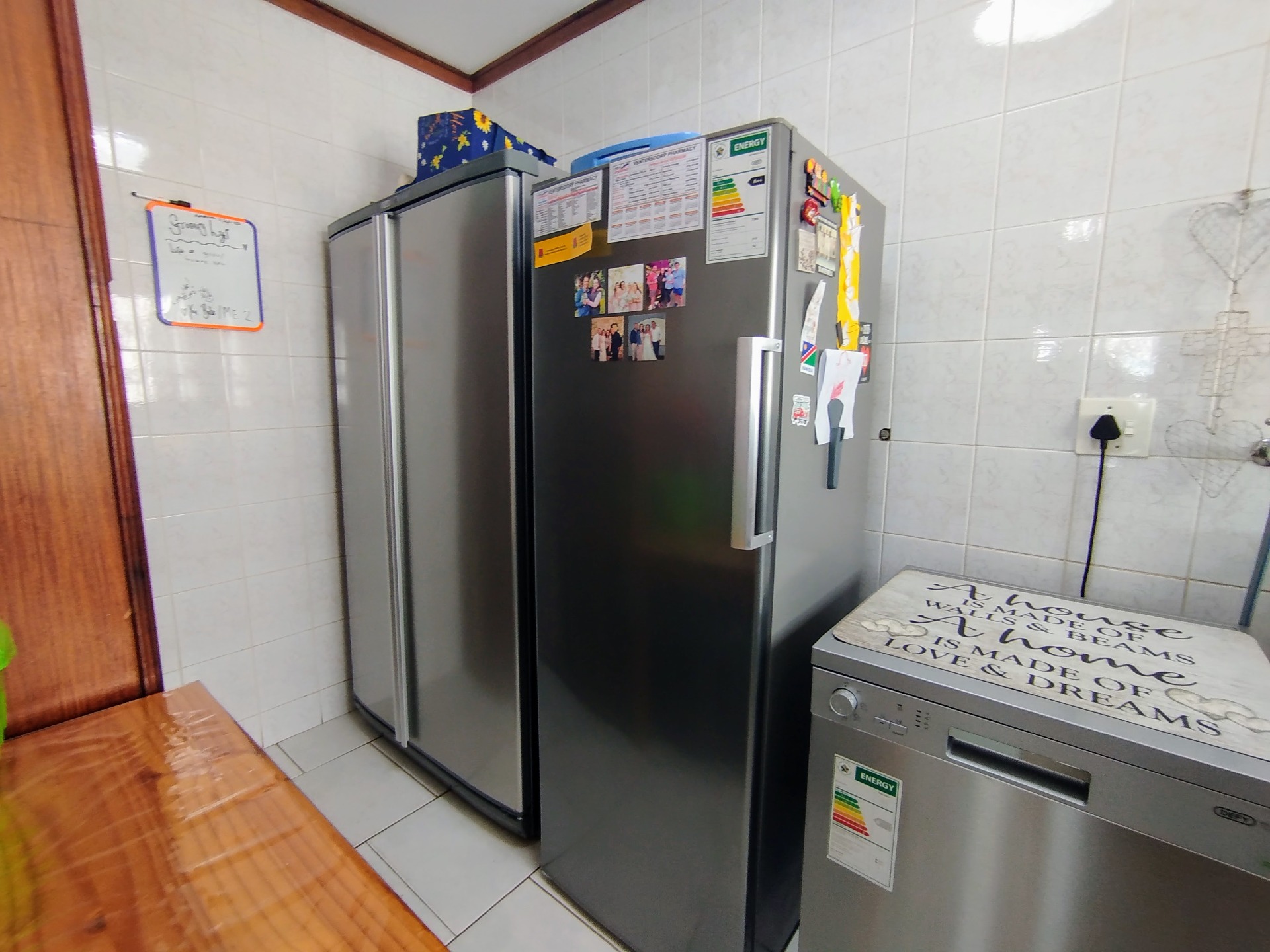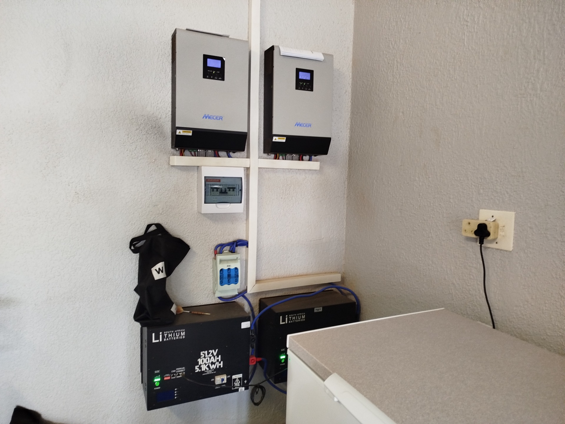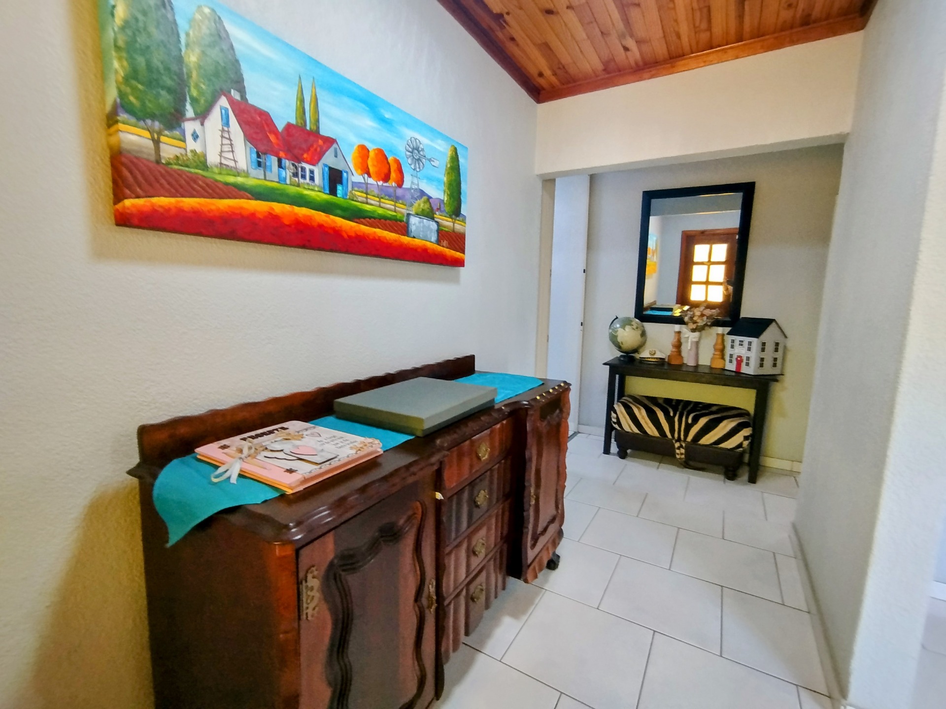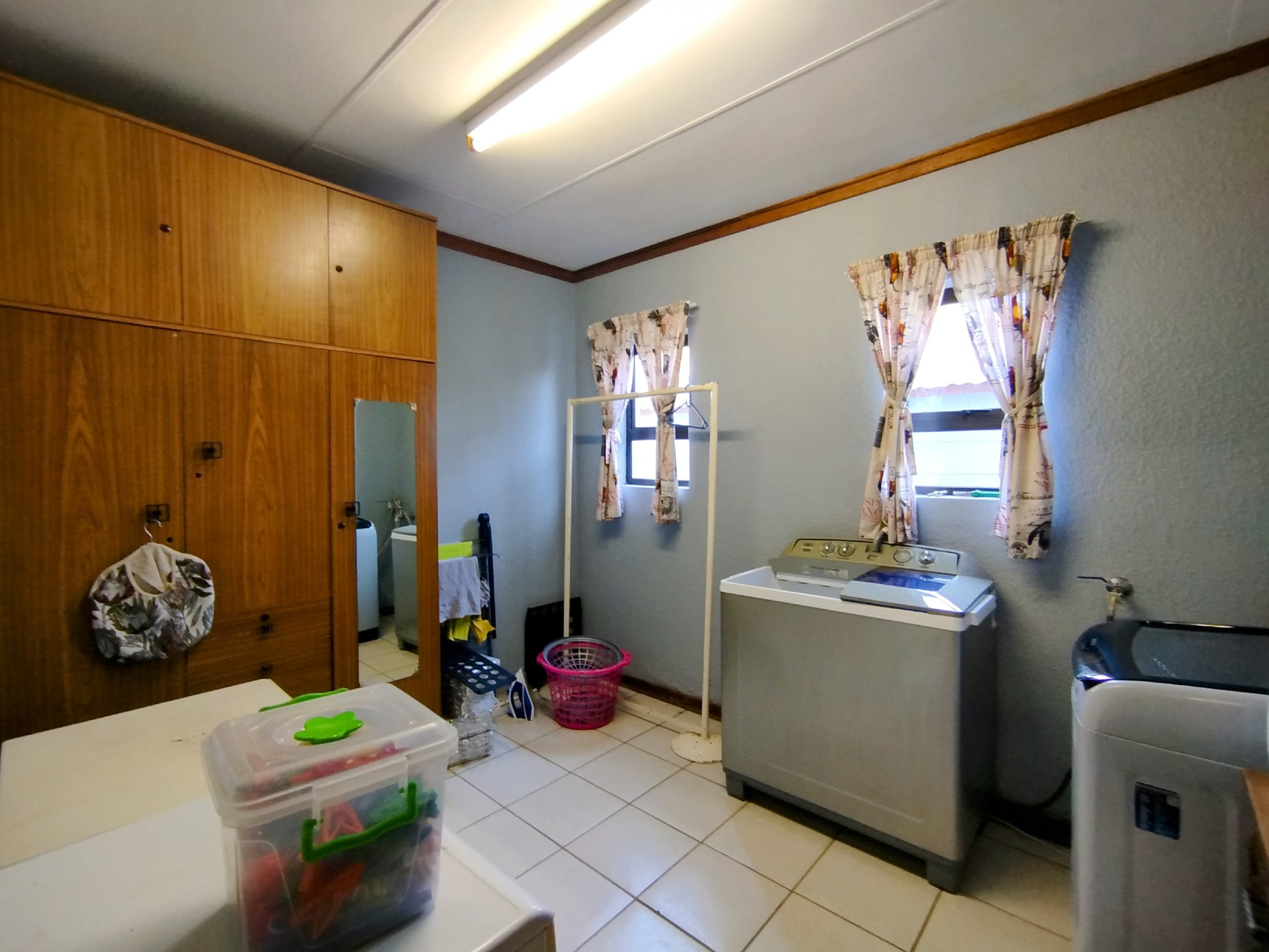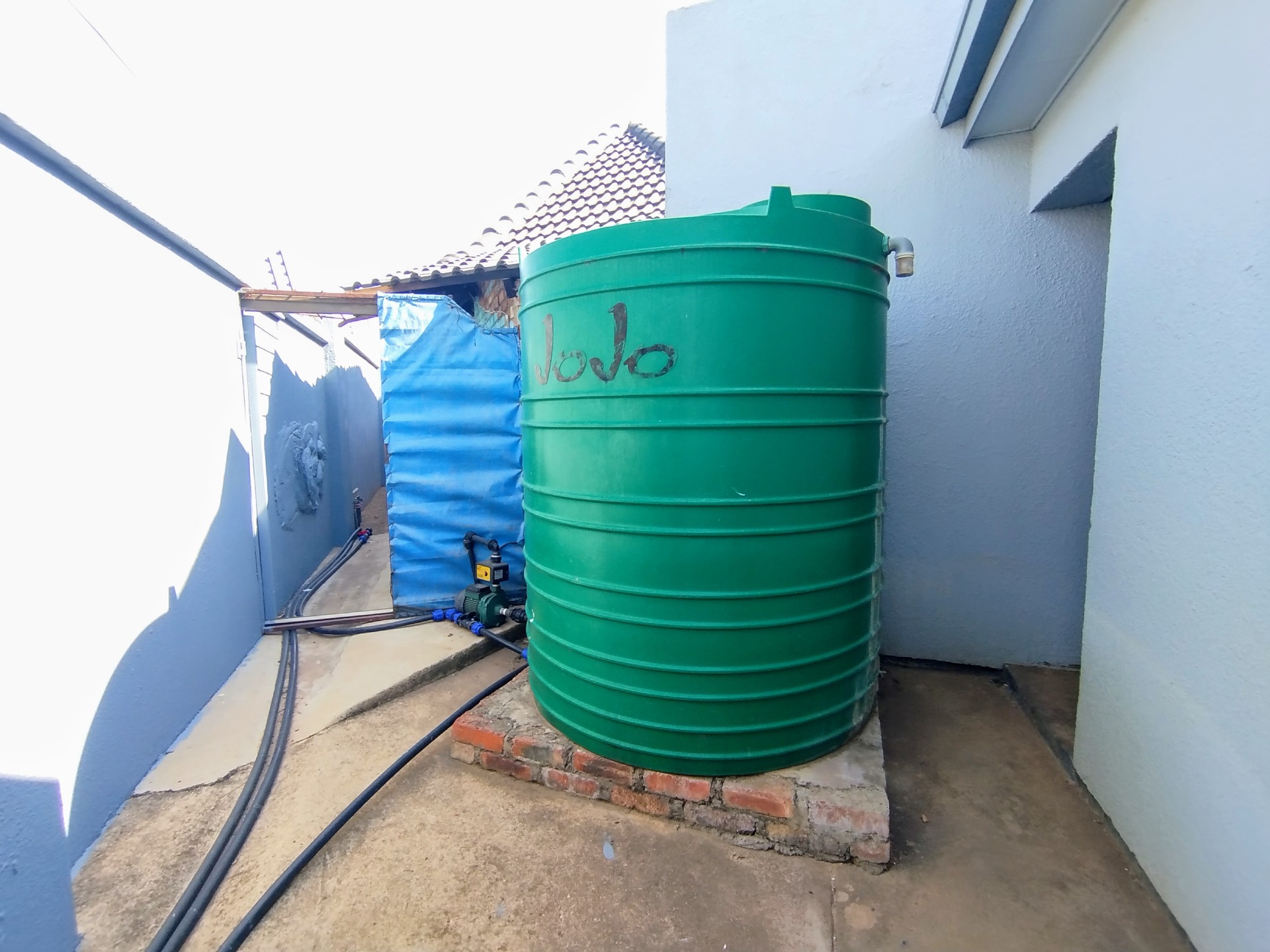 Additional features include a spacious Laundry, a Solder and an outside toilet. Plus, this home is fully equipped for handling loadshedding with solar panels, a gasstove, and a secure space with connection for a generator. Prepaid electricity ensures ease of management.