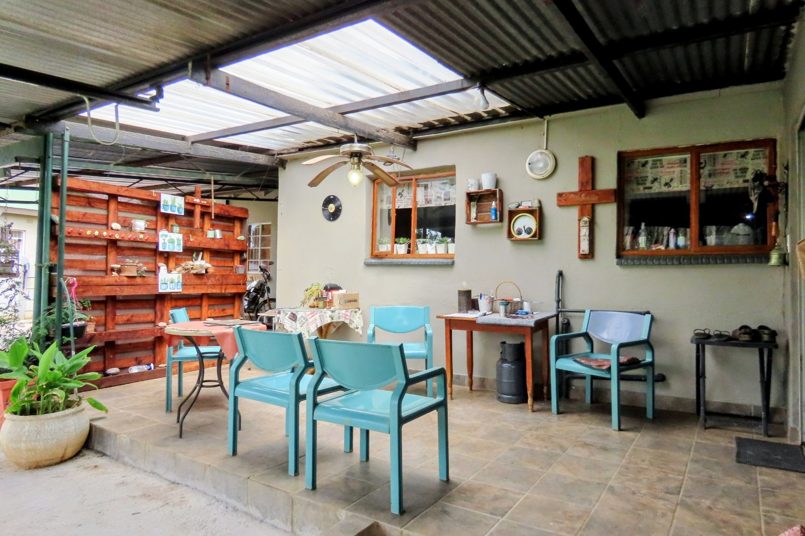 Step outside to a sparkling pool, a charming lapa with loft and built-in braai overlooking a luscious garden, and a rare underground cellar. Extras include a 2-bedroom flat, workshop with 3x storage rooms & outside toilet, greenhouse, borehole with automatic tank system. Lovely Patio for enjoying a sunset cocktail. 3x Carports
