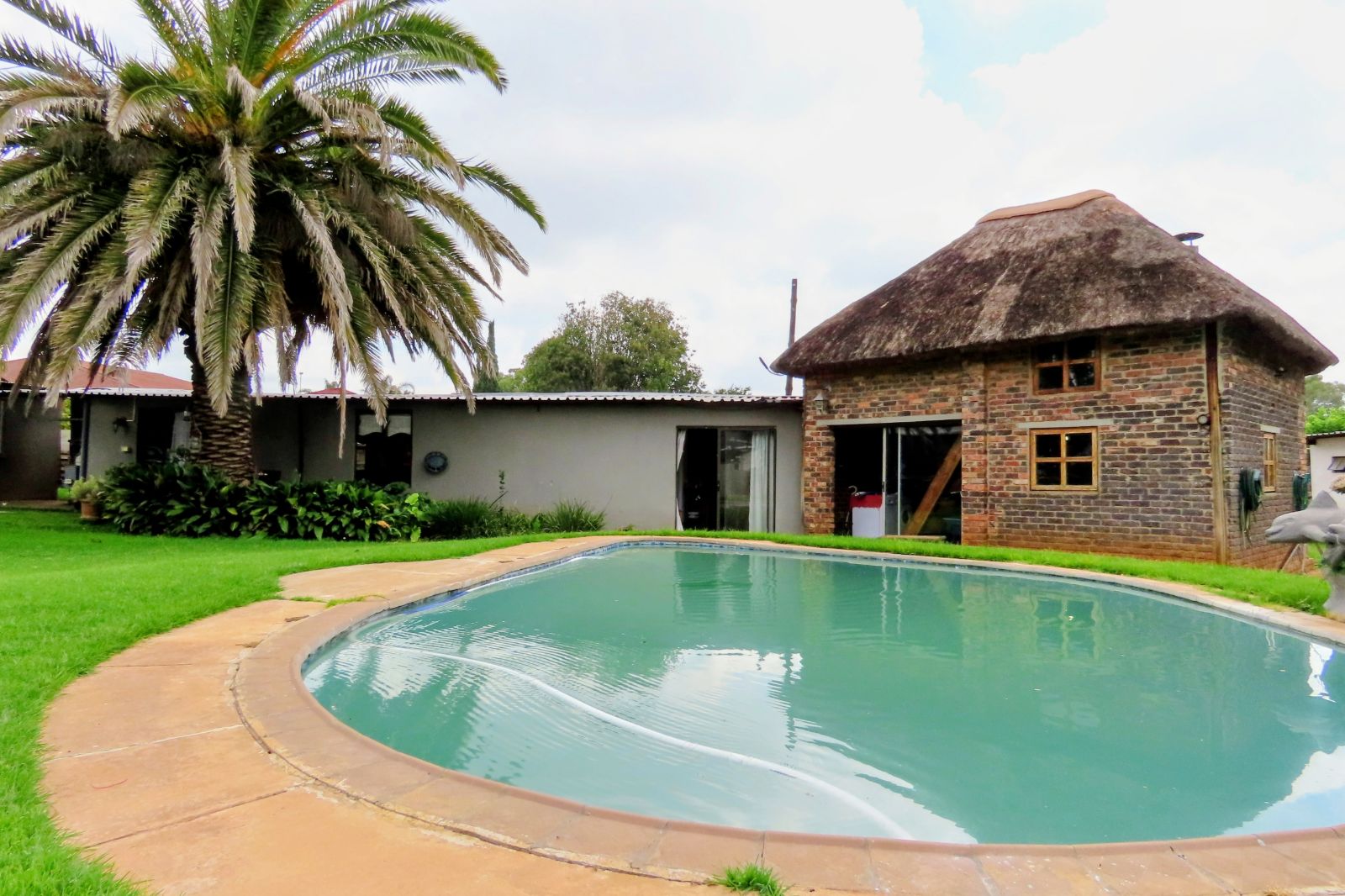 Set on a magnificent 1904sqm stand, this exceptional property offers luxury, space and endless potential. The 4-bedroom main home boasts a lavish main bedroom with walk-in closet, private garden area and on suite Jacuzzi, plus a second bathroom. A spacious, underfloor-heated Openplan Kitchen/Livingarea with separate Scullery & Laundry, two walk-in vaults. Huge Lounge for family gatherings. Solar.