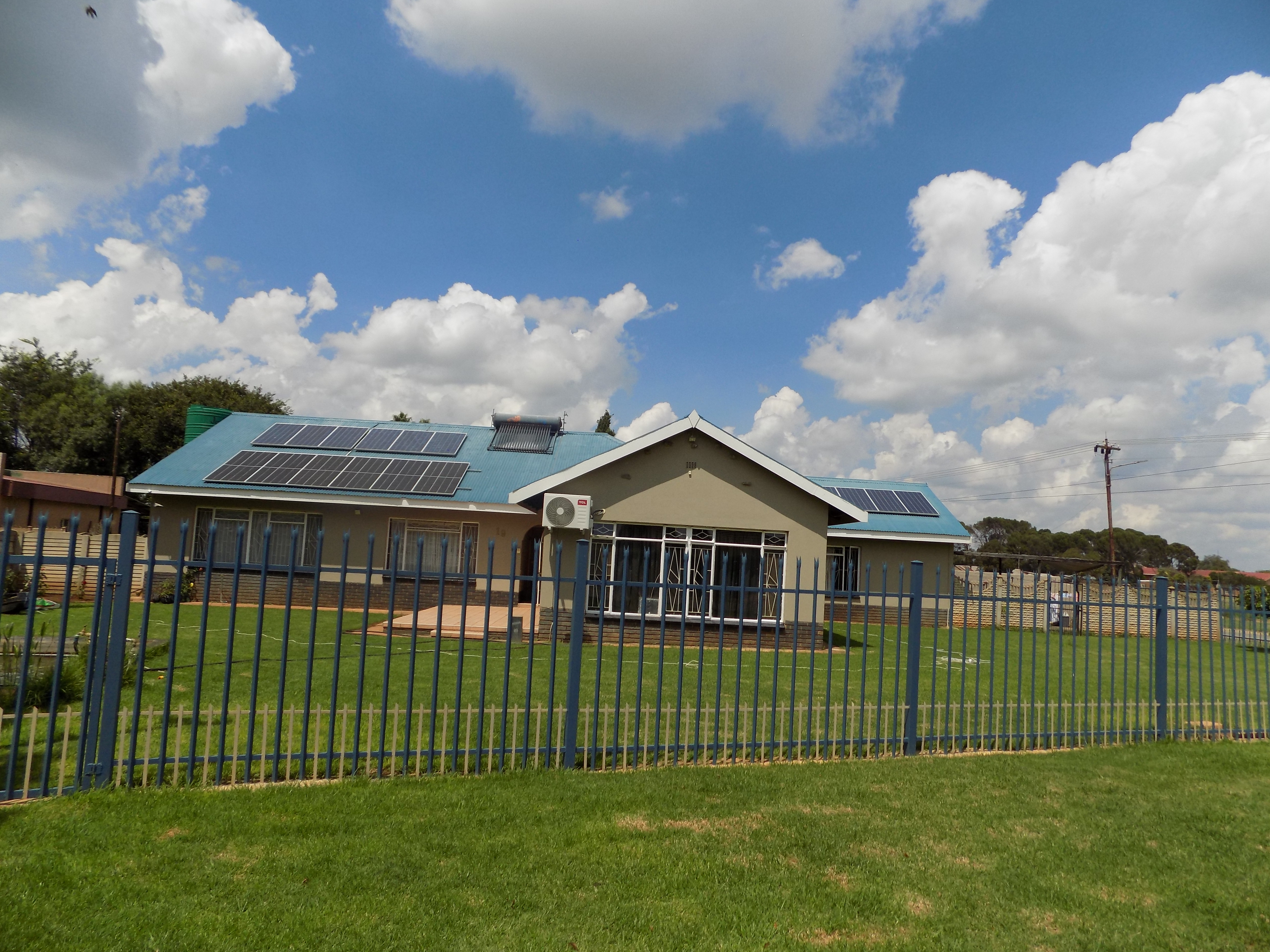 For peace of mind and convenience this property offers a solar system, with 2 x 5kw luxpower inverters, 4 x 5kw pylonteck batteries, 11 x 330 w panels, 6 x 550w panels and a 200 liter solar ray geyser., Borehole, Water filter system and a jojo tank . One tank for the house and one tank for the garden irrigation.