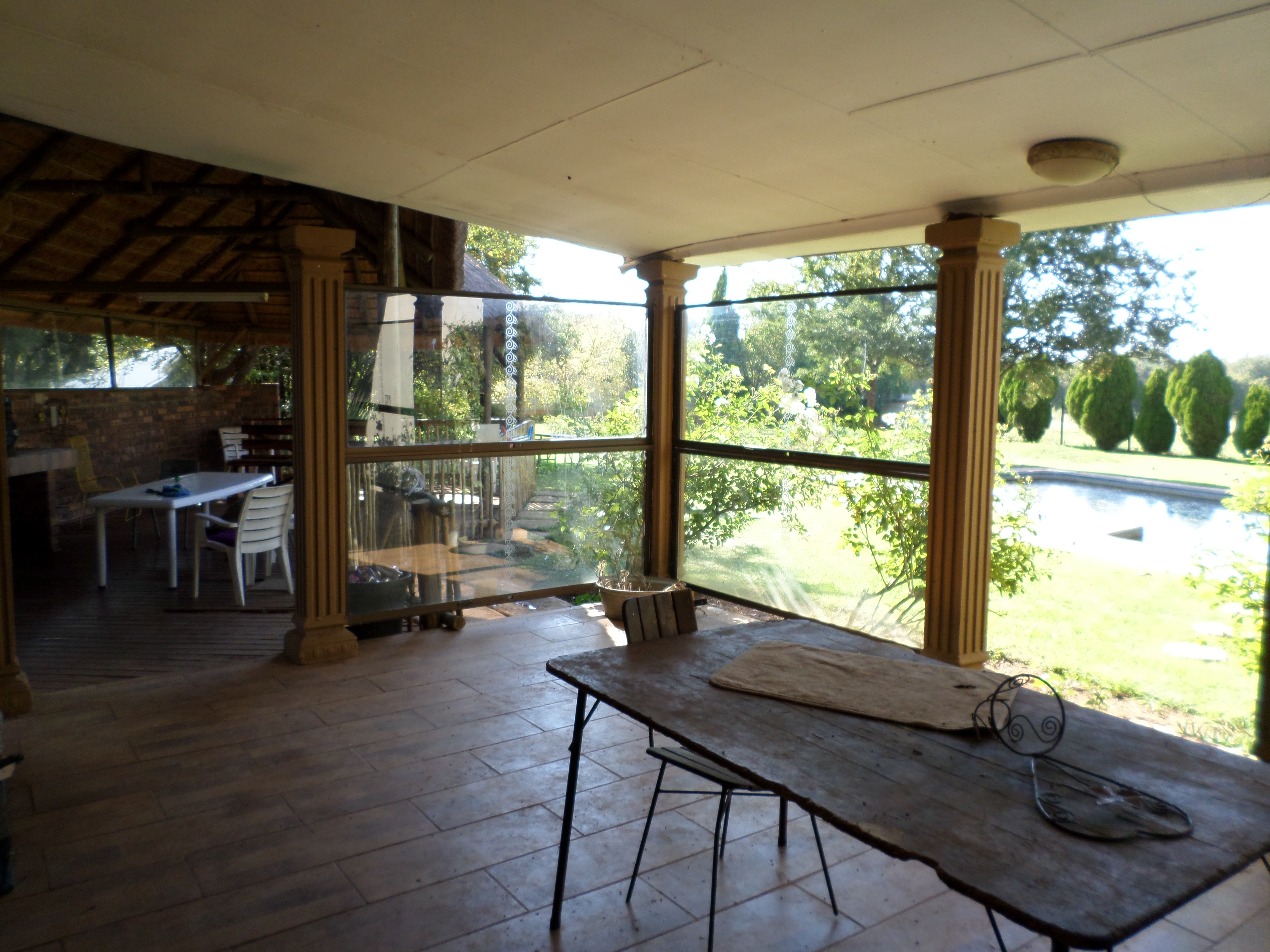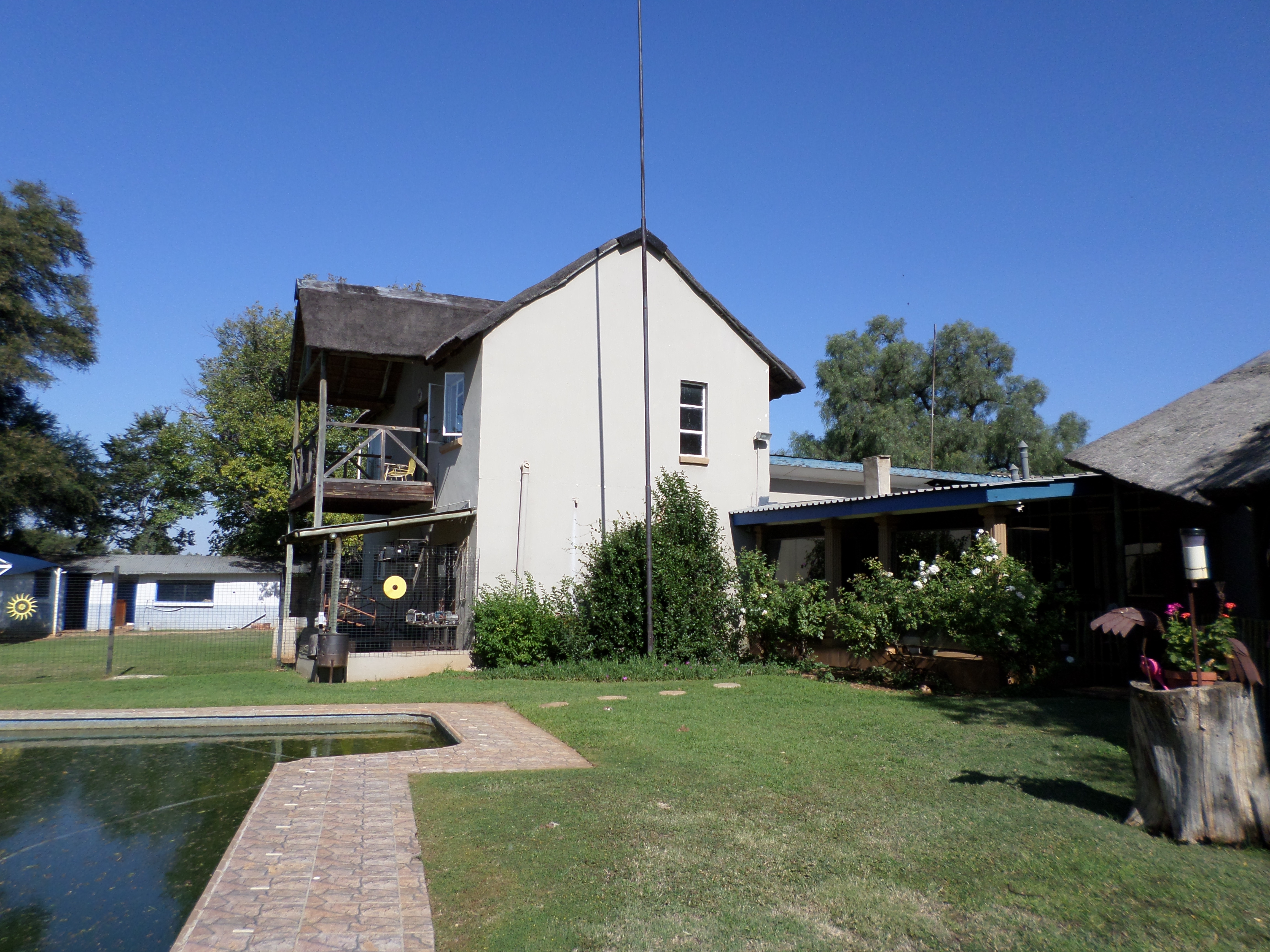 "Entertainer's Dream Home. One-of-a-kind property new to the market. This is one of those homes that just keeps on giving. From the entrance hall straight through to the braai area, lush green garden with a sparkling pool, and a large piece of land for small-scale farming, all situated in town. The main house offers 4 bedrooms, 3 bathrooms, a large living area, and a spacious kitchen. The house has the option to divide one part into a flatlet with its own kitchen and entrance that can be rented out for extra income. Outside buildings include a large walk-in fridge, another building with 4 rooms, an office block with a reception, pantry, and 4 rooms with its bathroom separate from the main house. With all this to offer, this home is one of those rare properties that you don't come across very often. Come have a look. You will absolutely love it!"
