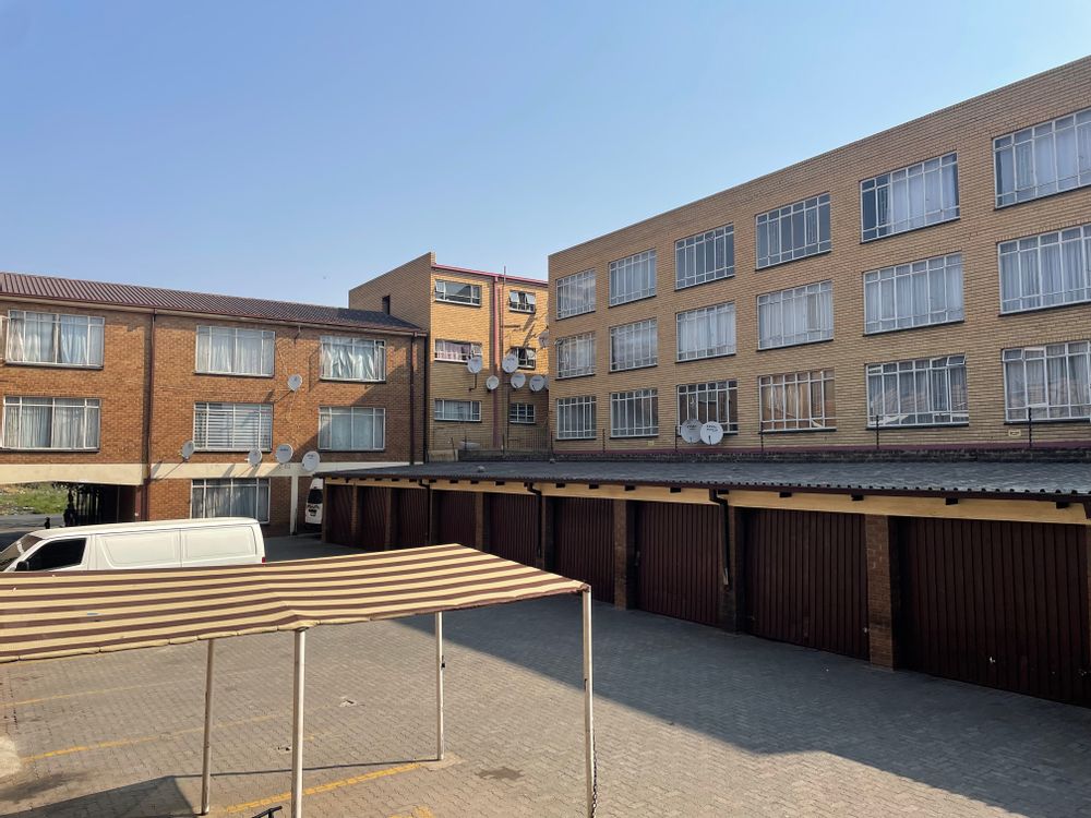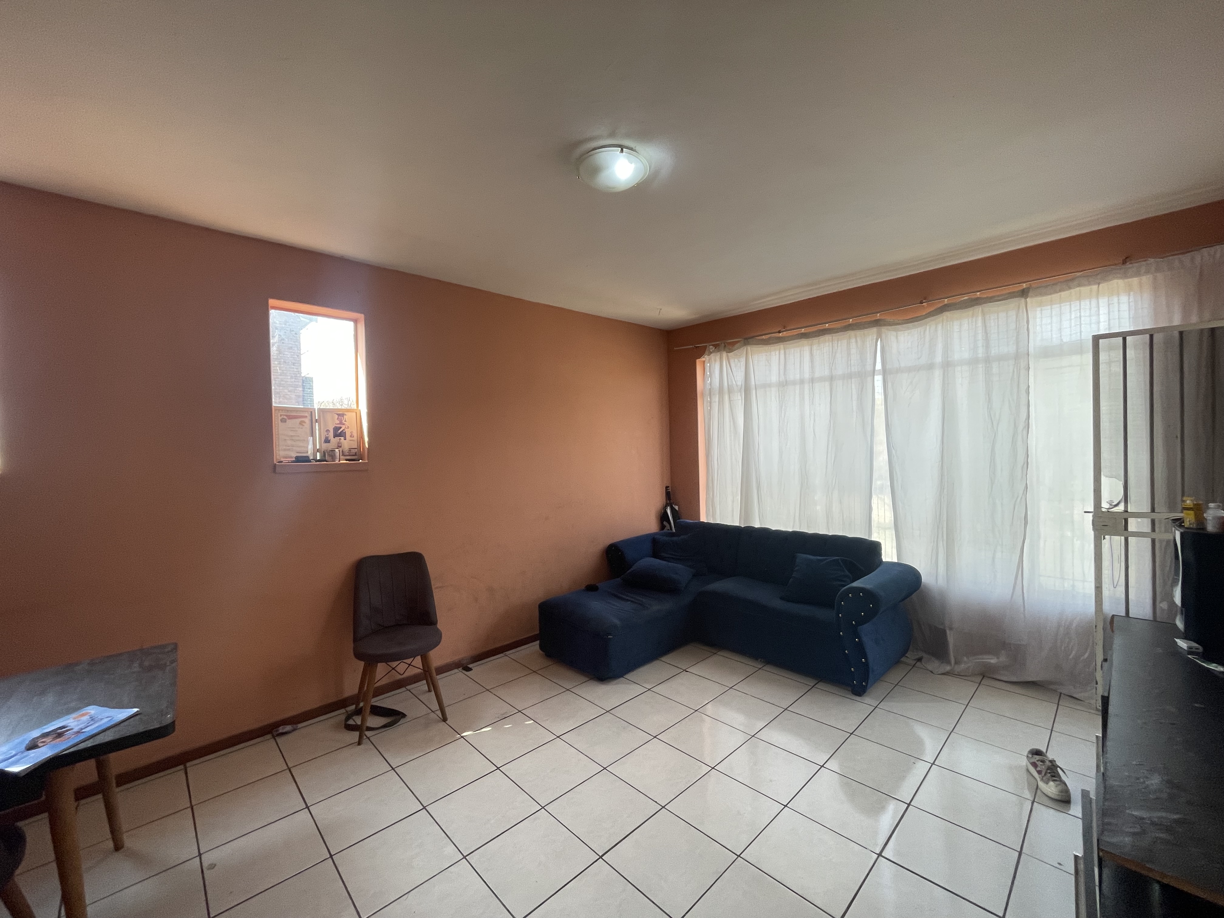 A 2-bedroom flat in Vereeniging Central with a balcony, open-plan living area, and bathroom. The property is in need of some TLC but offers great potential for those looking to make it their own.