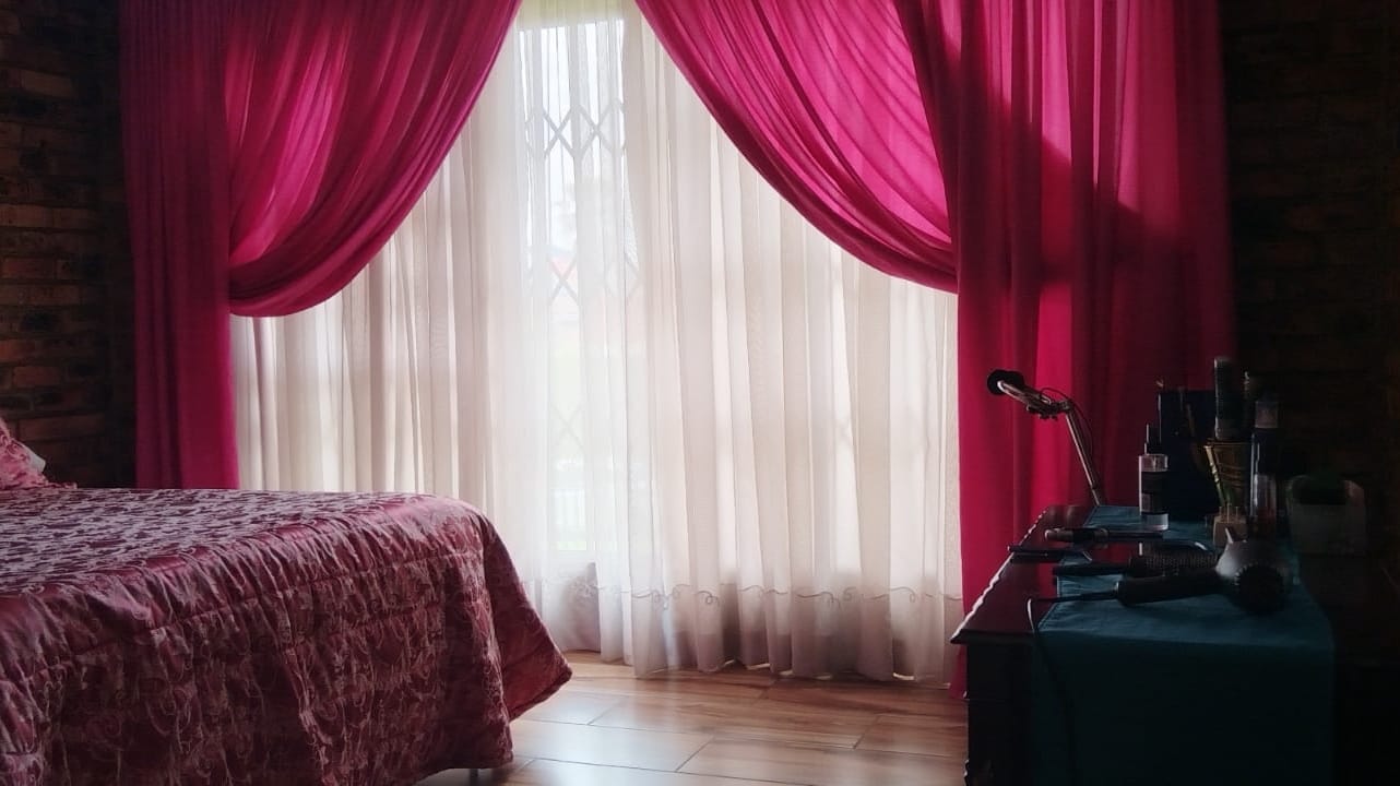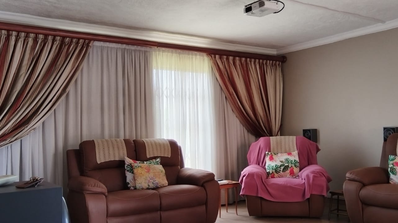 The home boasts four spacious bedrooms with built-in cupboards, along with 3.5 well-appointed bathrooms to accommodate the entire family. A dedicated study or home office provides the perfect environment for remote work or quiet productivity. For those who love entertaining, the enclosed patio with an indoor built-in braai creates an ideal space for gatherings in any season.