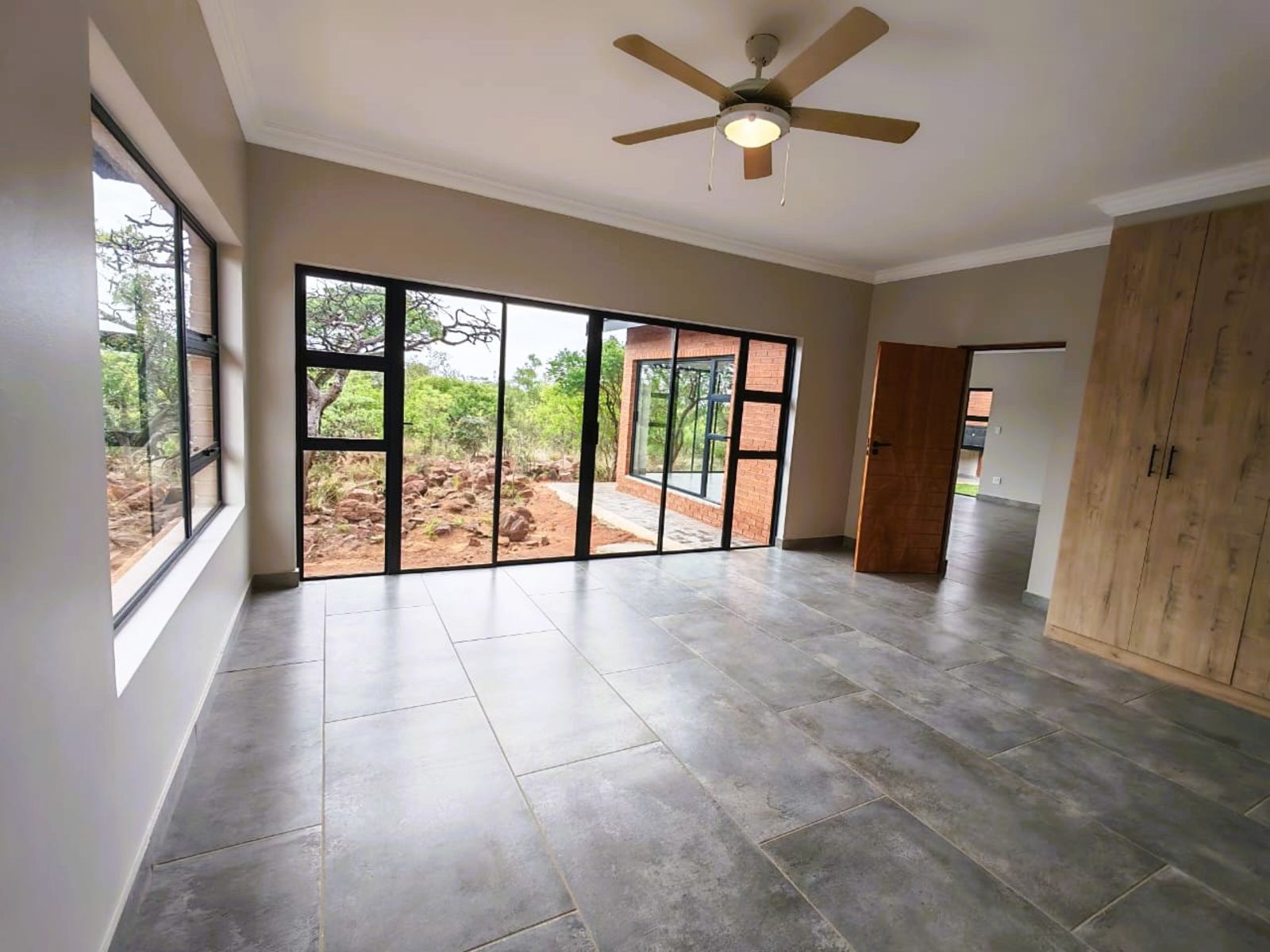 Step into a home filled with light, boasting open-plan living areas that flow seamlessly into the beautiful bushveld surroundings. The kitchen is a chef's delight, featuring sleek, contemporary finishes and ample cupboard space. Large windows throughout ensure you always feel connected to the peaceful, free-roaming wildlife outside.Key Features: 3 Spacious Bedrooms, 2 Modern Bathrooms, Light-Filled Open Plan Design, Double Automated Garage, Modern Finishes.Unique Community: Part of an exclusive, small cluster of only six stands, offering a heightened sense of security and community within the vast estate.