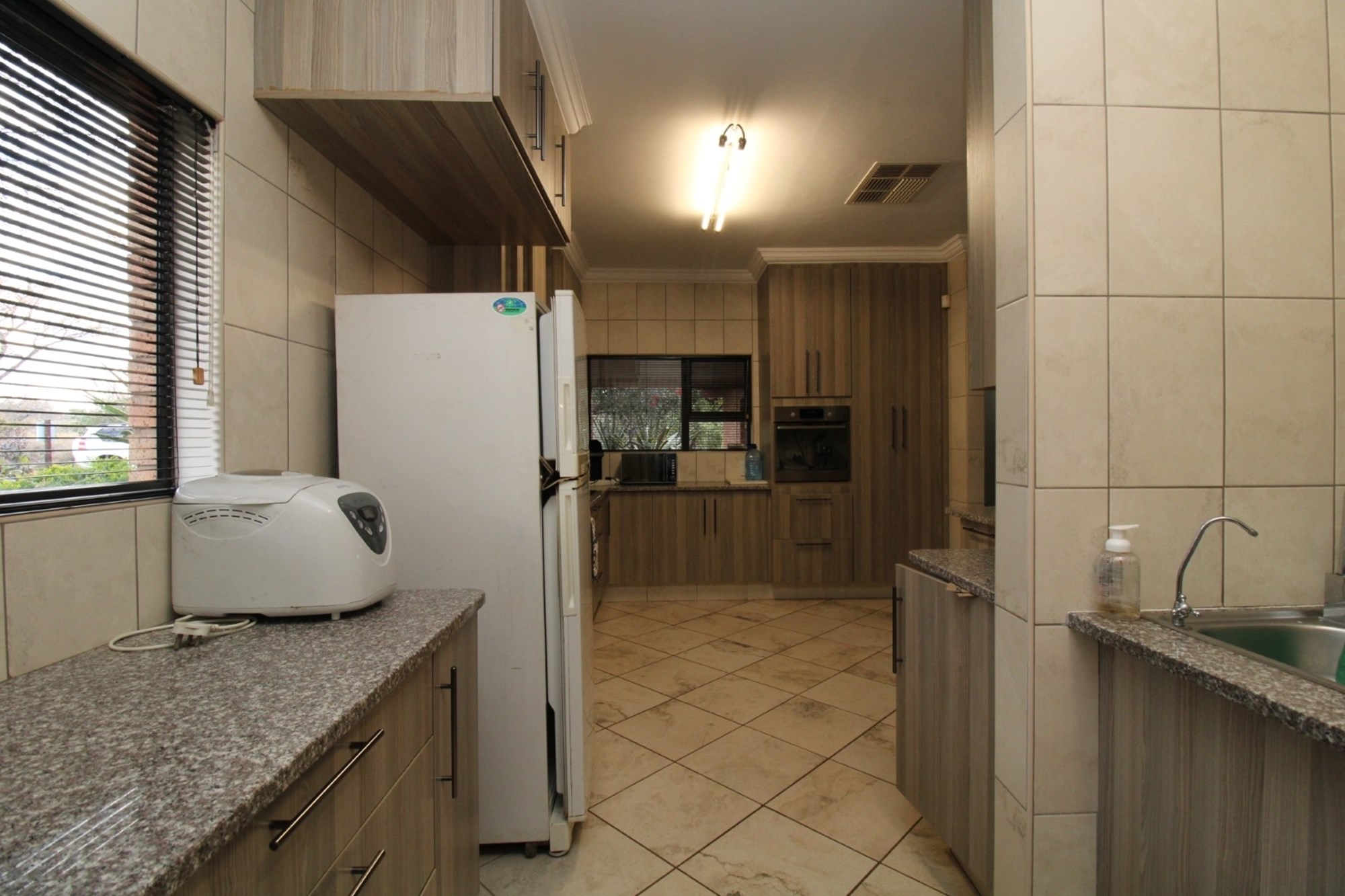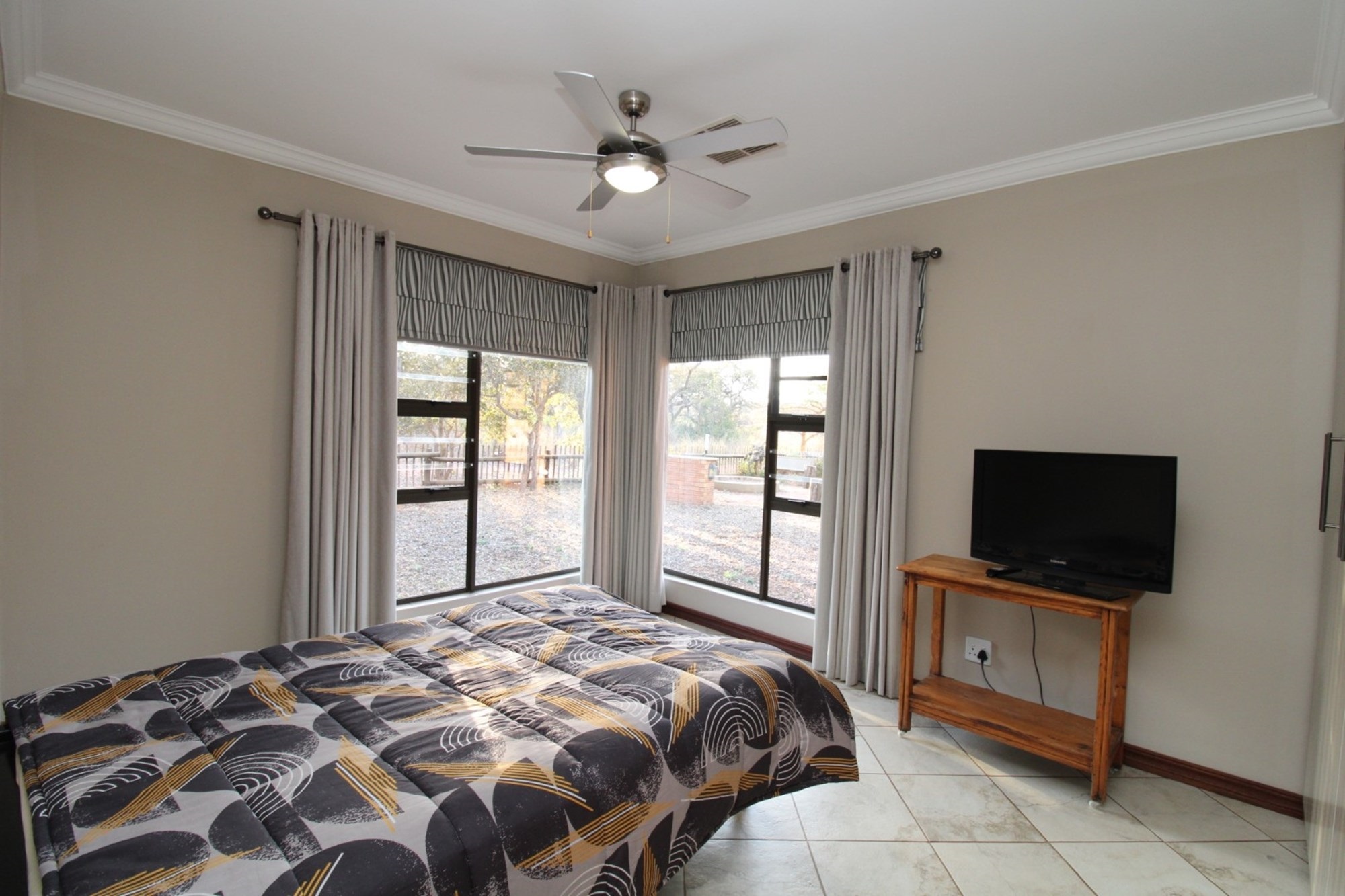 The heart of the home is the open-plan lounge, dining, and kitchen area, filled with natural light and bushveld views.