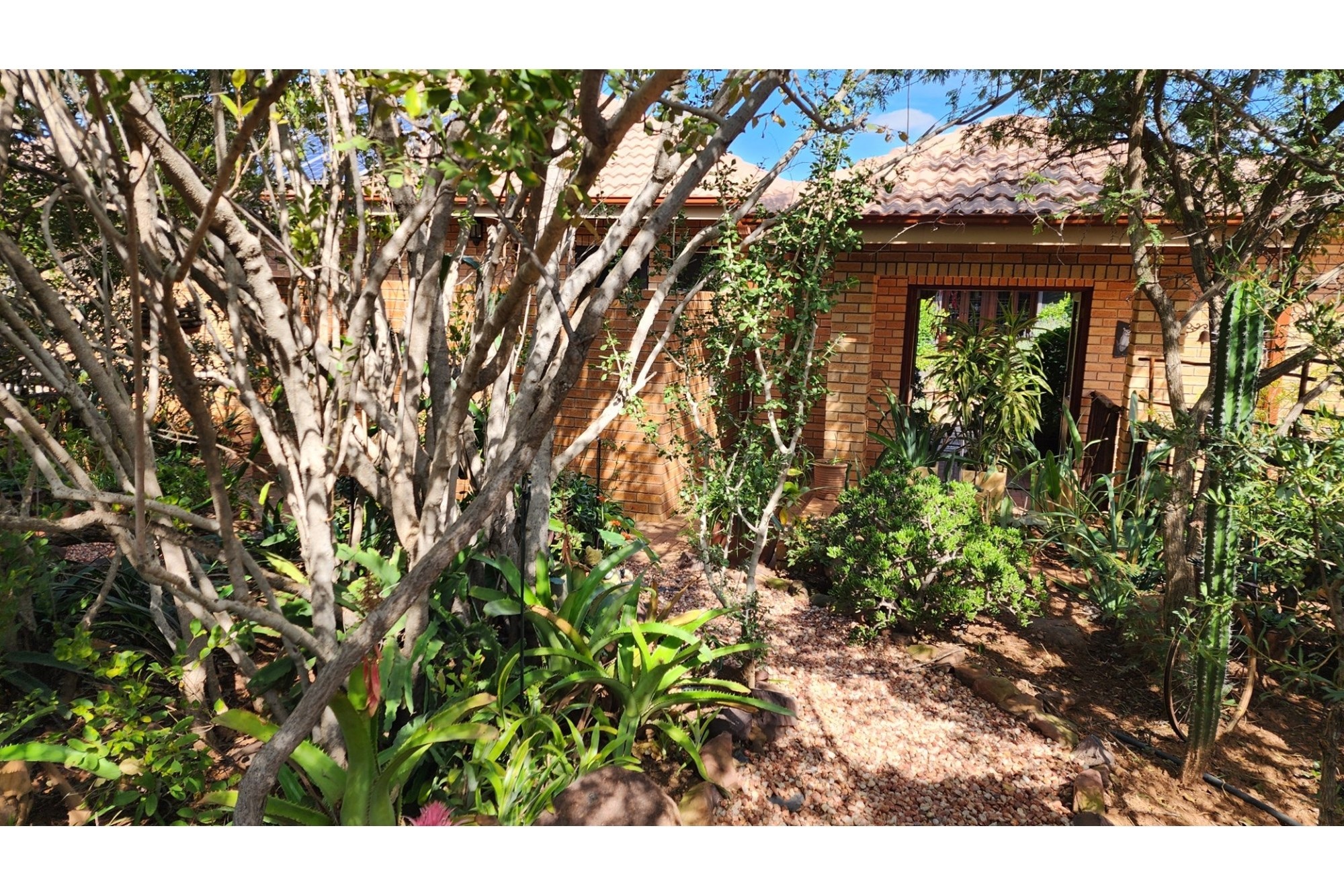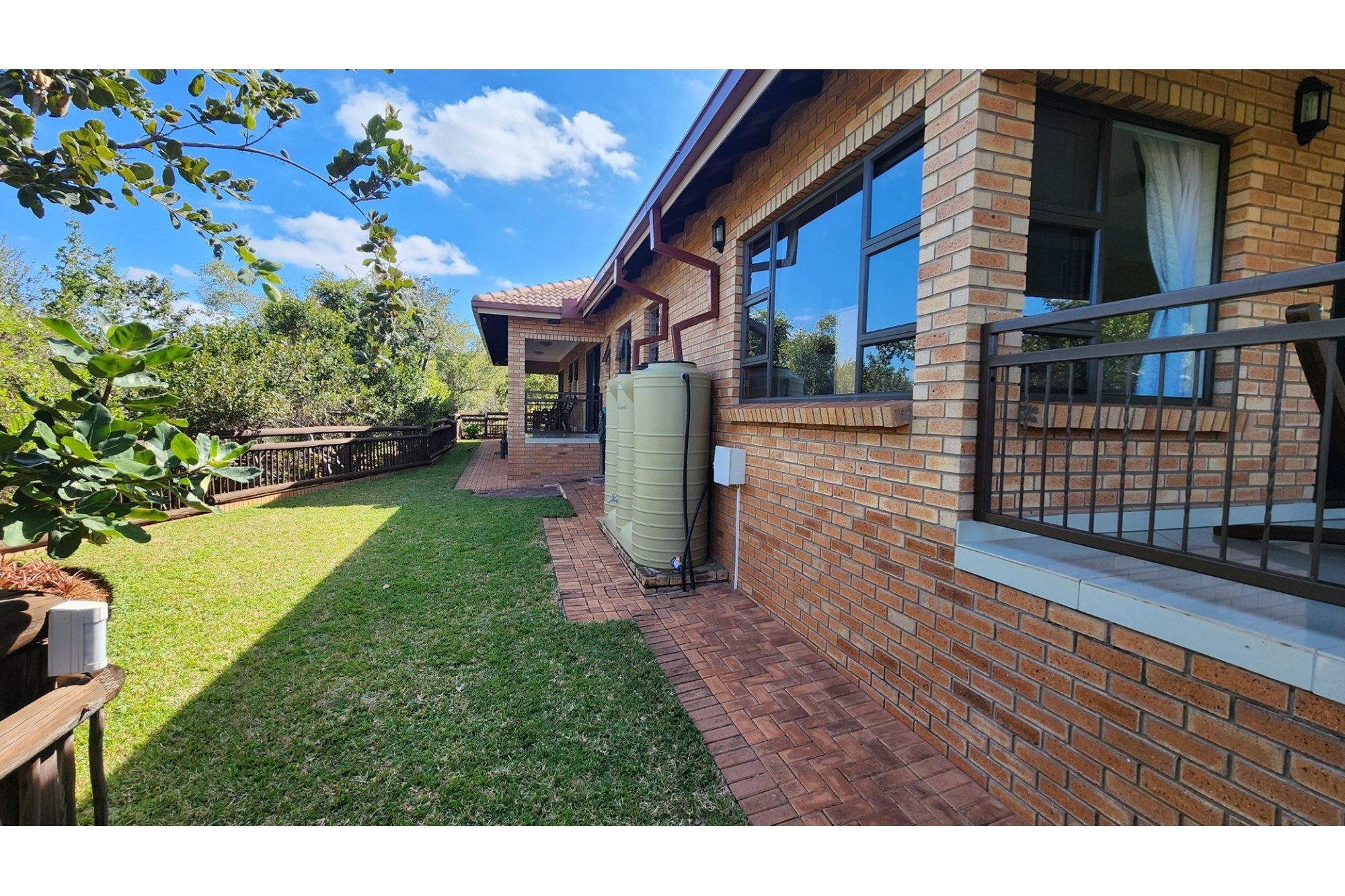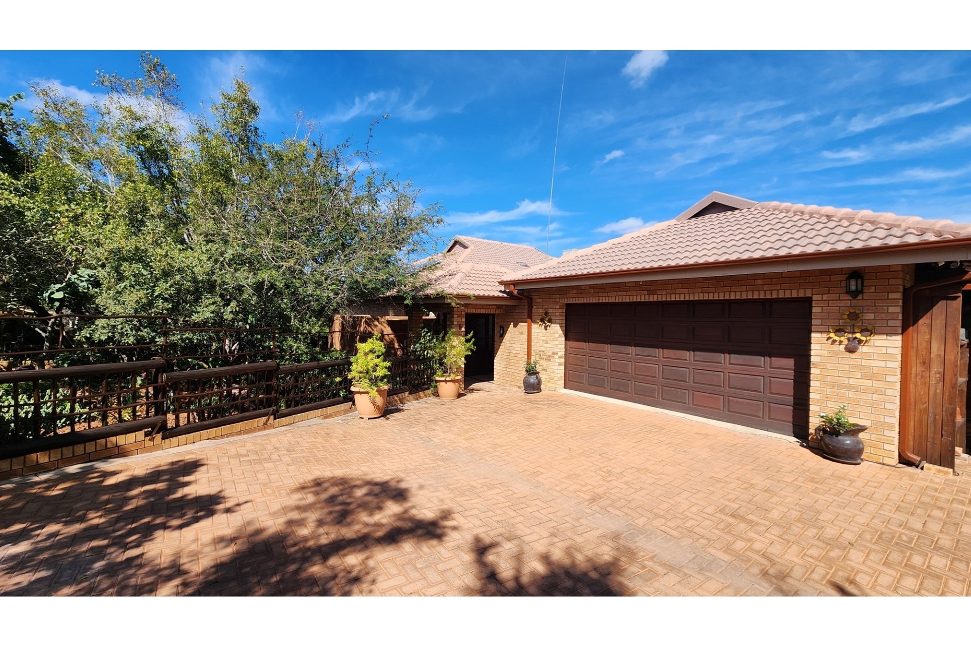 The property`s commitment to sustainability is clear. A well-kept garden benefits from a dual-station irrigation system, while rainwater is efficiently harvested using one slimline 2,500-litre tank alongside four 5,000-litre tanks. Energy needs are met by 12 solar panels, supported by a 10kW battery backup and inverter system. The solar-heated geyser adds further eco-friendly comfort. This pet-friendly sanctuary is a perfect blend of modern amenities and environmental sensibility.