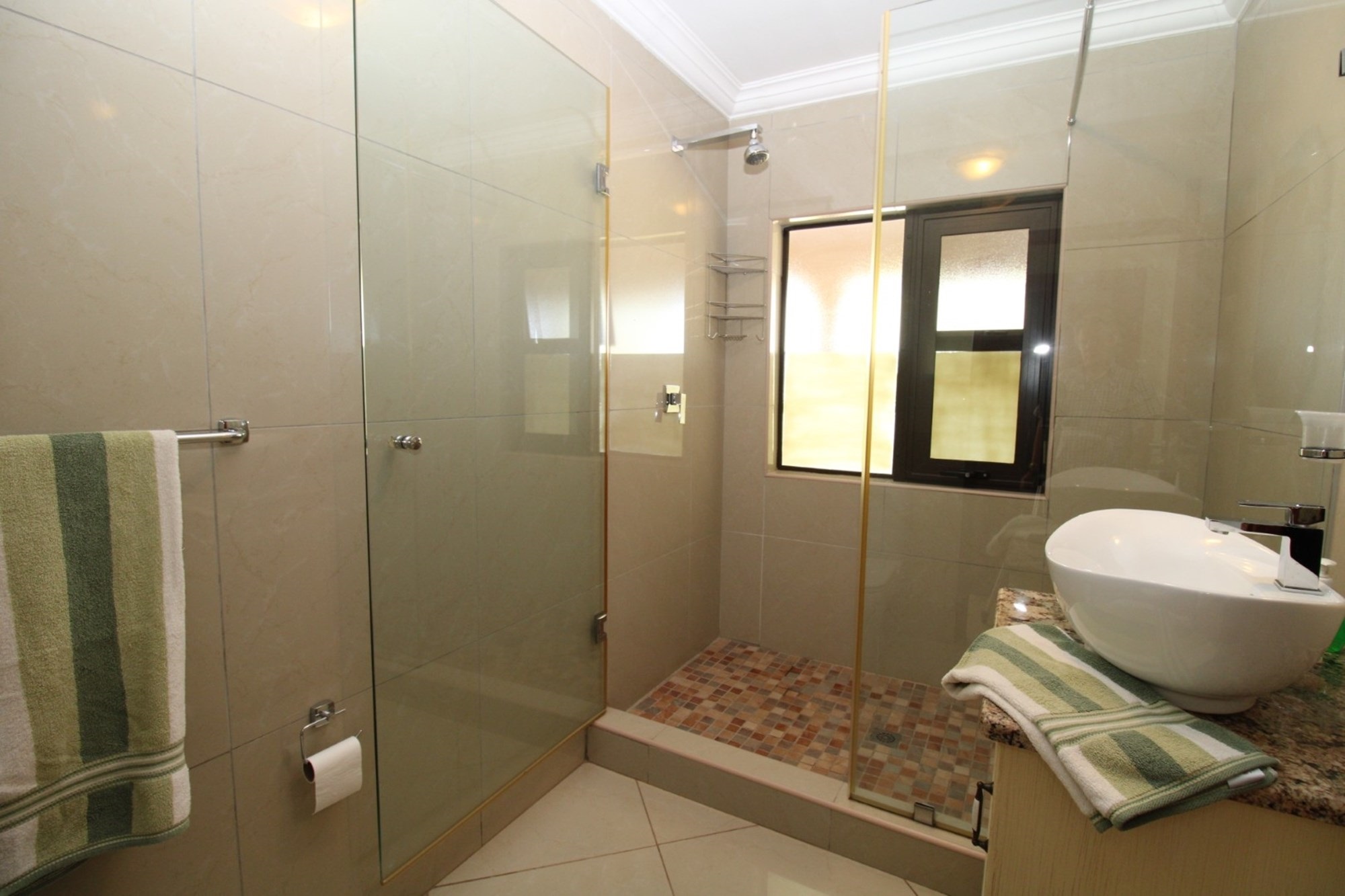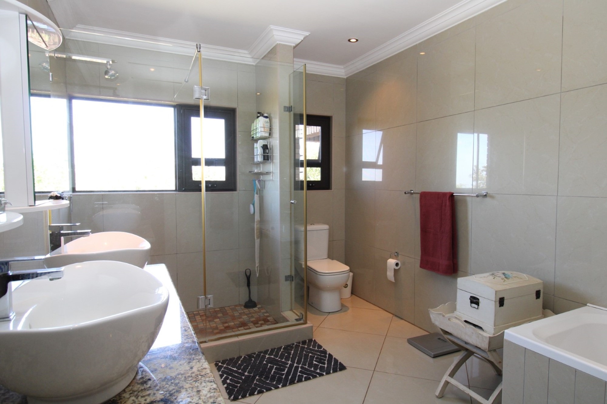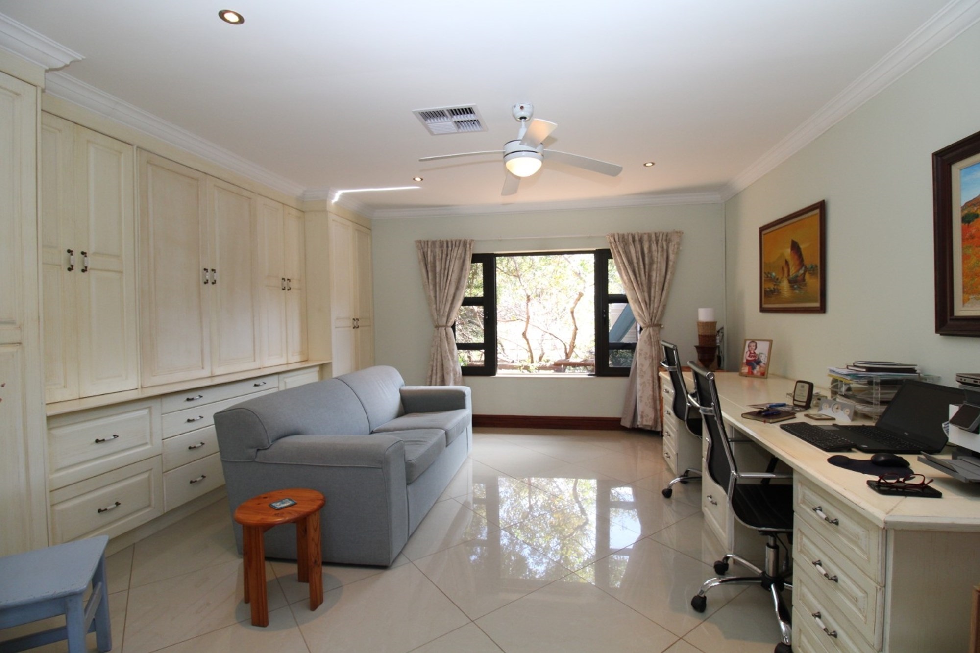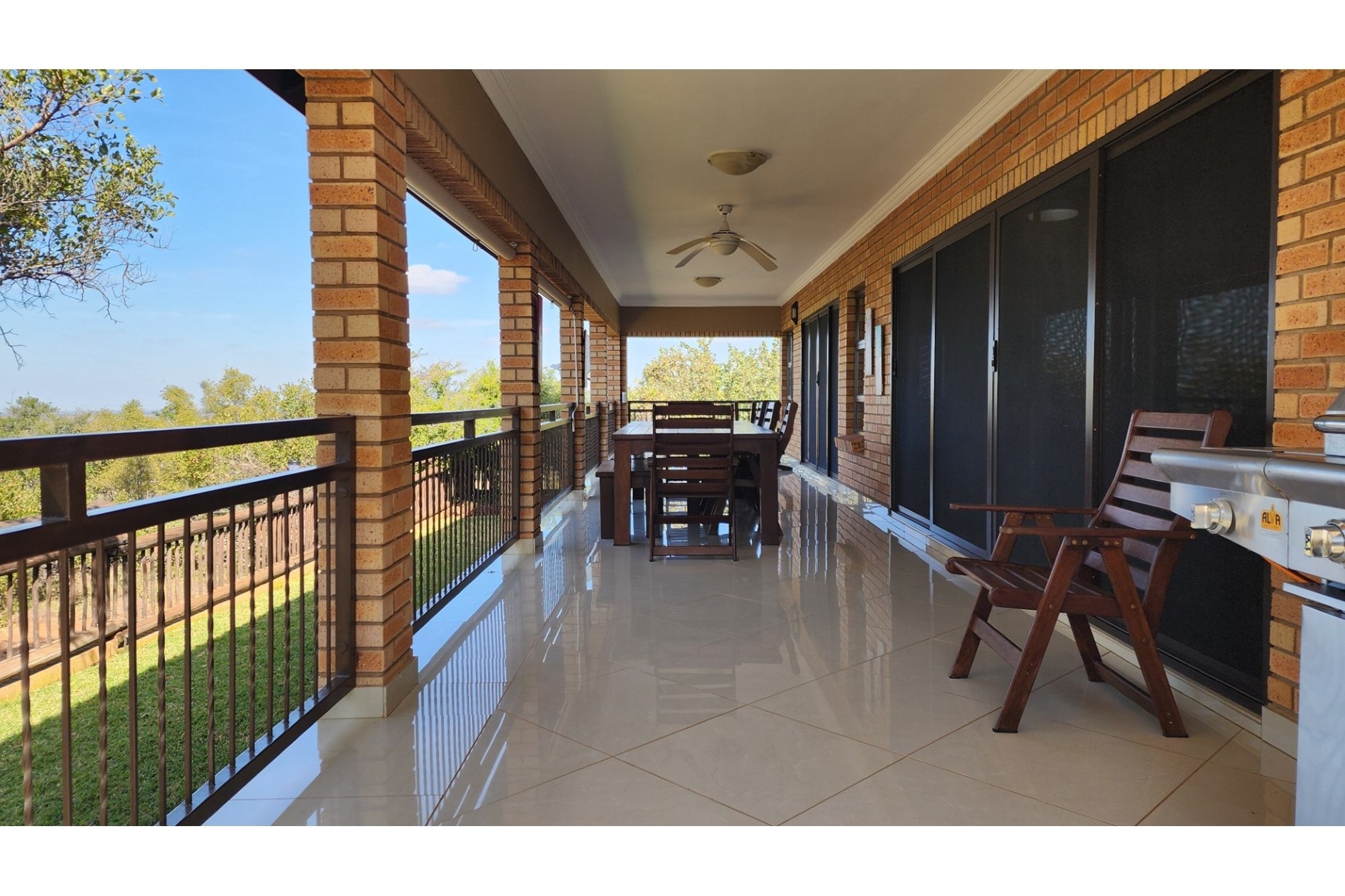 Every detail in this residence has been designed with both comfort and security in mind. Modern features include an IDS Alarm system, stainless steel Trellidor Clear Guard screens—which use a sleek woven stainless-steel mesh within an elegant aluminium frame—to ensure high-level, see-through security for every opening.