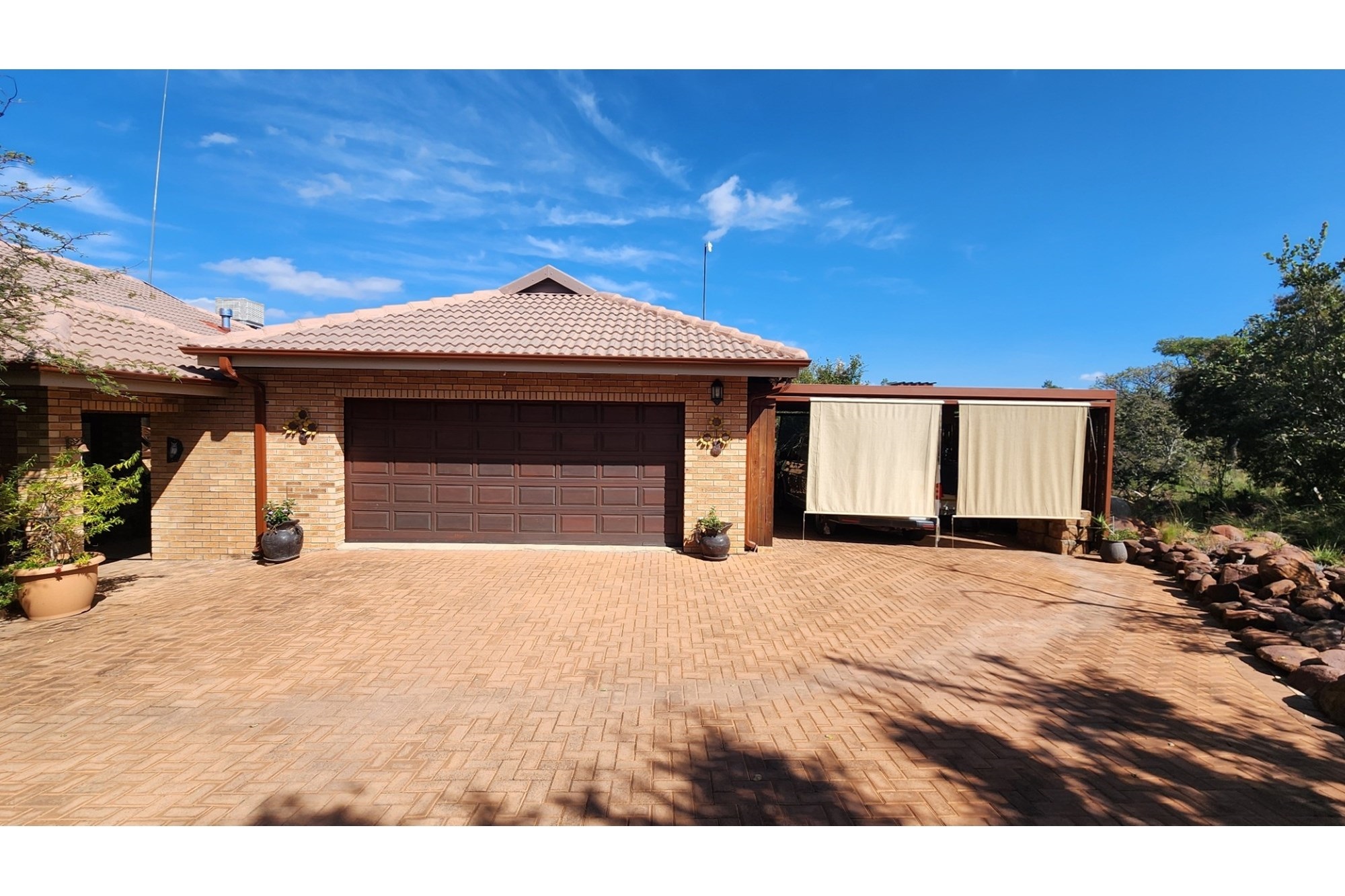 Additional conveniences include a double garage with a motorised door, complemented by a double carport.