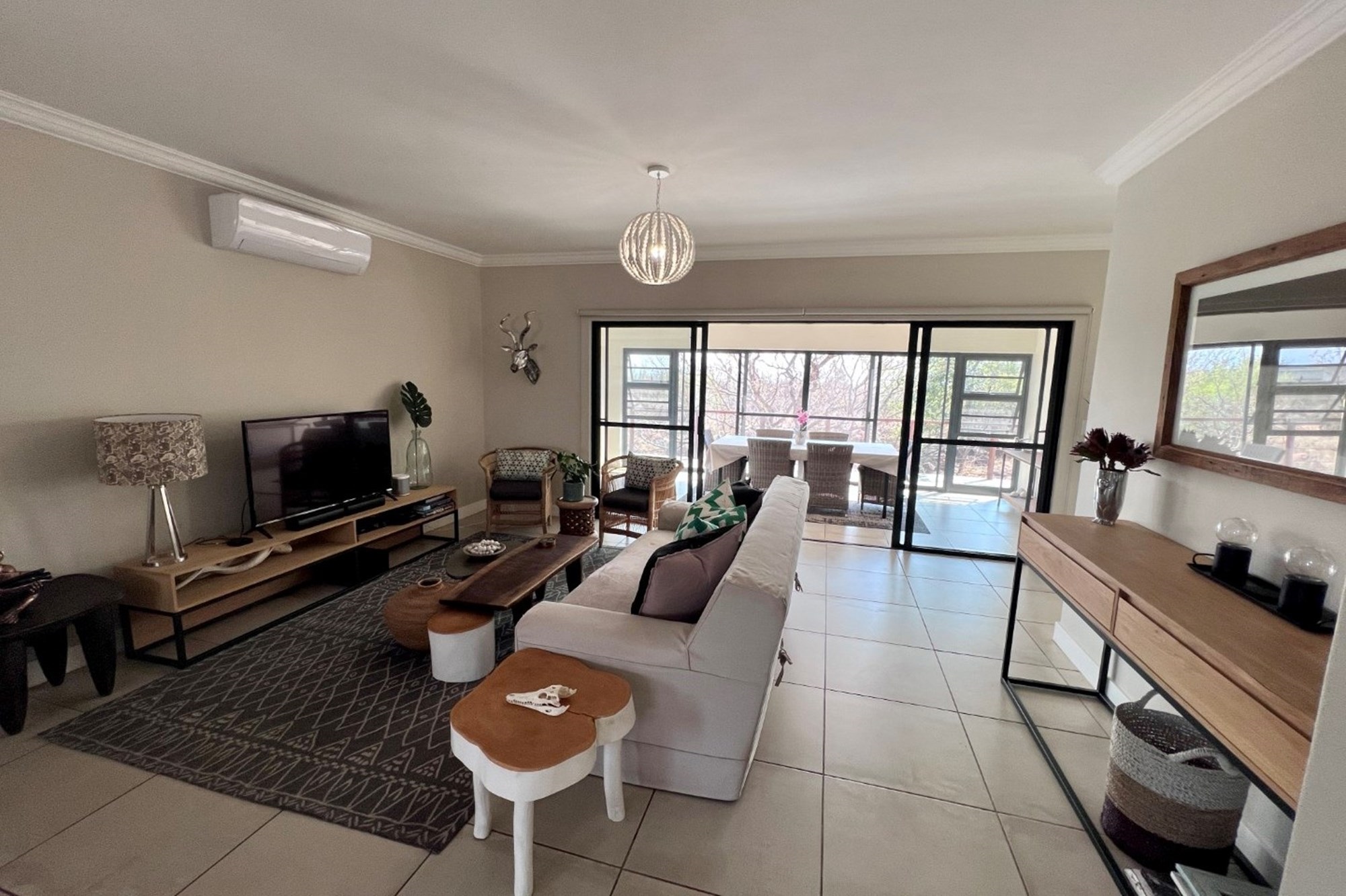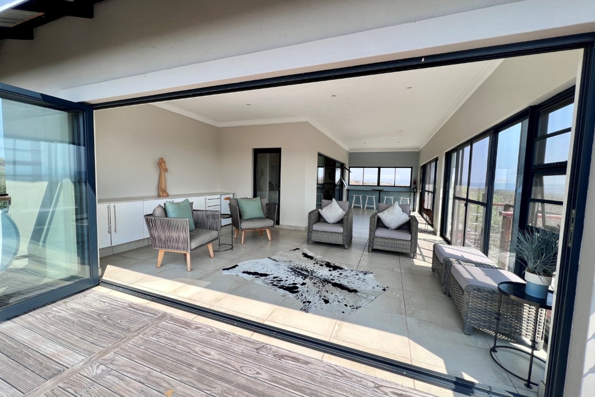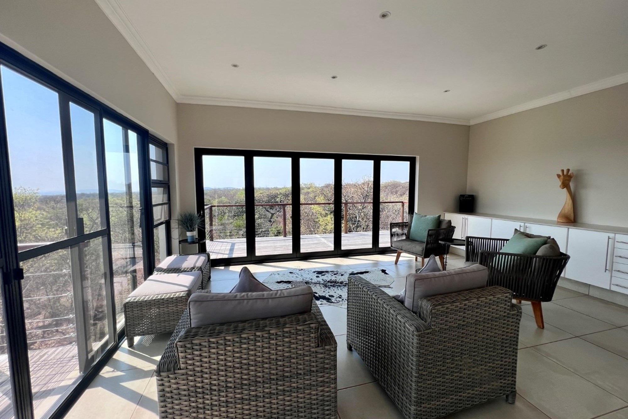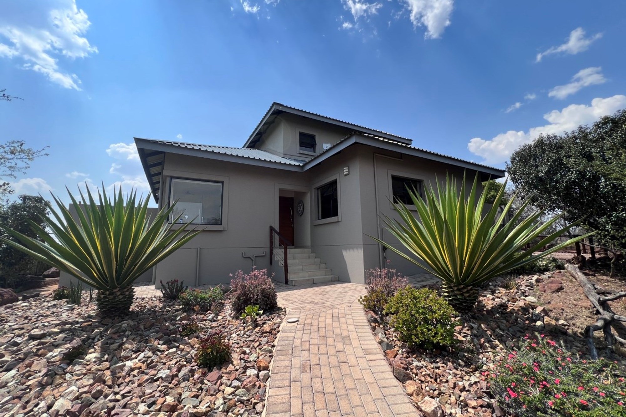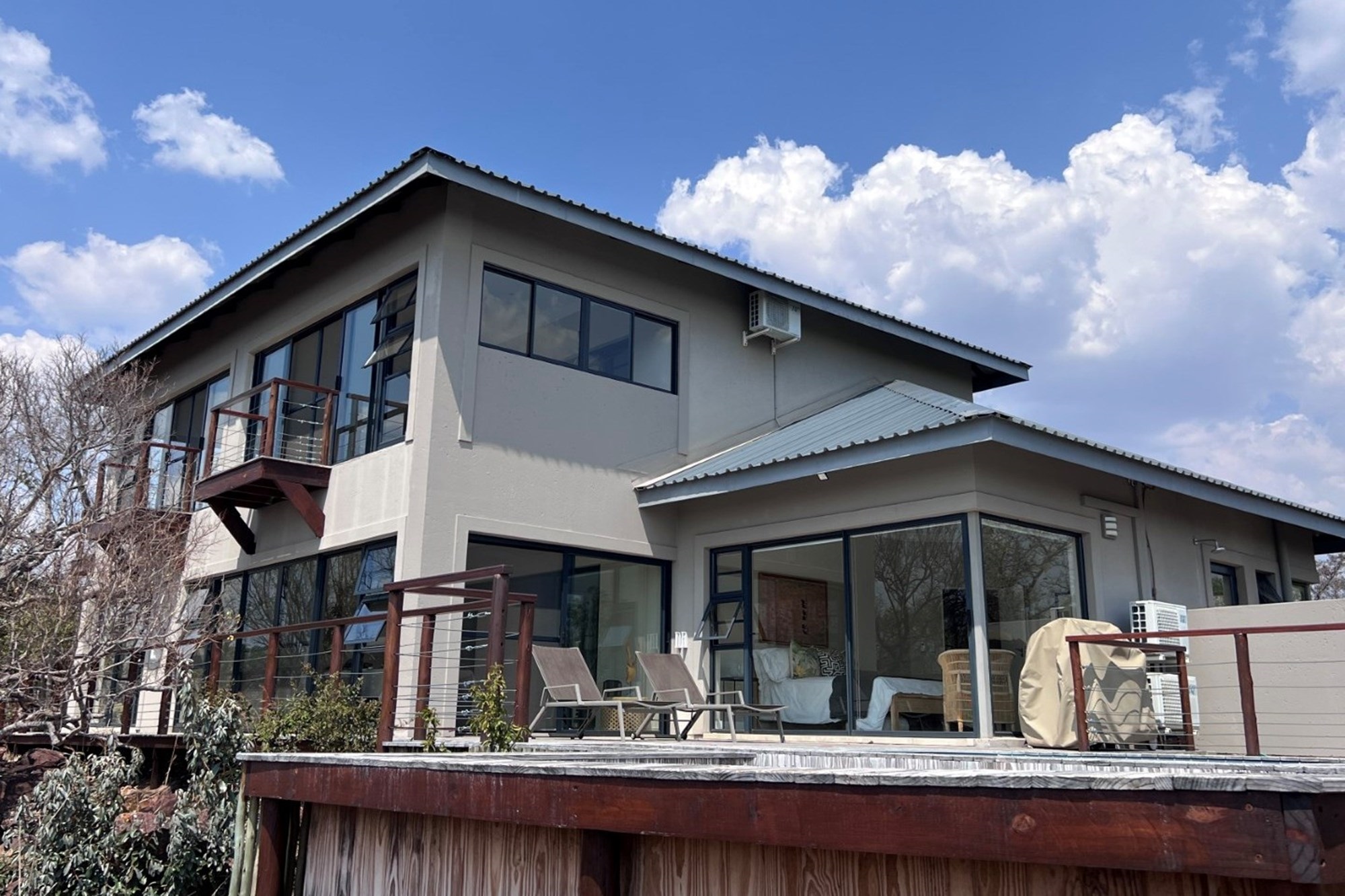 Elevated to capture uninterrupted views of Kranskop and the Waterberg mountains, the home invites a slower, more intentional way of living—where mornings begin with birdsong and coffee on the deck, and evenings end around a glowing firepit beneath a vast African sky.