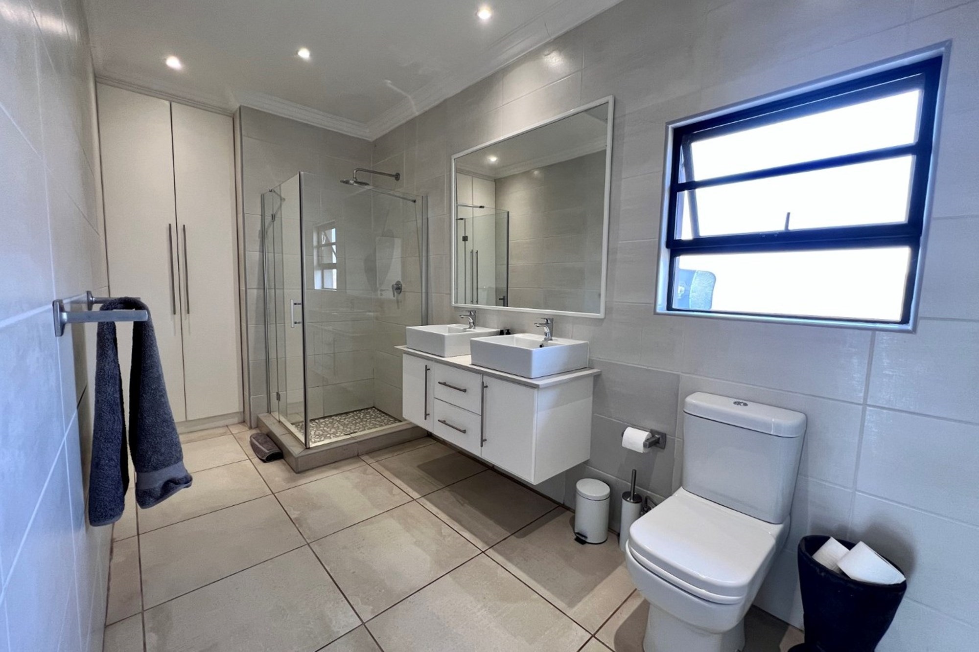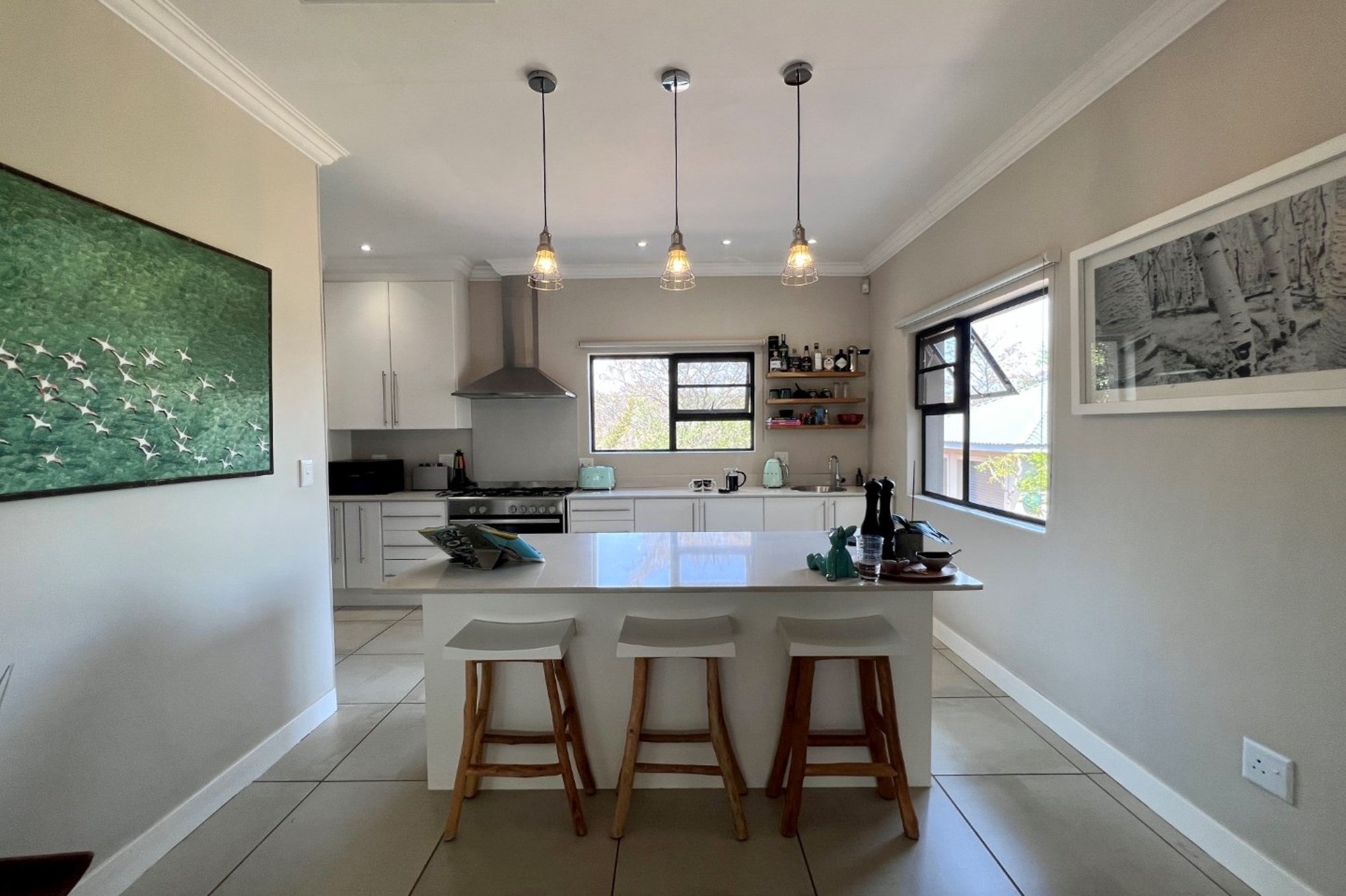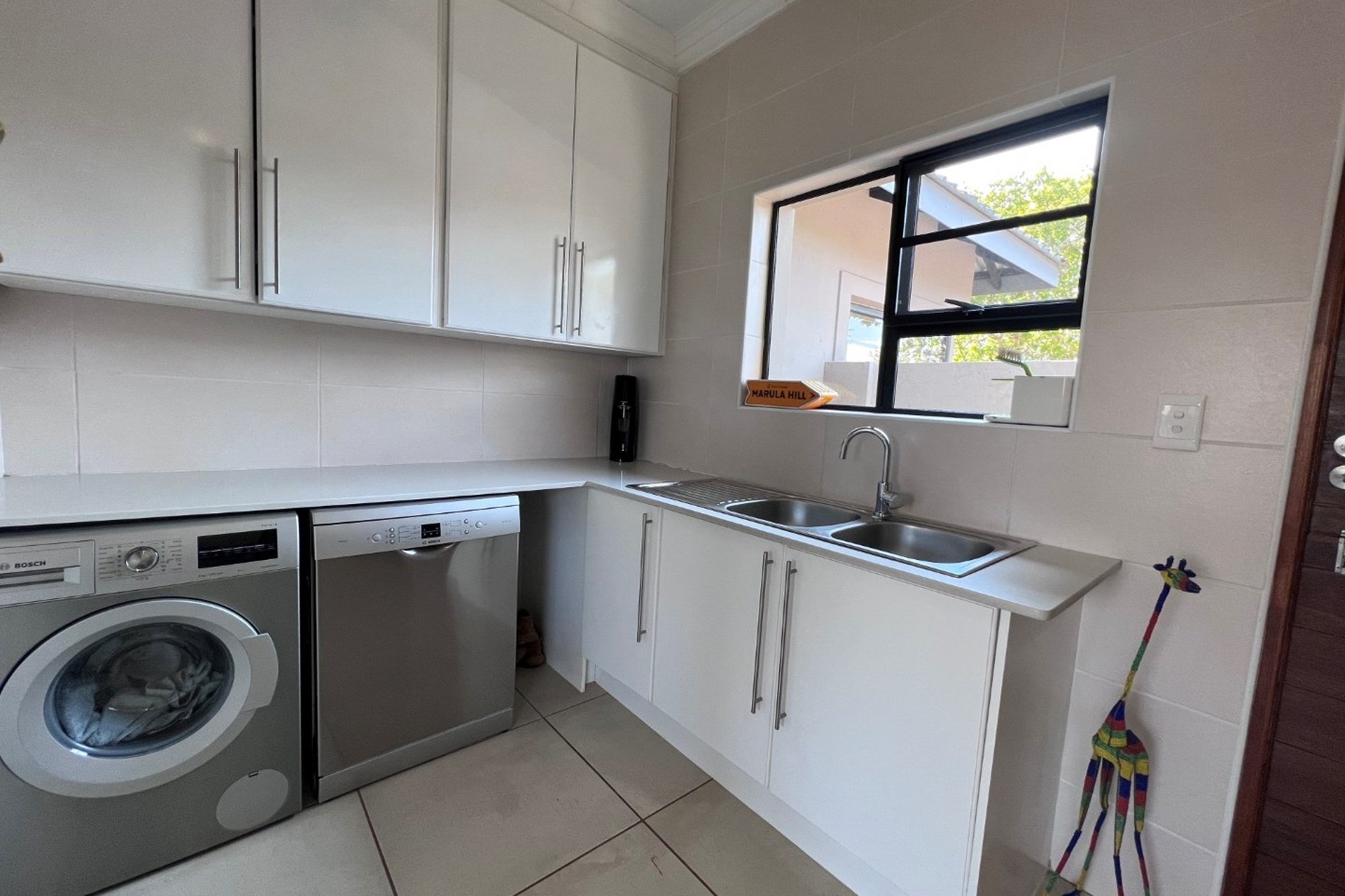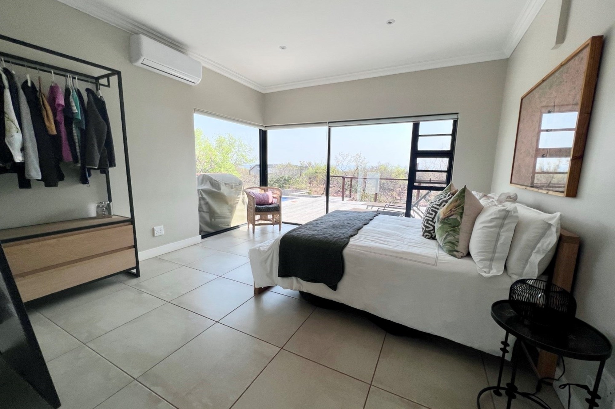 Solar panels and inverter, ensuring uninterrupted comfort during load shedding. Experience modern sustainability with a Must inverter, 5kW Revov backup battery, and 6 x 450W solar panels, ensuring a reliable and eco-conscious power solution. The home embodies sustainable living without compromising on luxury.