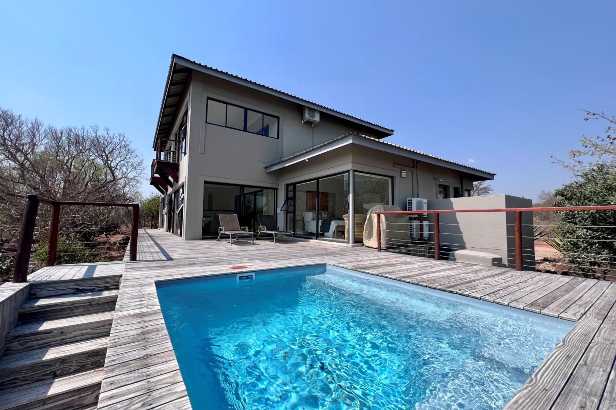 Set against the timeless beauty of the bushveld, this exceptional double-storey residence offers a rare balance of peace, privacy, and contemporary luxury.