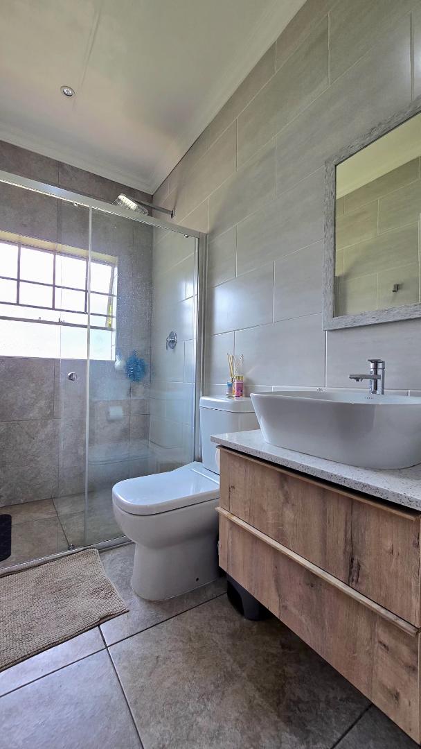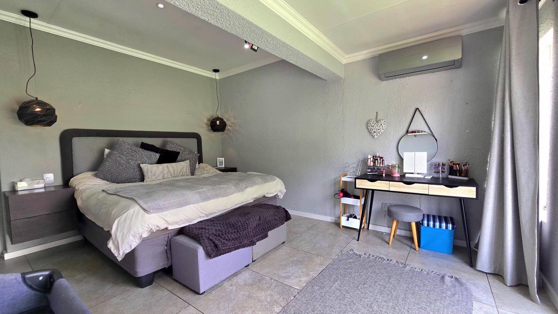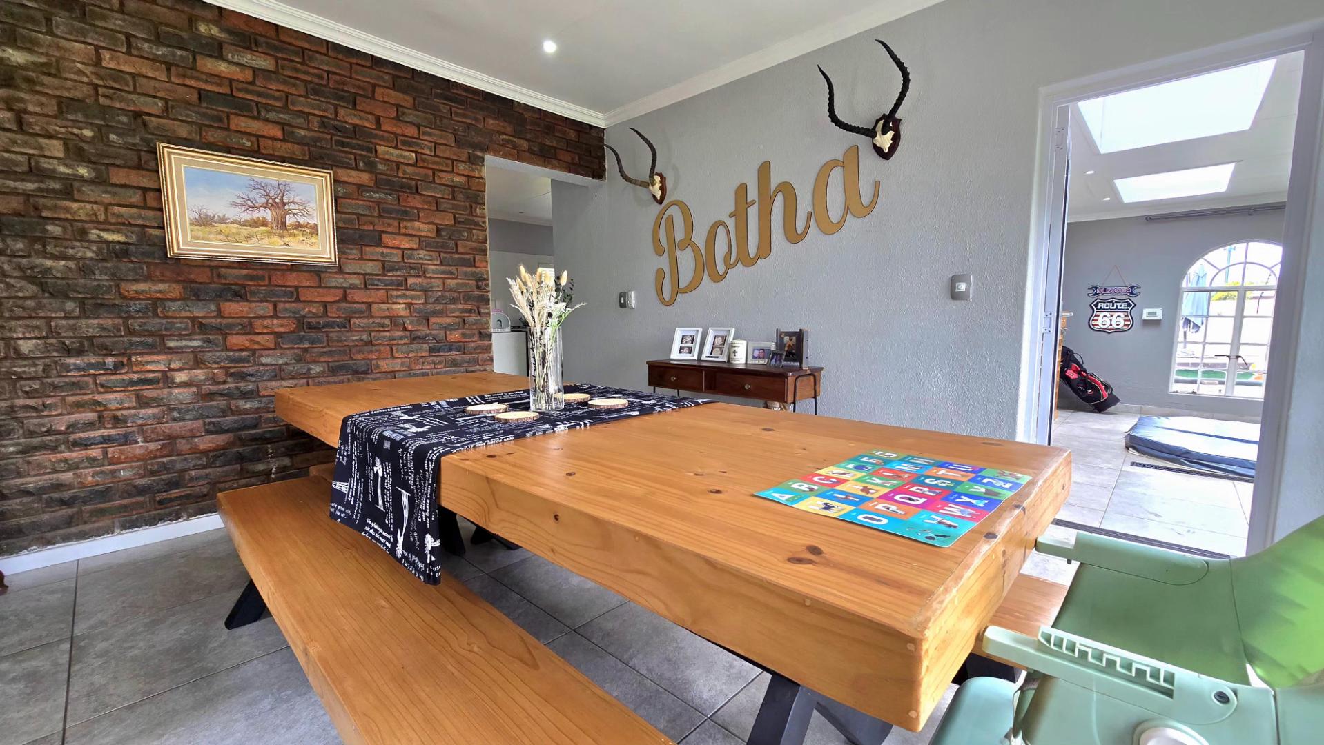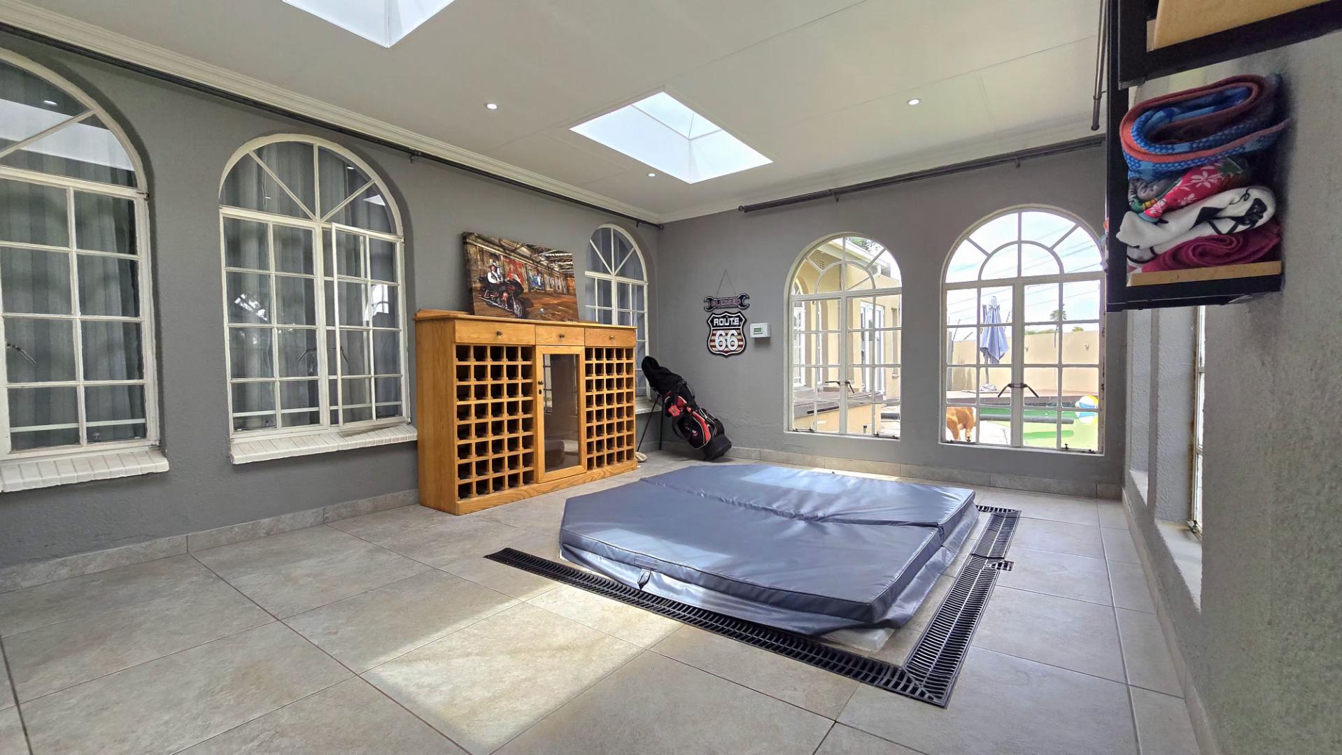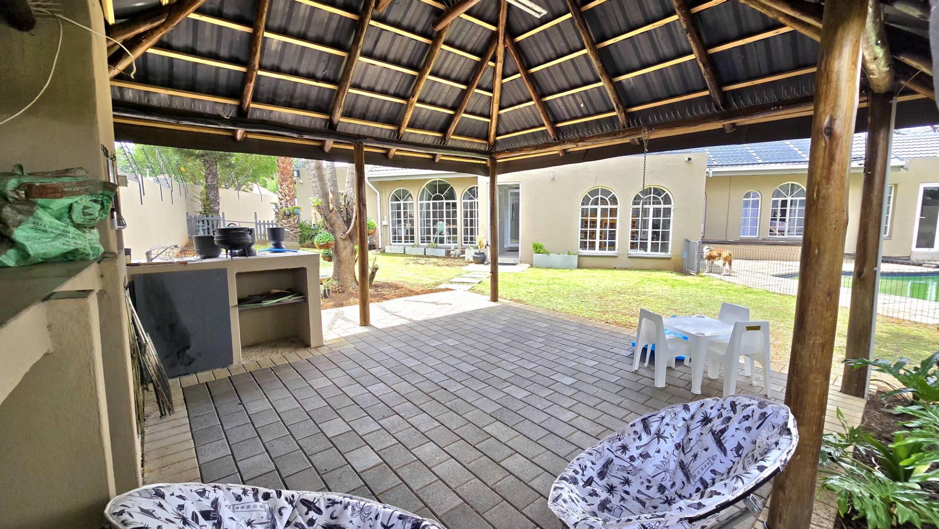 Step outside to a resort-style garden with a solar-heated swimming pool for year-round enjoyment. The thatched lapa is perfect for alfresco dining and memorable braais, while the jacuzzi adds a touch of indulgence after a long day.