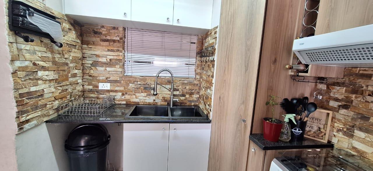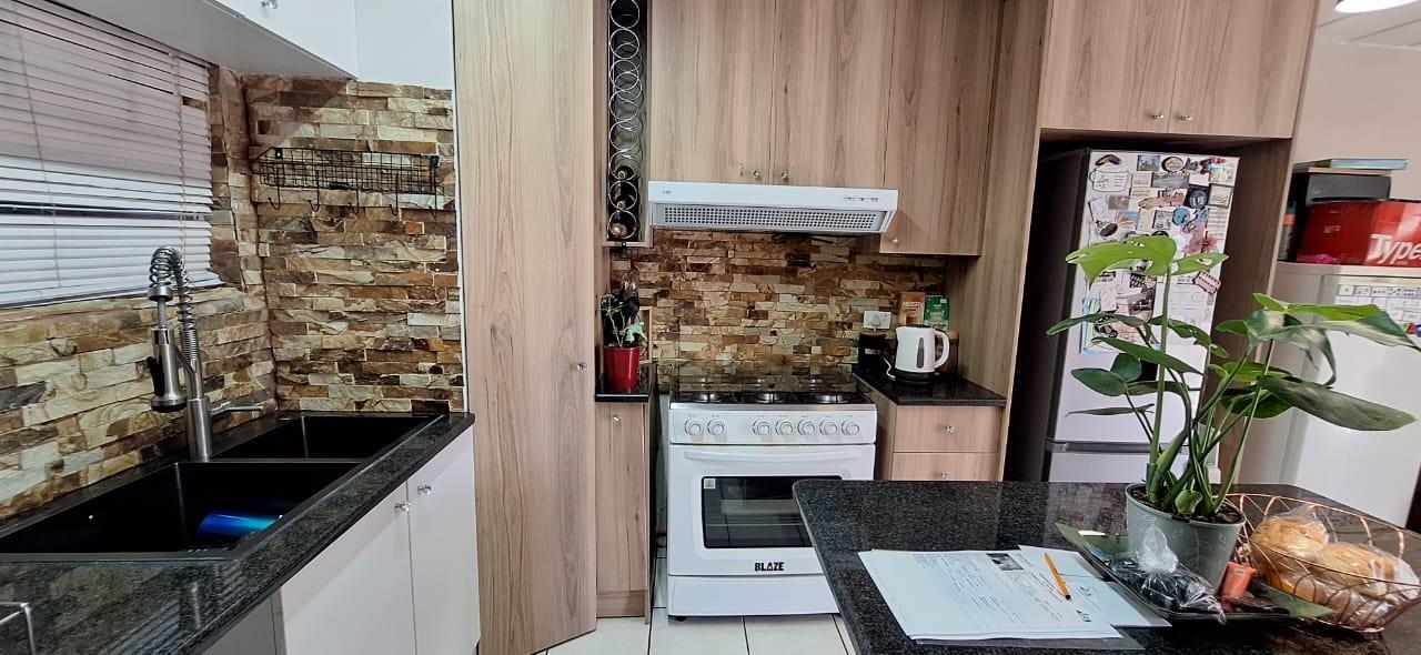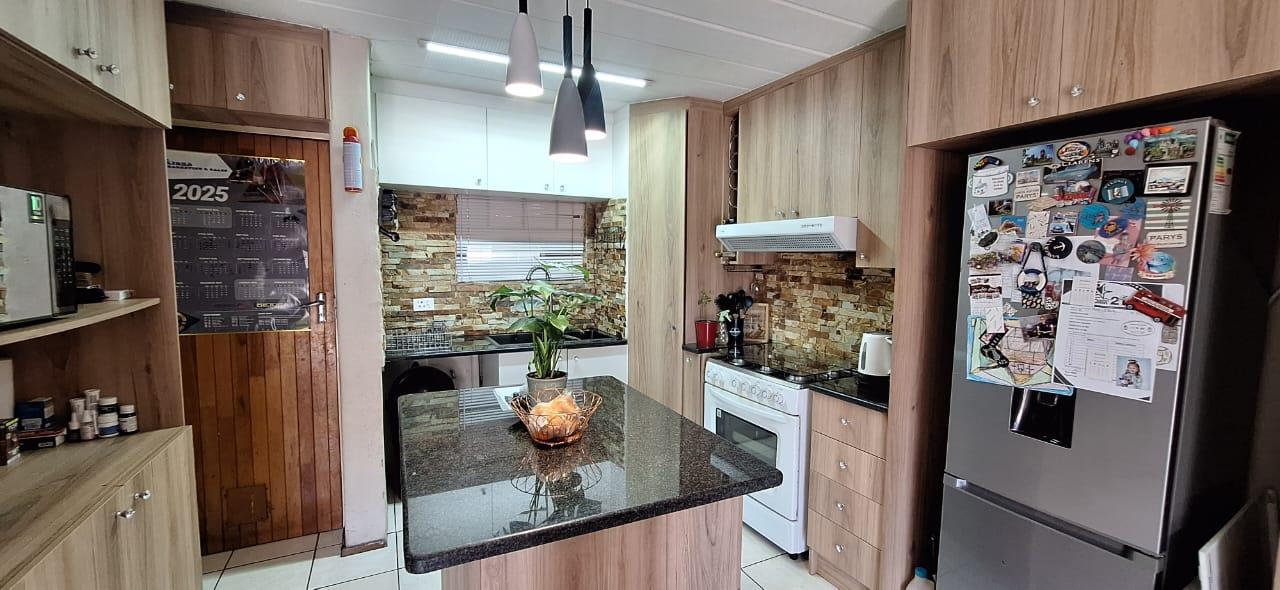 The heart of this home is the open-plan kitchen and lounge area, ideal for both relaxation and entertaining. The kitchen is a chef's delight, featuring an electric oven complemented by a 6-burner gas hob, ensuring you have all the tools you need for culinary excellence. Granite countertops add a touch of luxury, while the pantry cupboard and beautiful wall cladding features provide both functionality and aesthetic appeal.