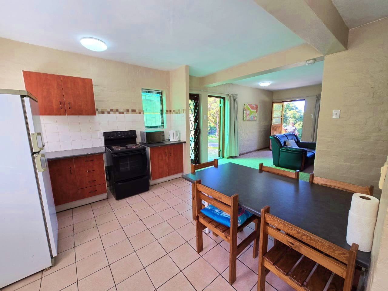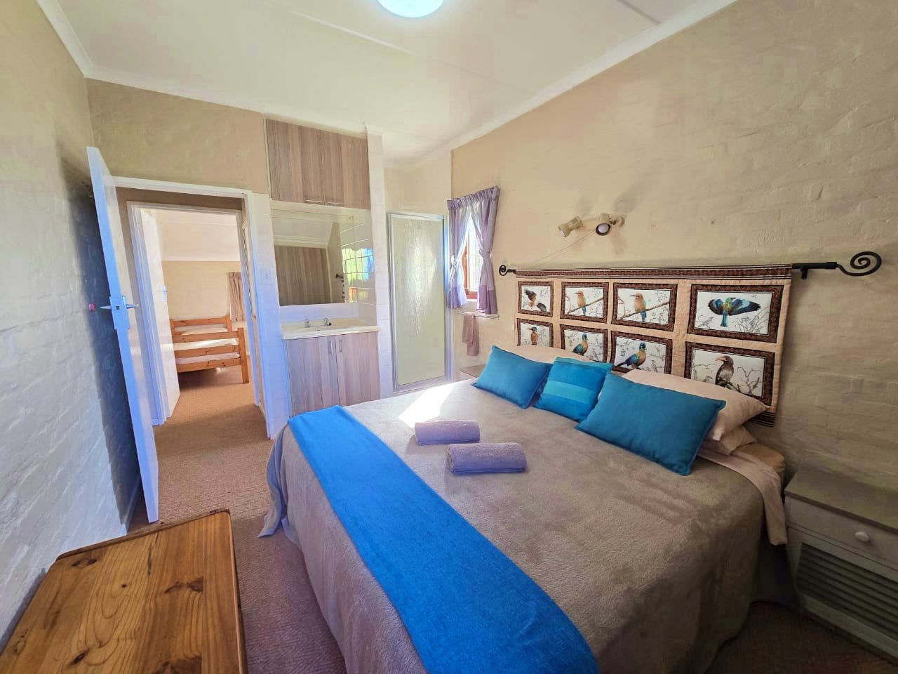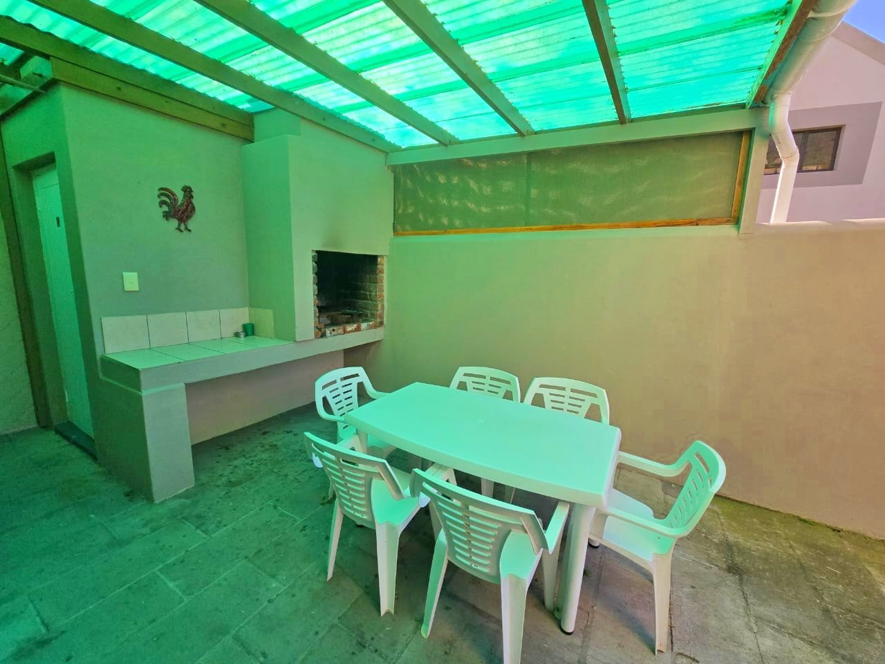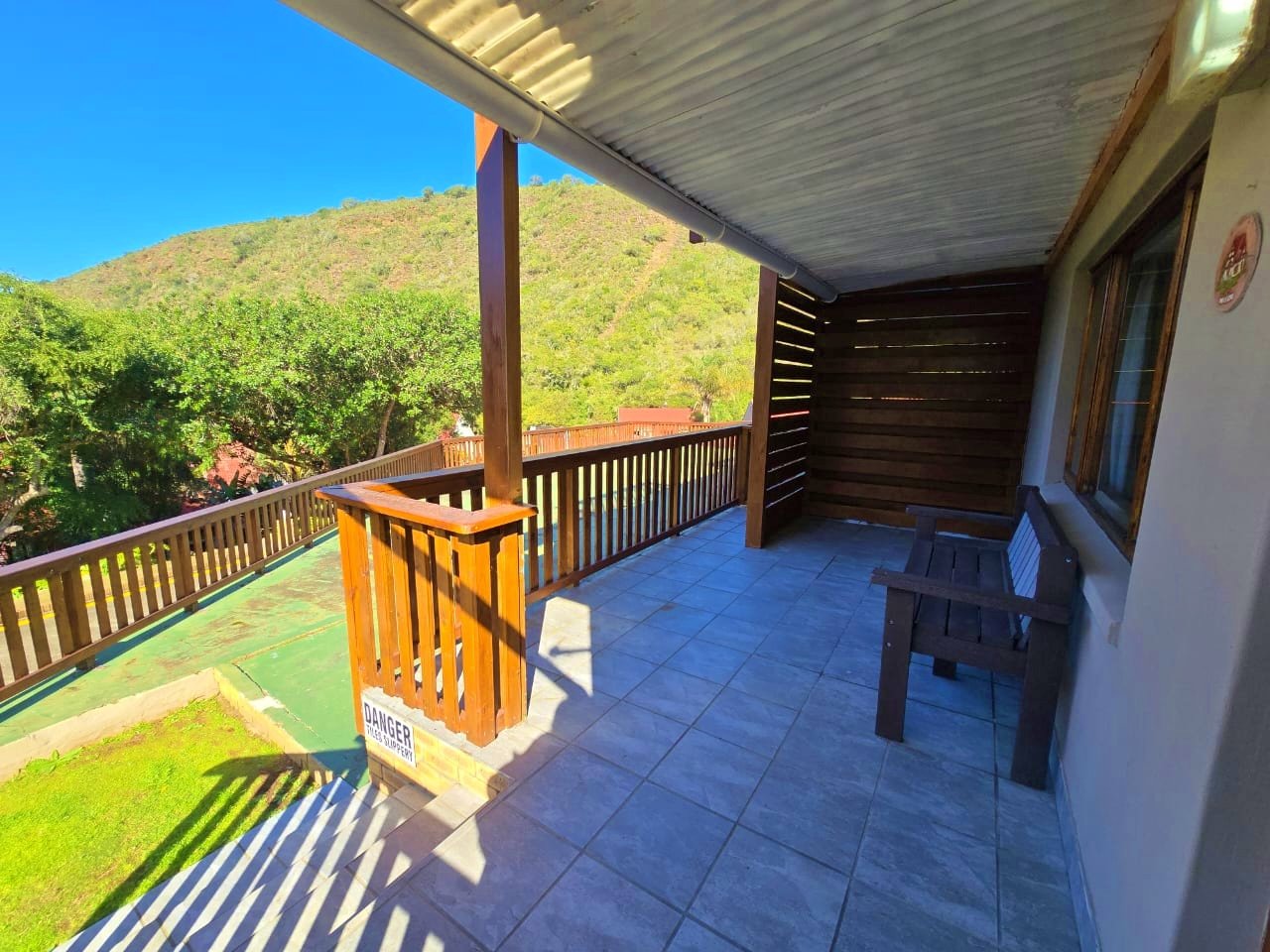 Inside, the layout is both functional and welcoming, with the main bedroom featuring its own shower and basin, while a separate toilet and full family bathroom add convenience for guests or families. Downstairs, the open-plan living area flows effortlessly to an undercover patio with a built-in braai, designed for casual entertaining and enjoying the coastal air. A covered front stoep adds a charming touch to the entrance and the outdoor bathroom adds convenience for freshening up before heading indoors.