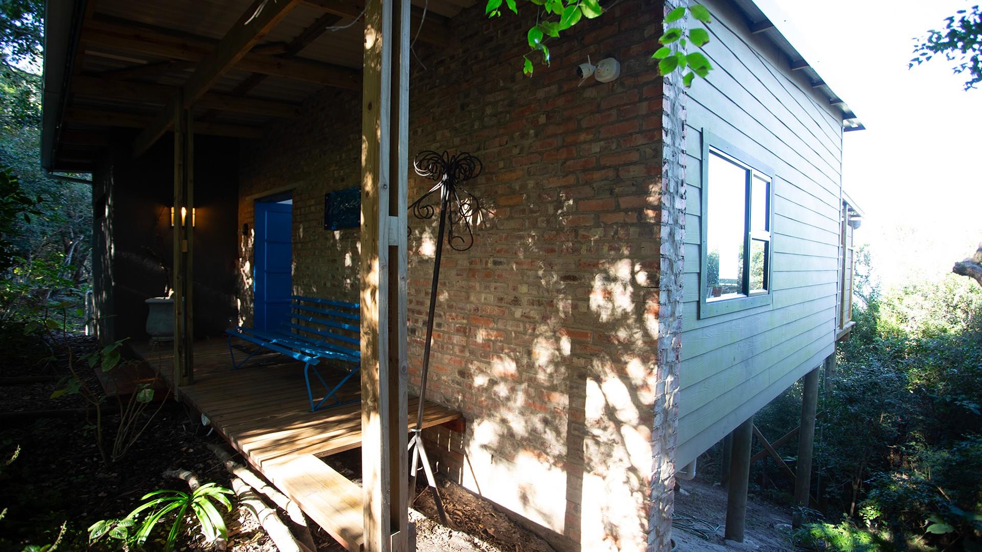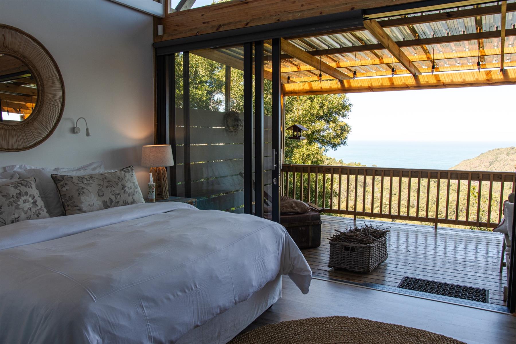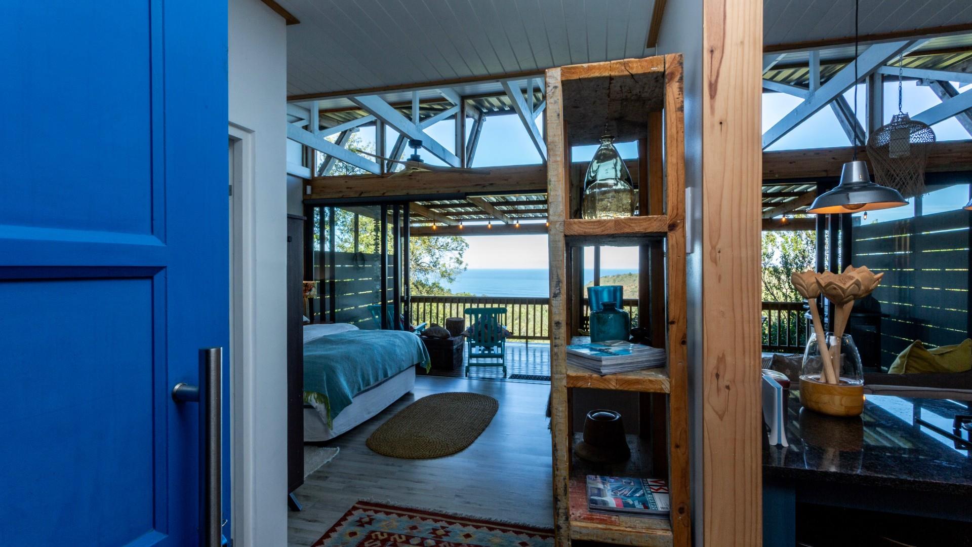 Step through the bold blue door and discover a world suspended in tranquillity — a beautifully designed wooden cottage surrounded by nature, where ocean views and birdsong greet you each morning.