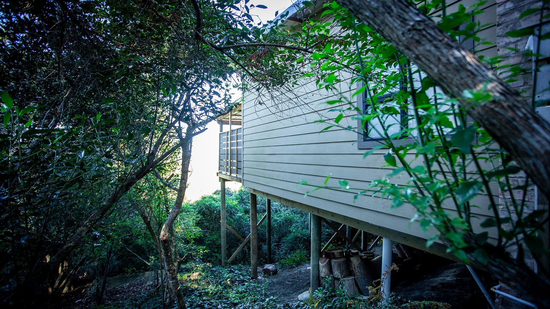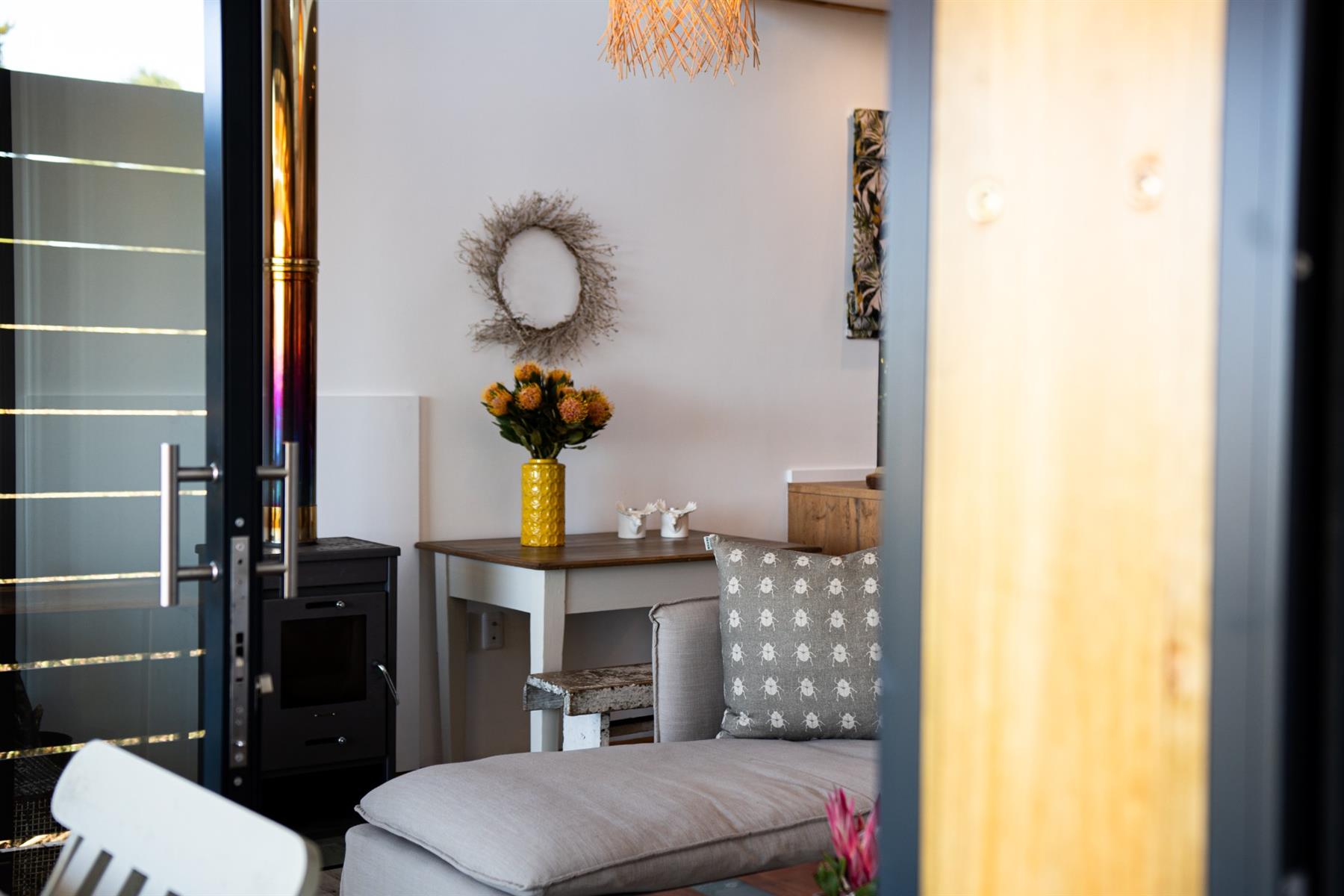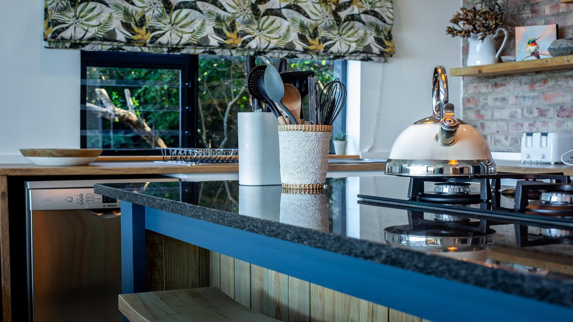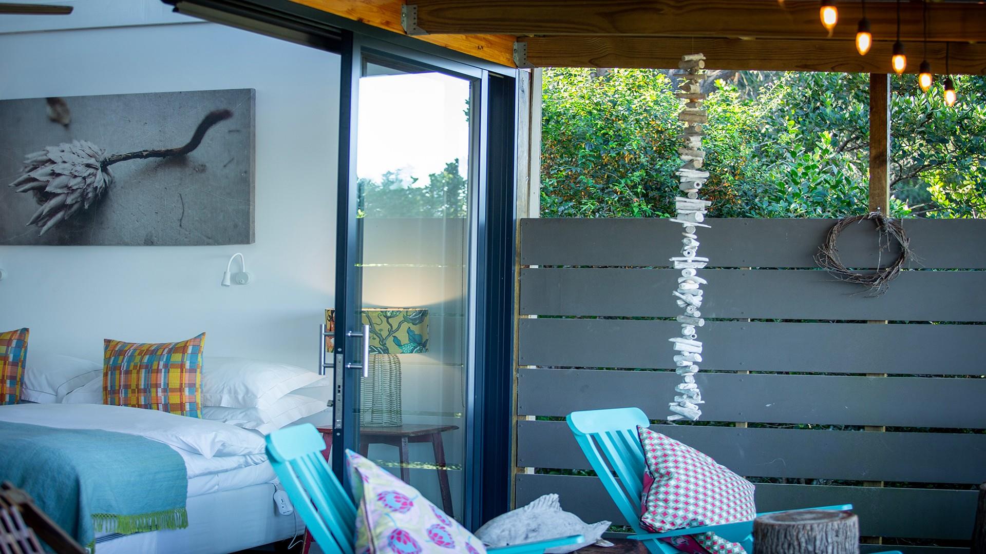 Step through the bold blue door and discover a world suspended in tranquillity — a beautifully designed wooden cottage surrounded by nature, where ocean views and birdsong greet you each morning.