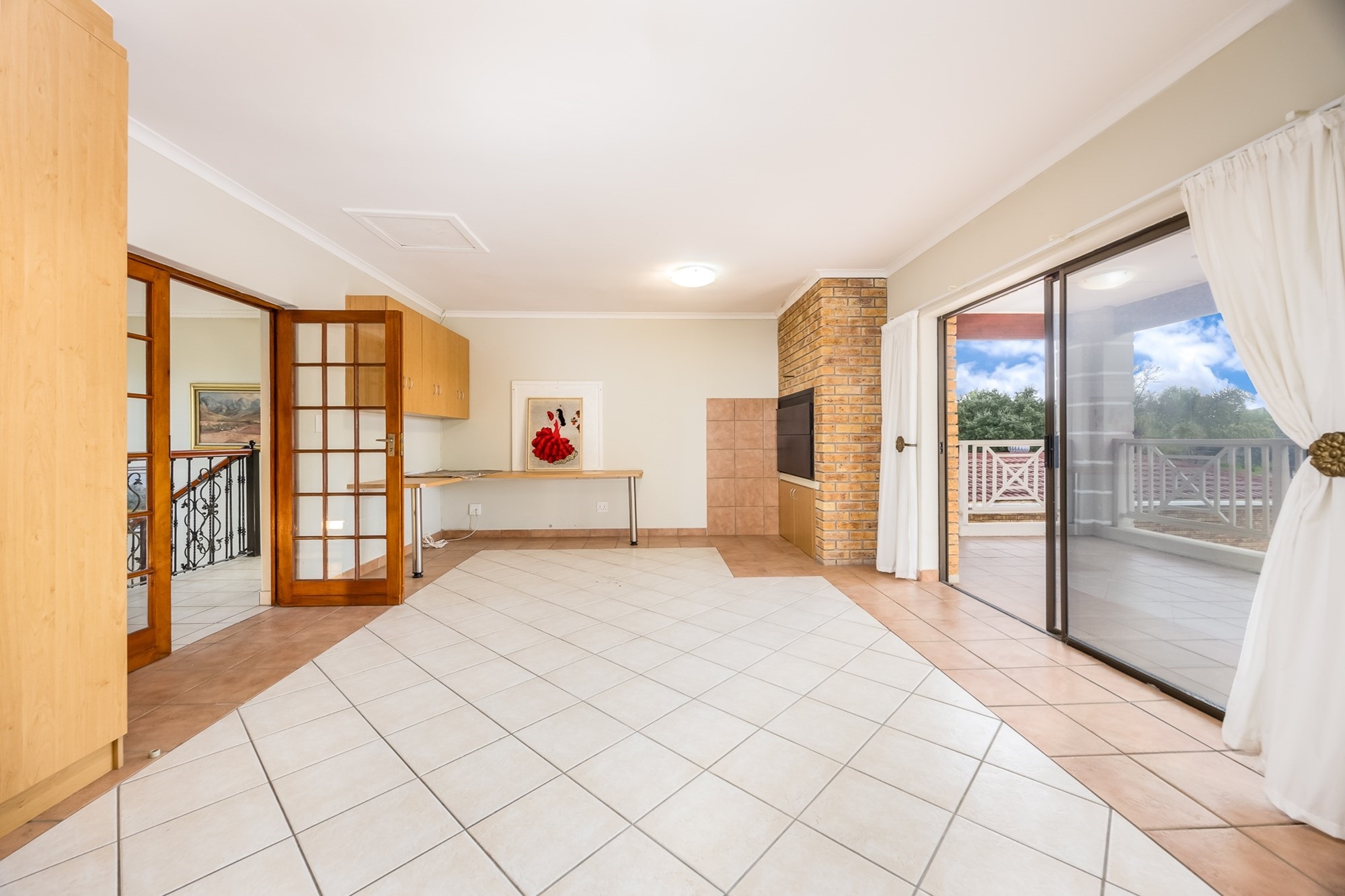 A spacious braai room with indoor braai and stoep is ideal for convivial family gatherings or several other options such an art studio, games room, teenage pad or office. The 8 garages offer ample space for all your vehicles and camping gear. The main manor home also houses a spacious braai room on the upper level with veranda and stunning country vistas, own kitchen and bathroom, which can serve a bachelor flat, and is ideal for overnight staying guests.