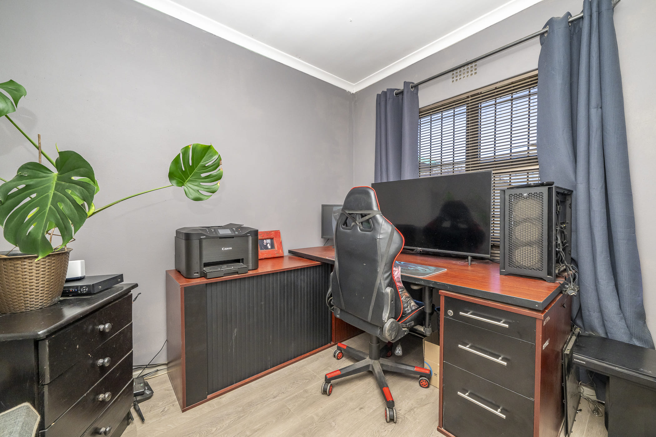 Slide open the patio door (complete with a security gate) and you’ll find a dedicated braai room where family and friends can gather and make memories. Want even more space to entertain? Stacker doors open out to the covered patio and enclosed backyard, creating a wonderful indoor-outdoor flow. The fully walled garden is pet-friendly and even offers the potential to add a splash pool for those warm summer days.