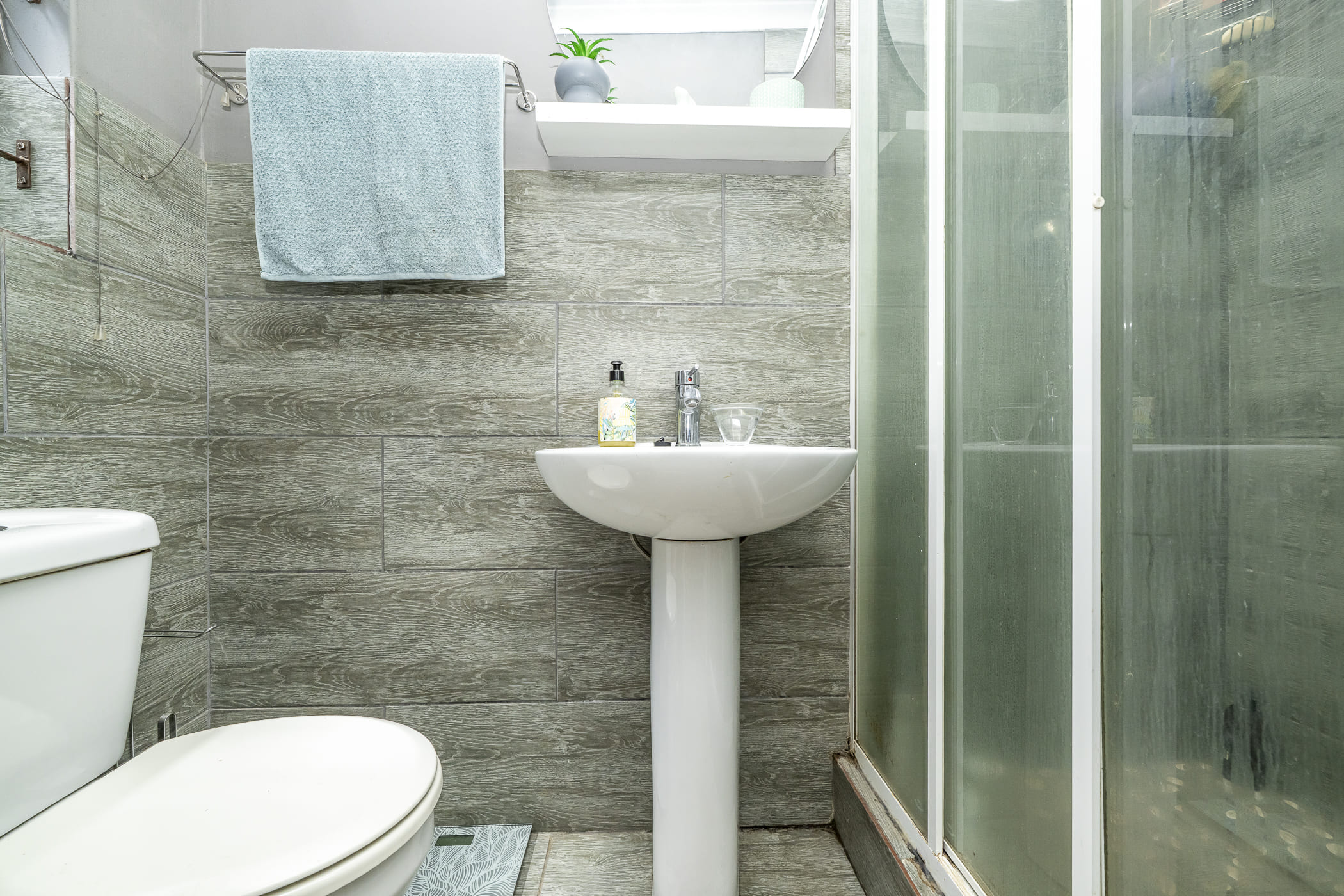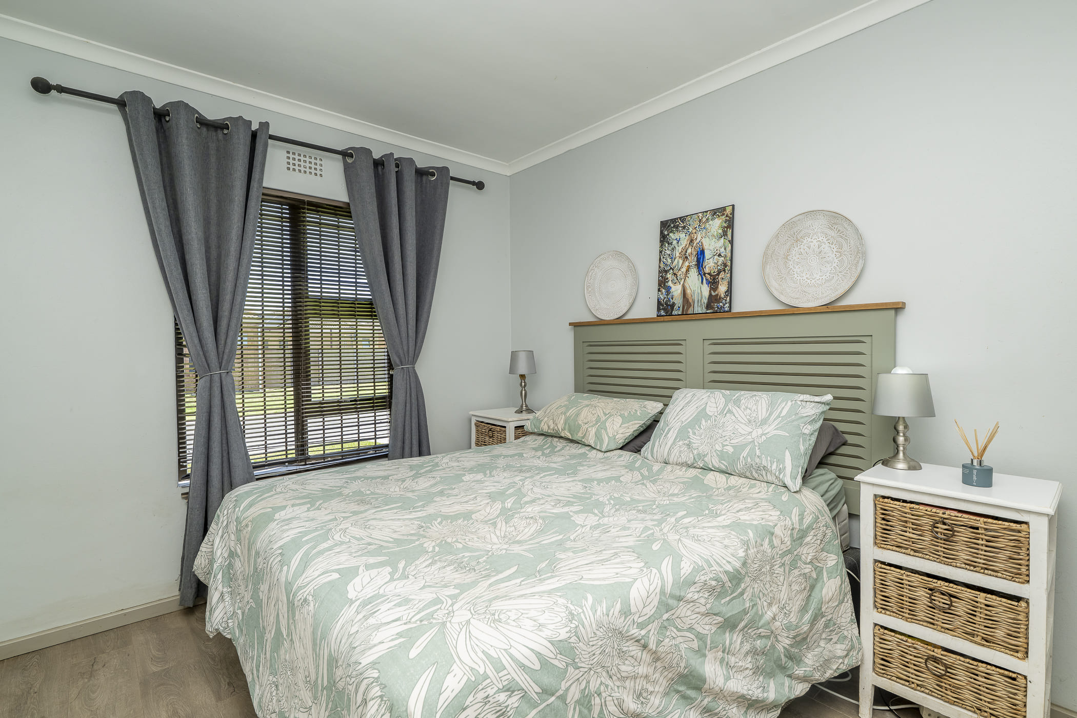 The home offers three comfortable bedrooms, all with built-in cupboards and laminate flooring. The main bedroom includes a neat en-suite bathroom with a shower, basin, and toilet. A modern family bathroom services the remaining bedrooms and features a shower over bath, basin, and toilet.