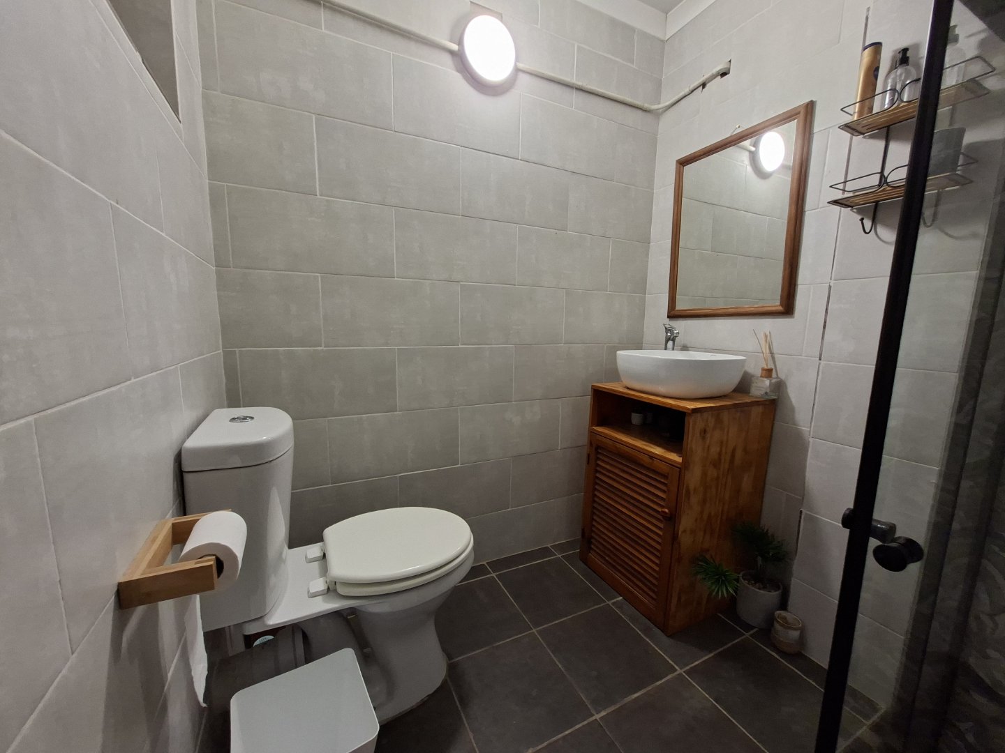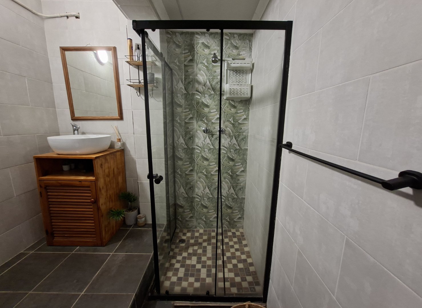 Bachelor's unit with a bathroom (shower, toilet, basin)