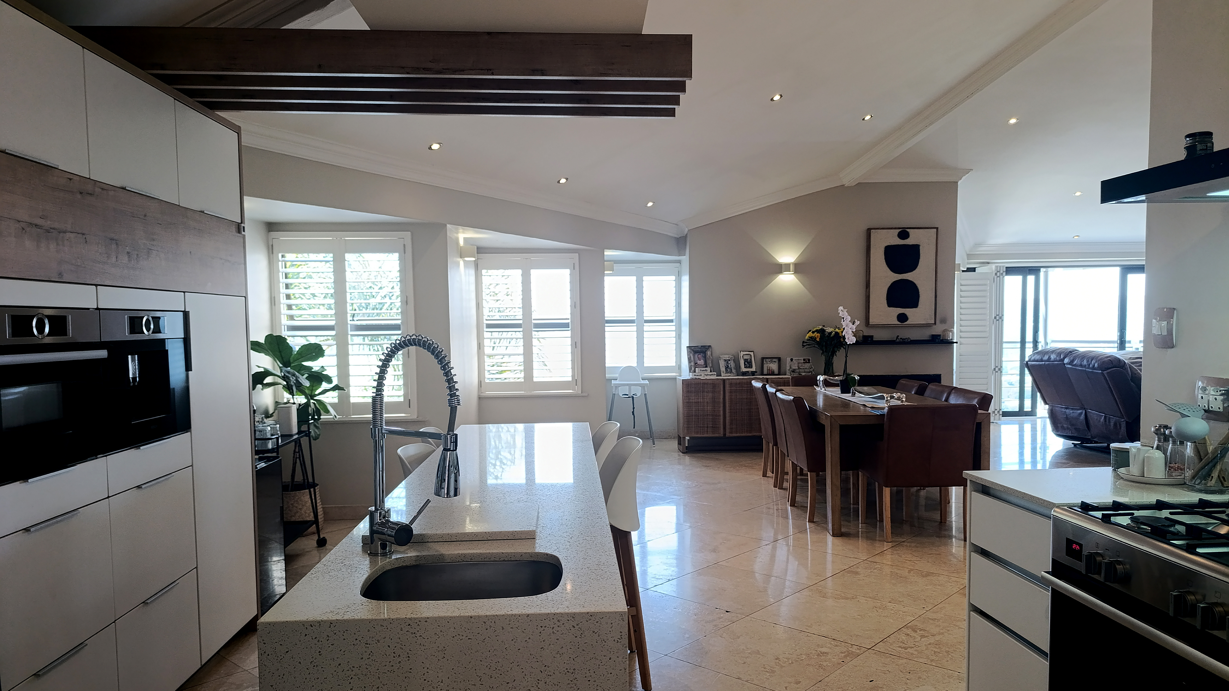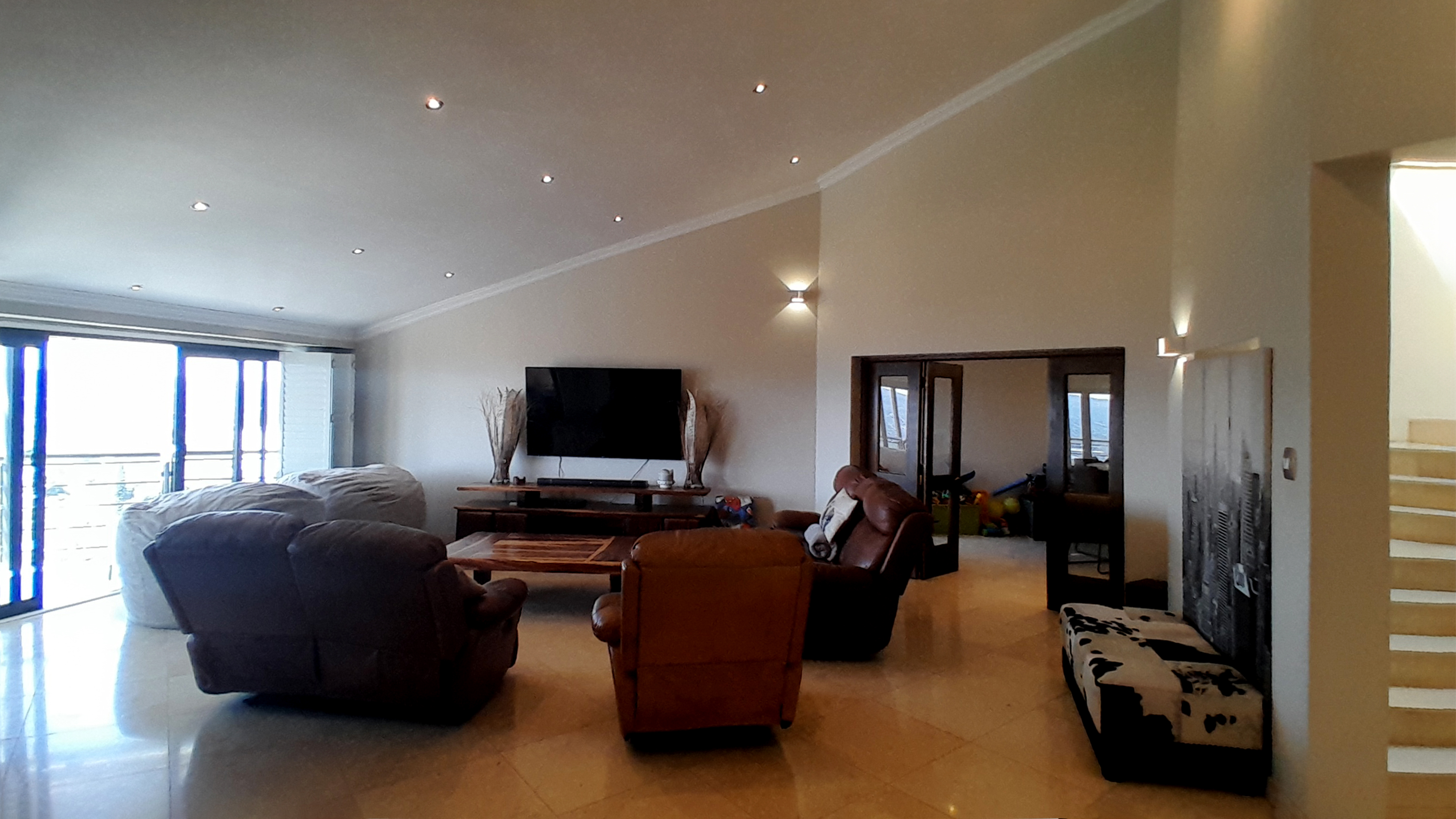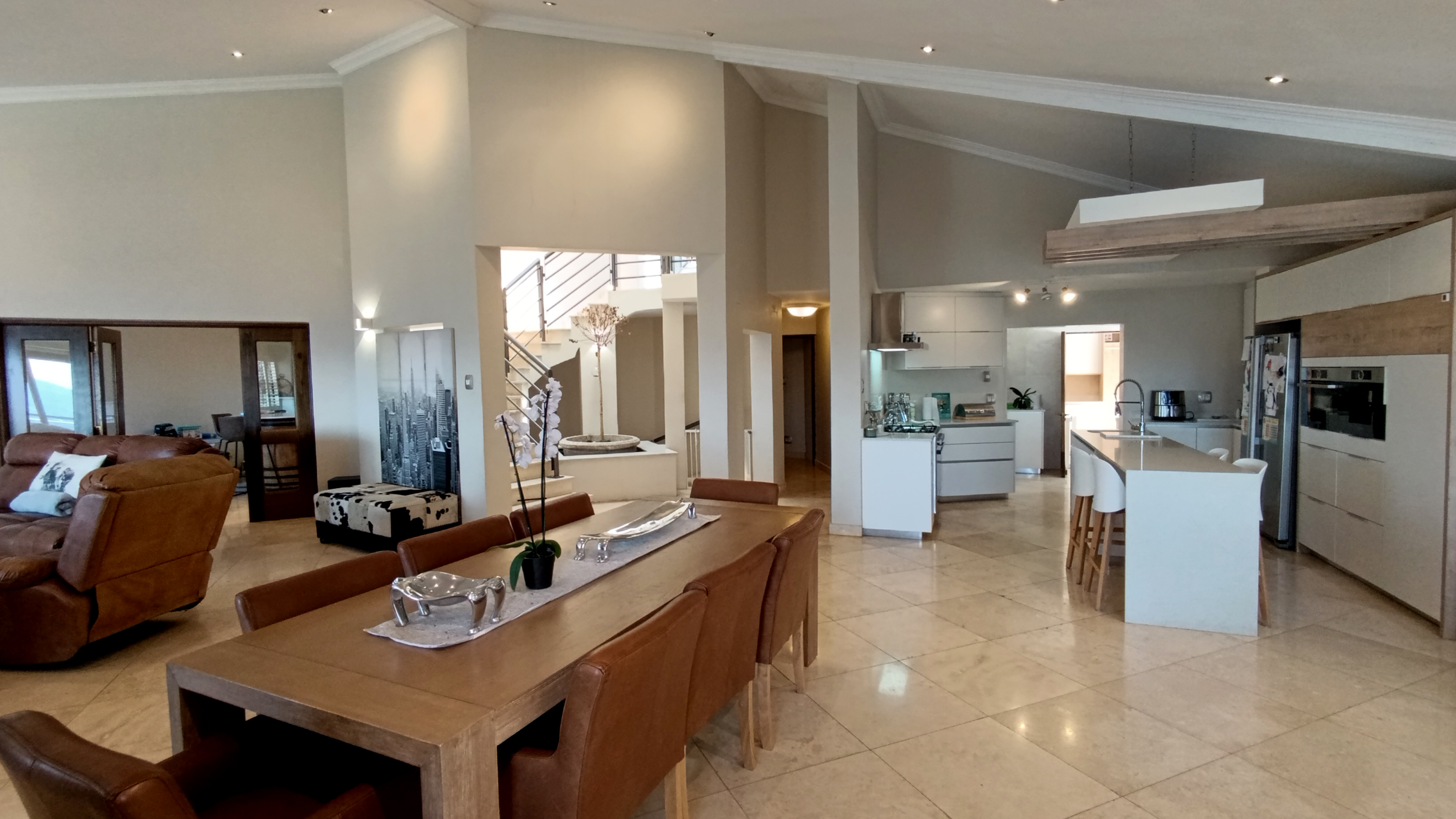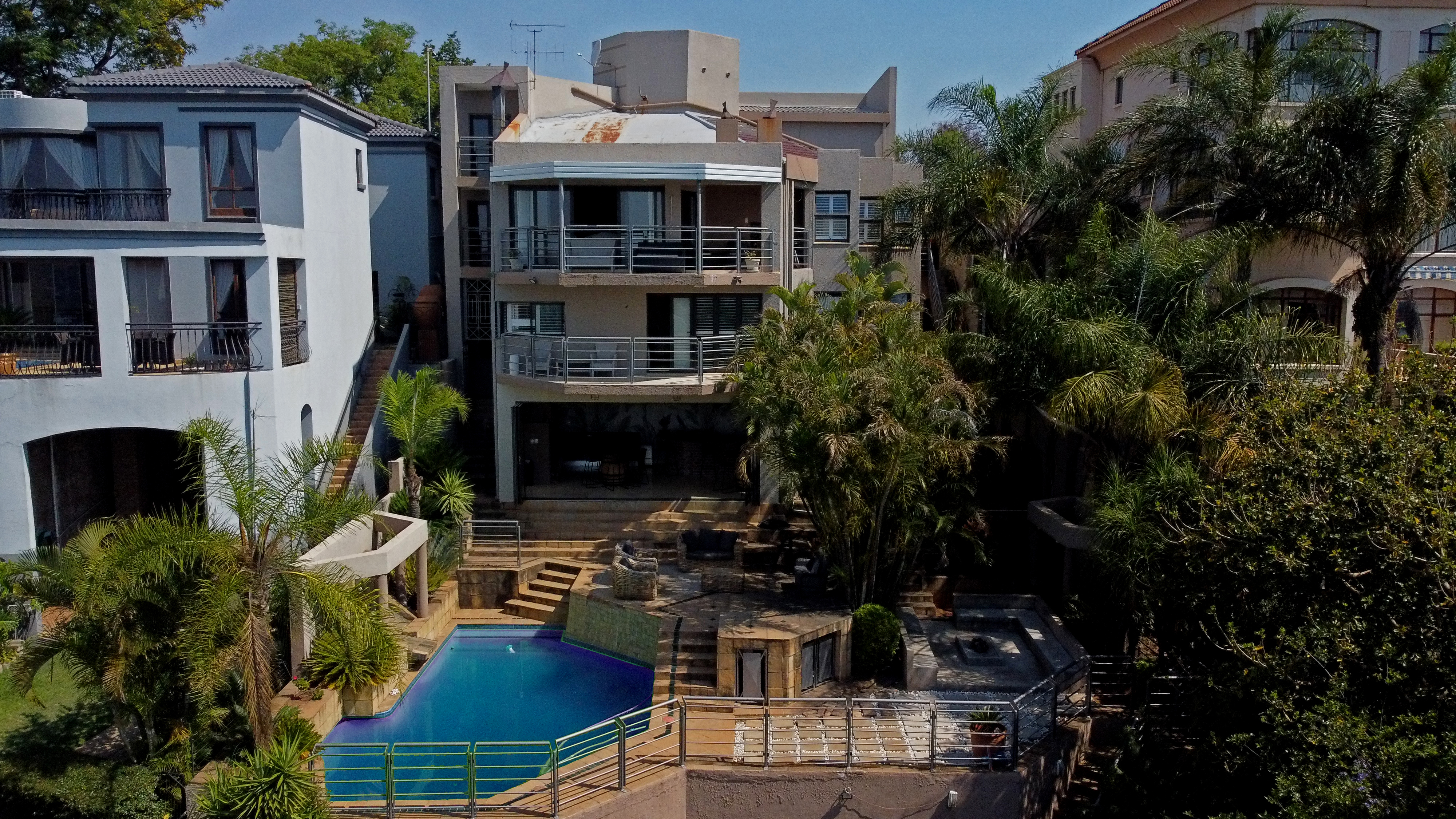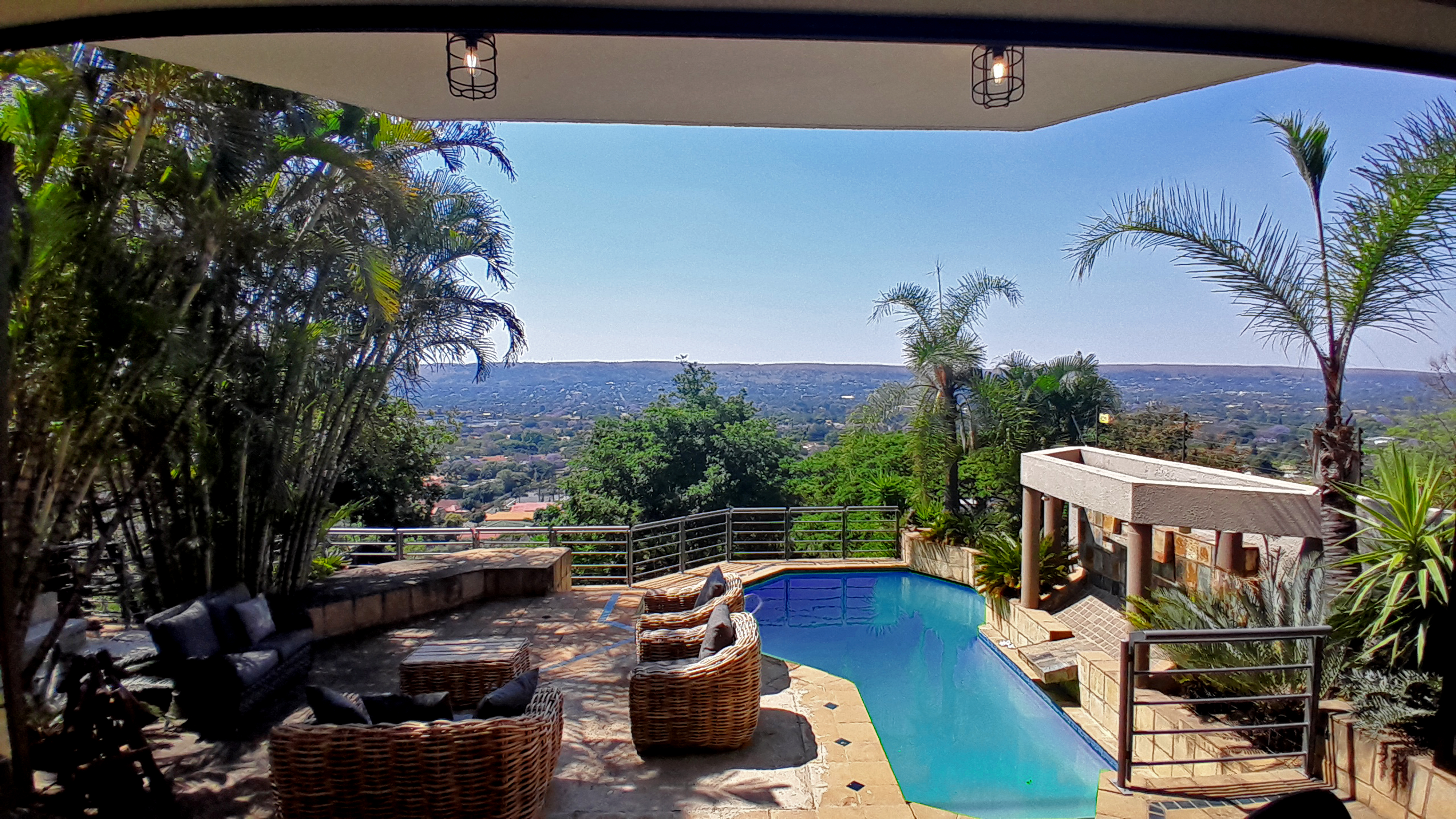 Step outside to your private oasis — a braai and entertainment area overlooking a large pool with panoramic views of the Moot, complete with a guest toilet for convenience. Enjoy two built-in braais (one downstairs and one on the balcony) and a dedicated fire pit area, ideal for open-air gatherings under the stars.
