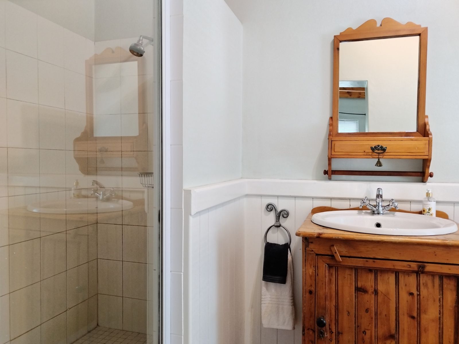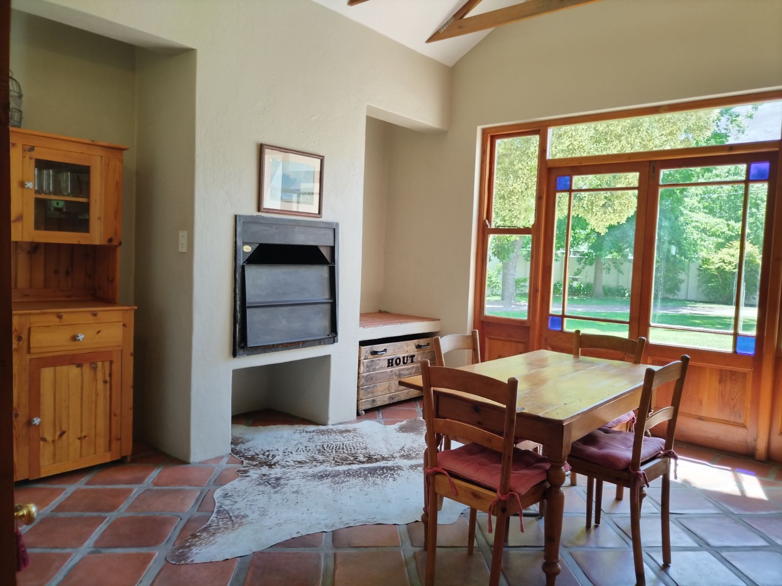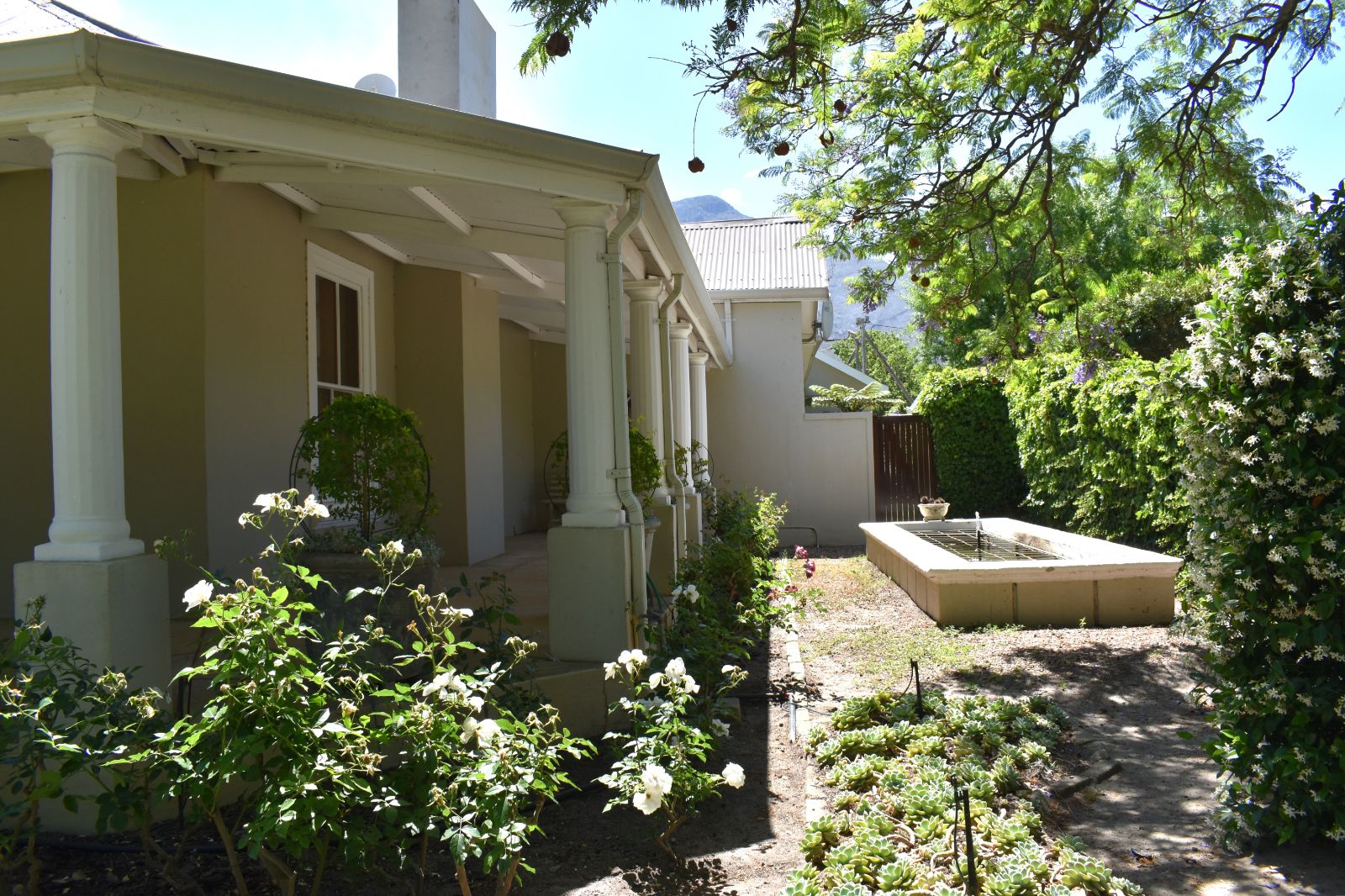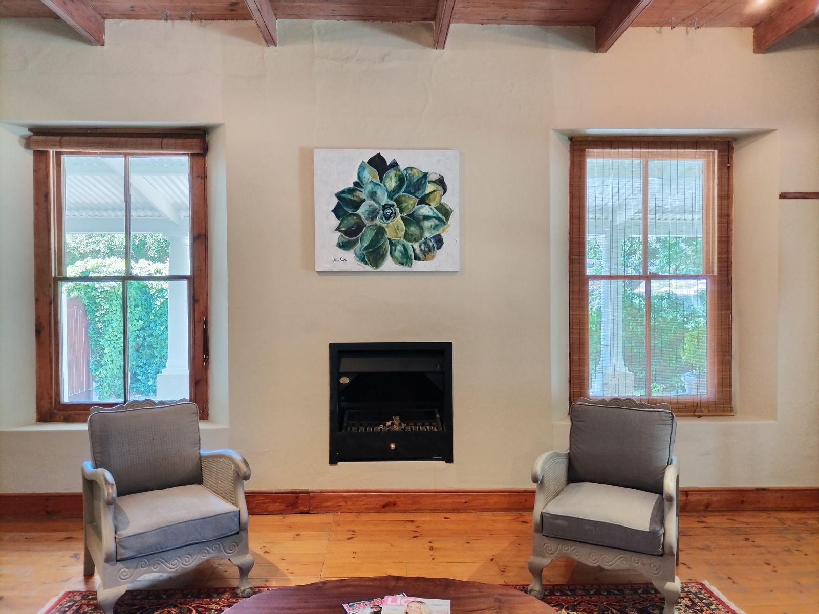 The well-manicured garden welcomes you onto the large front stoep. A traditional feature of this period home is the “stoep kamer” (porch room) with its separate entrance and own bathroom, ideal for overnight visitors.