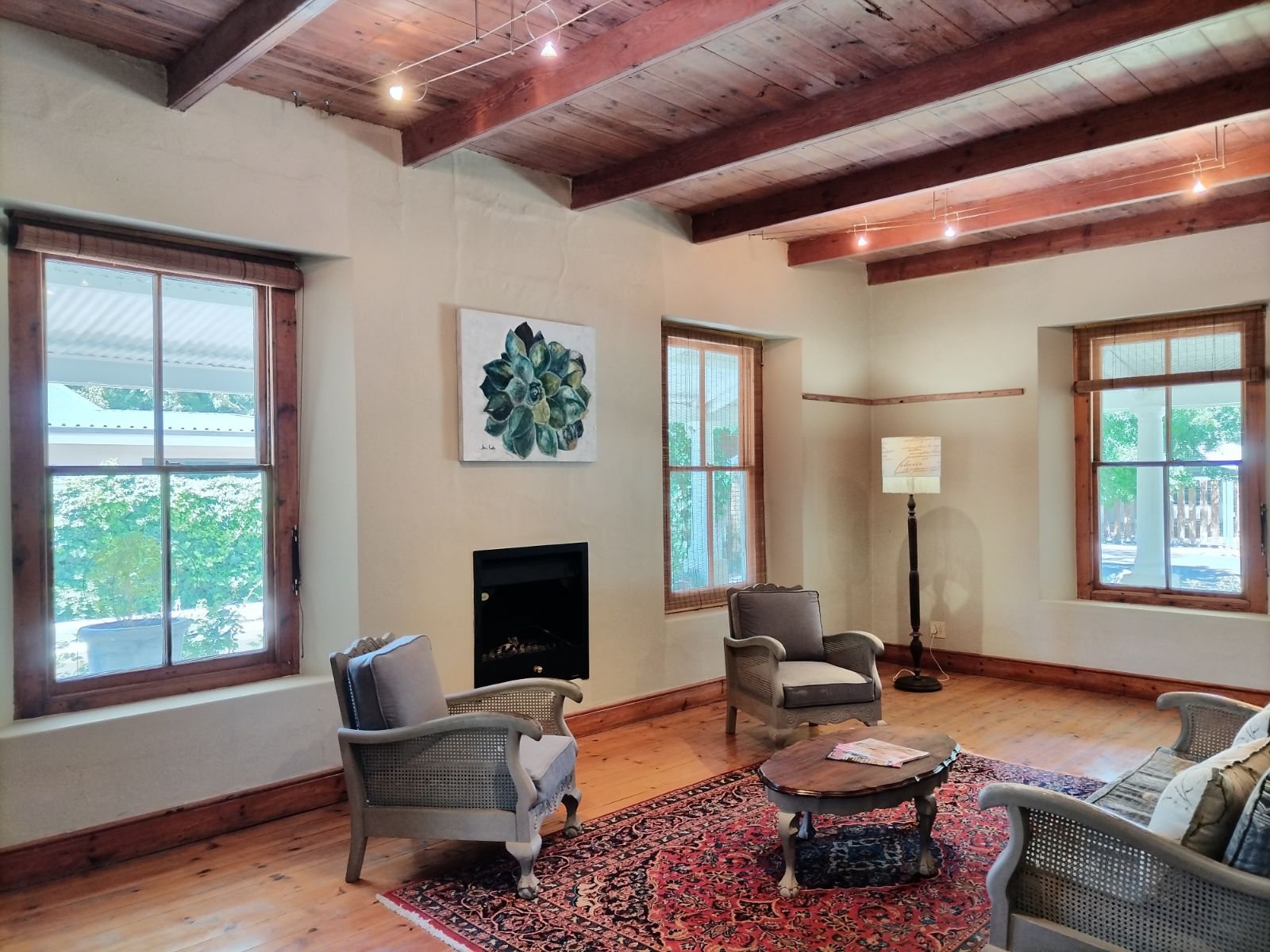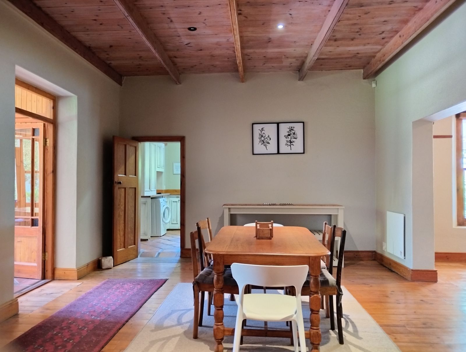 Upon entering the residence, one is greeted by a welcoming passage with polished wooden floors, guiding visitors seamlessly through the different areas of the home. The elegant lounge boasts wooden floors, wood ceilings, sash windows and a fire place. The open plan flow to the adjacent dining room with similar features creates the flow of effortless entertainment.