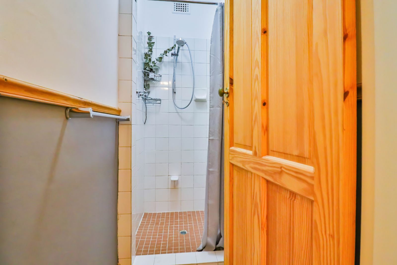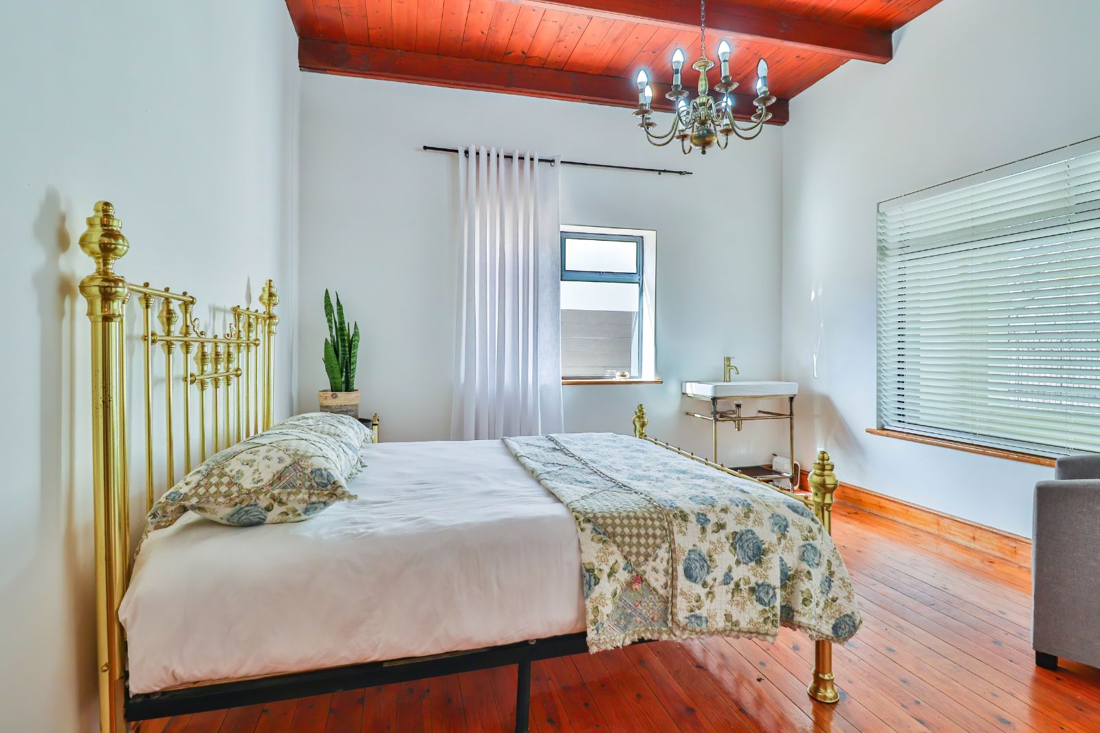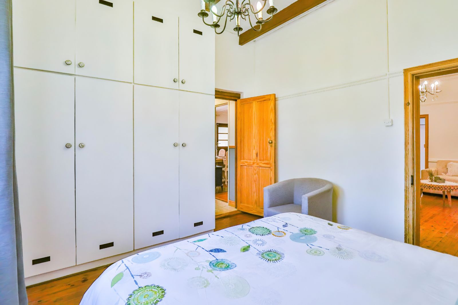 What used to be a lounge or office is now used as a bedroom boasting the pressed metal ceiling and wooden floors. The second bedroom has wooden floors, original wood ceiling with exposed beams and built in cupboards. This bedroom also has a bespoke washbasin which was not unusual those days and probably making a comeback.