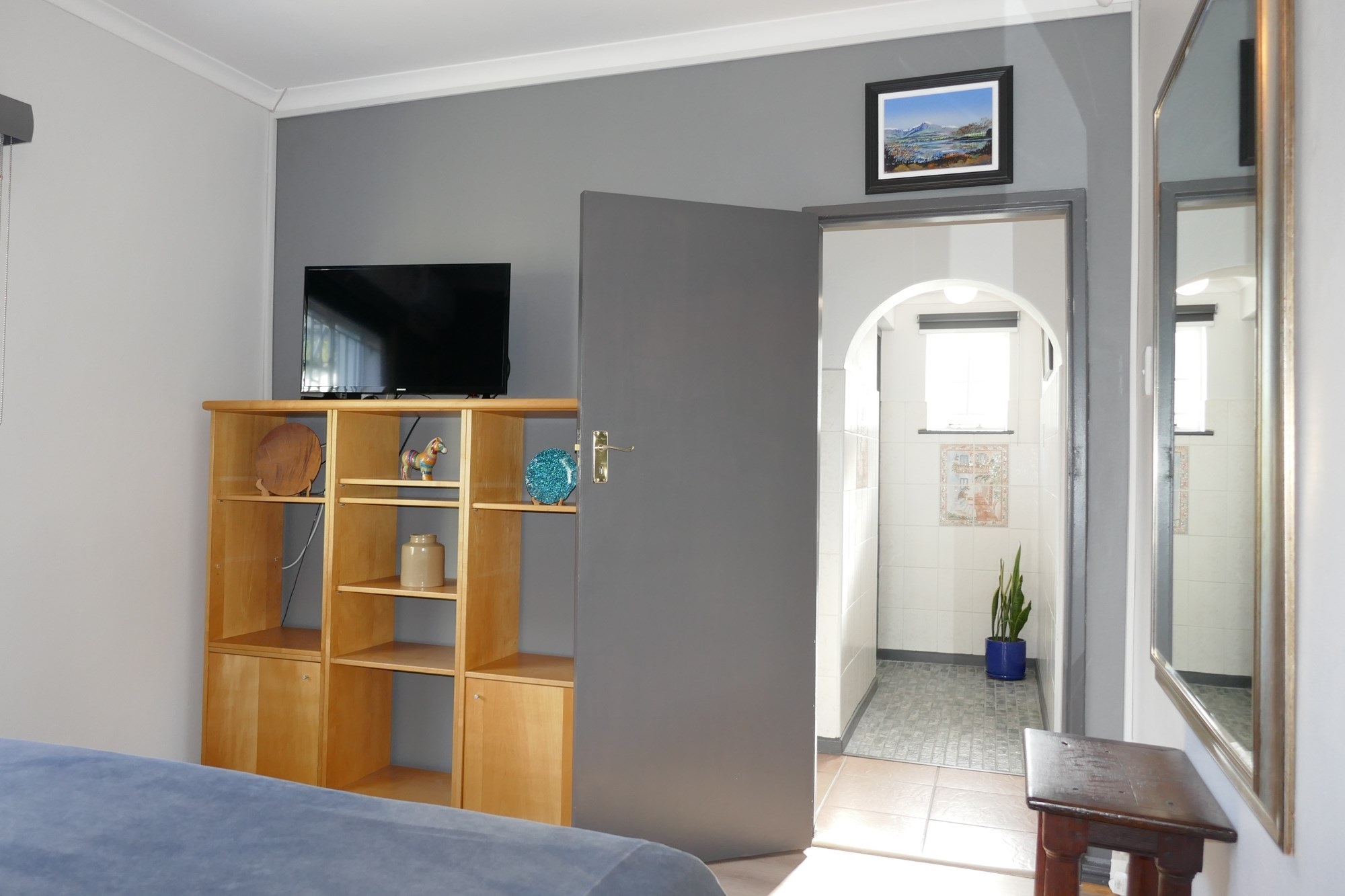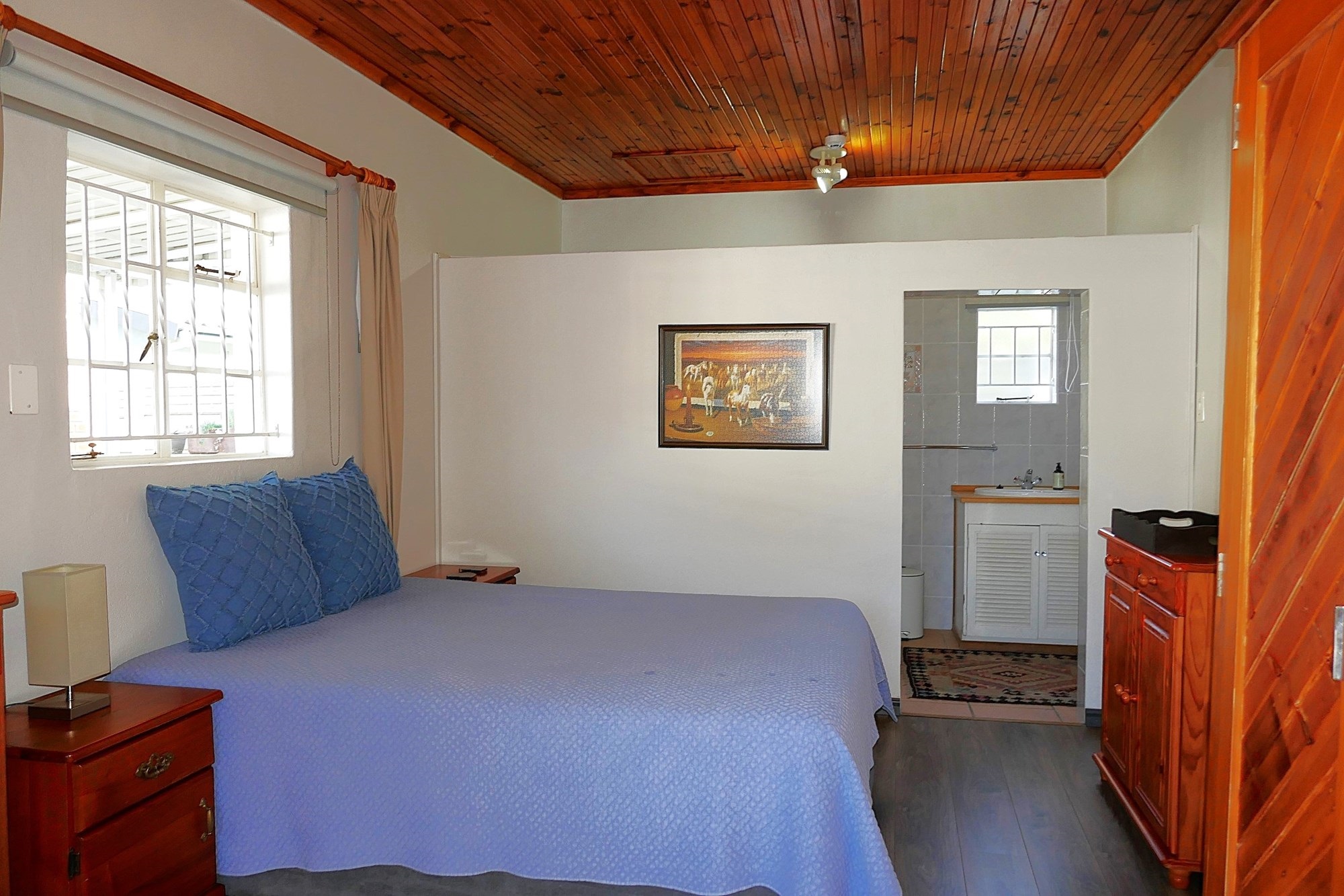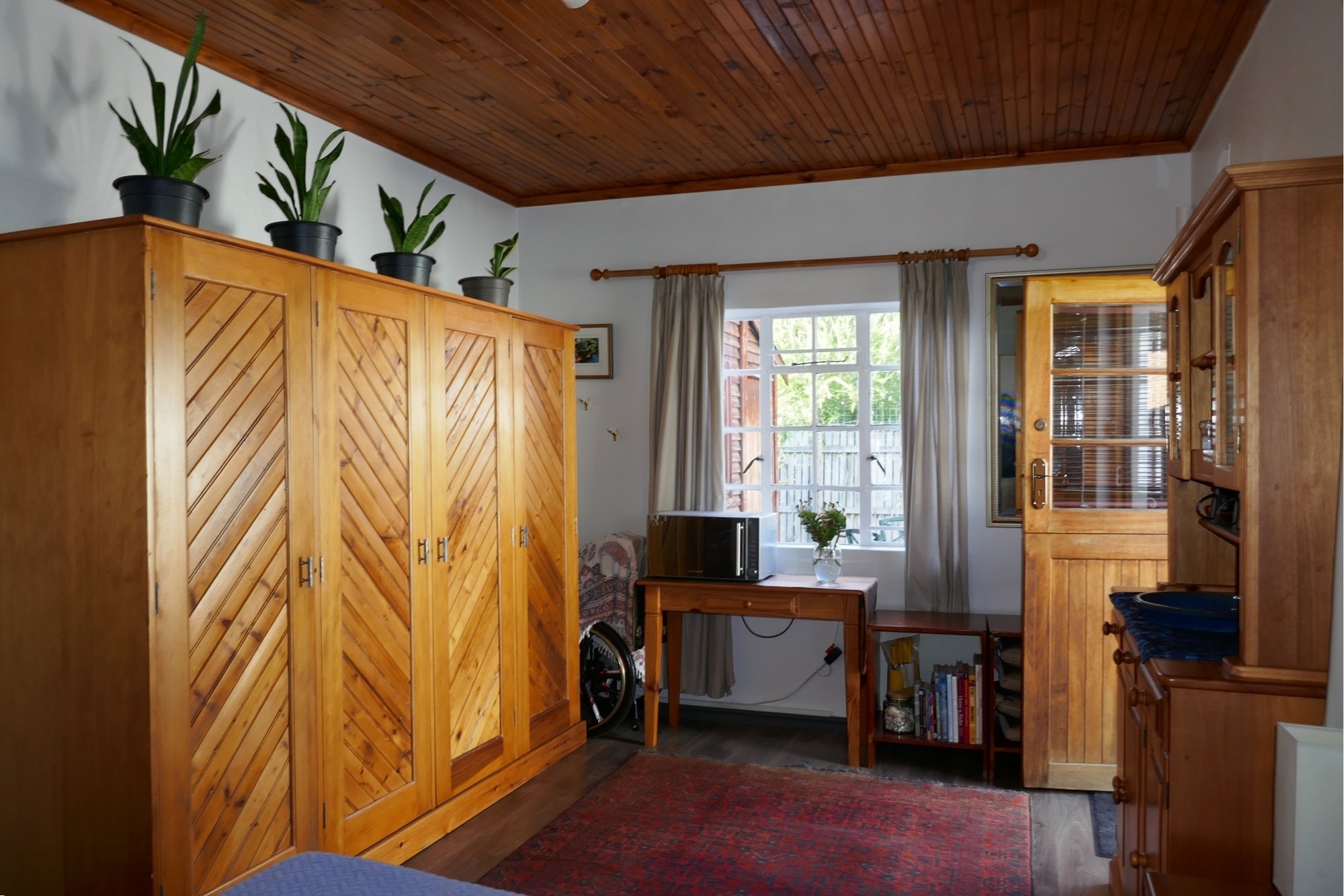 The separate cottage, with its own private entrance, offers a generously sized bedroom/living area with a large freestanding cupboard and a spacious walk-in en-suite shower bathroom—ideal for extended family, guests, or rental income.