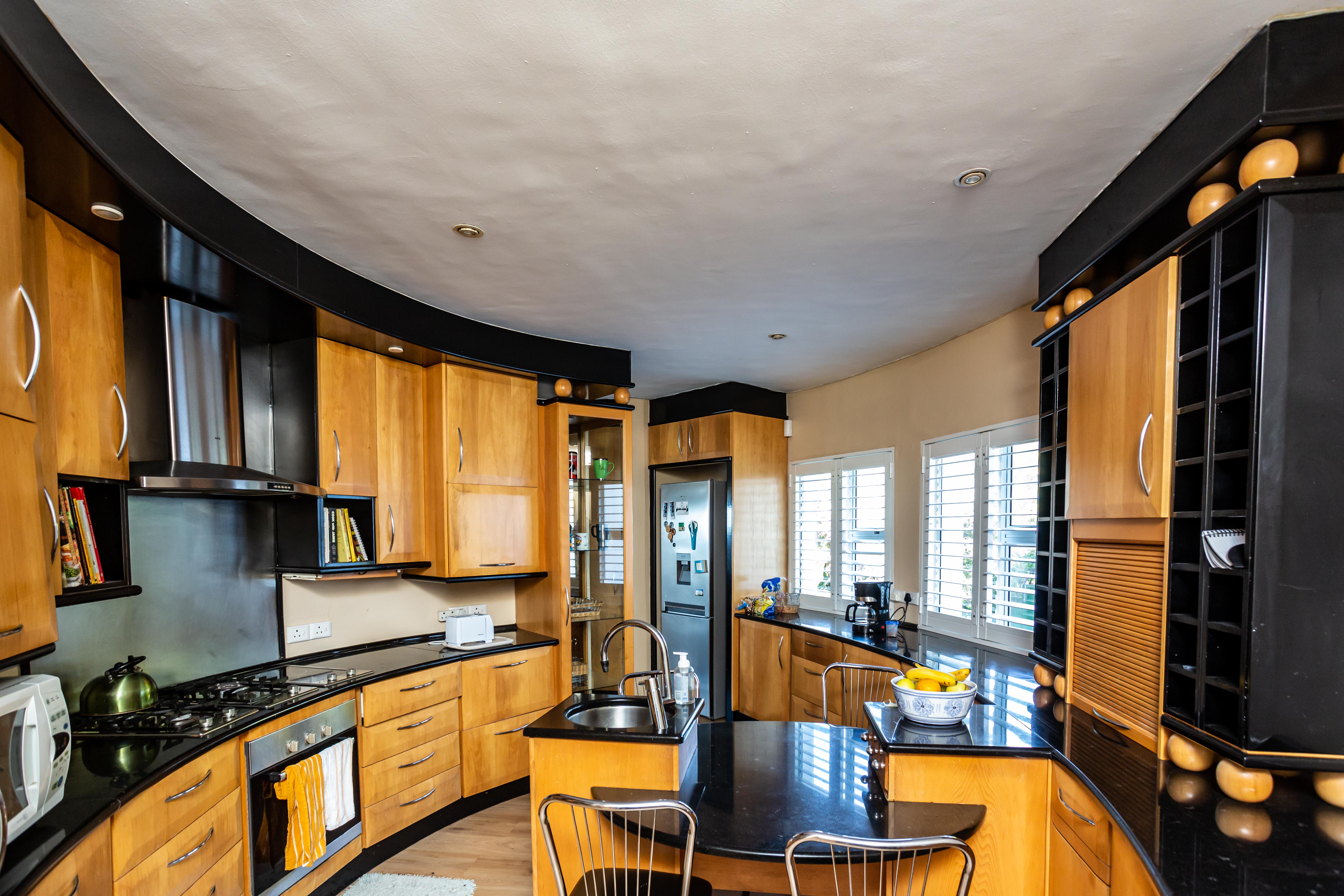 This architecturally striking 4-bedroom, 2-bathroom home is set in a private environment, offering both a sense of retreat and the convenience of suburban living. Its unique curved roofline and bold design make it stand out as a true landmark property.