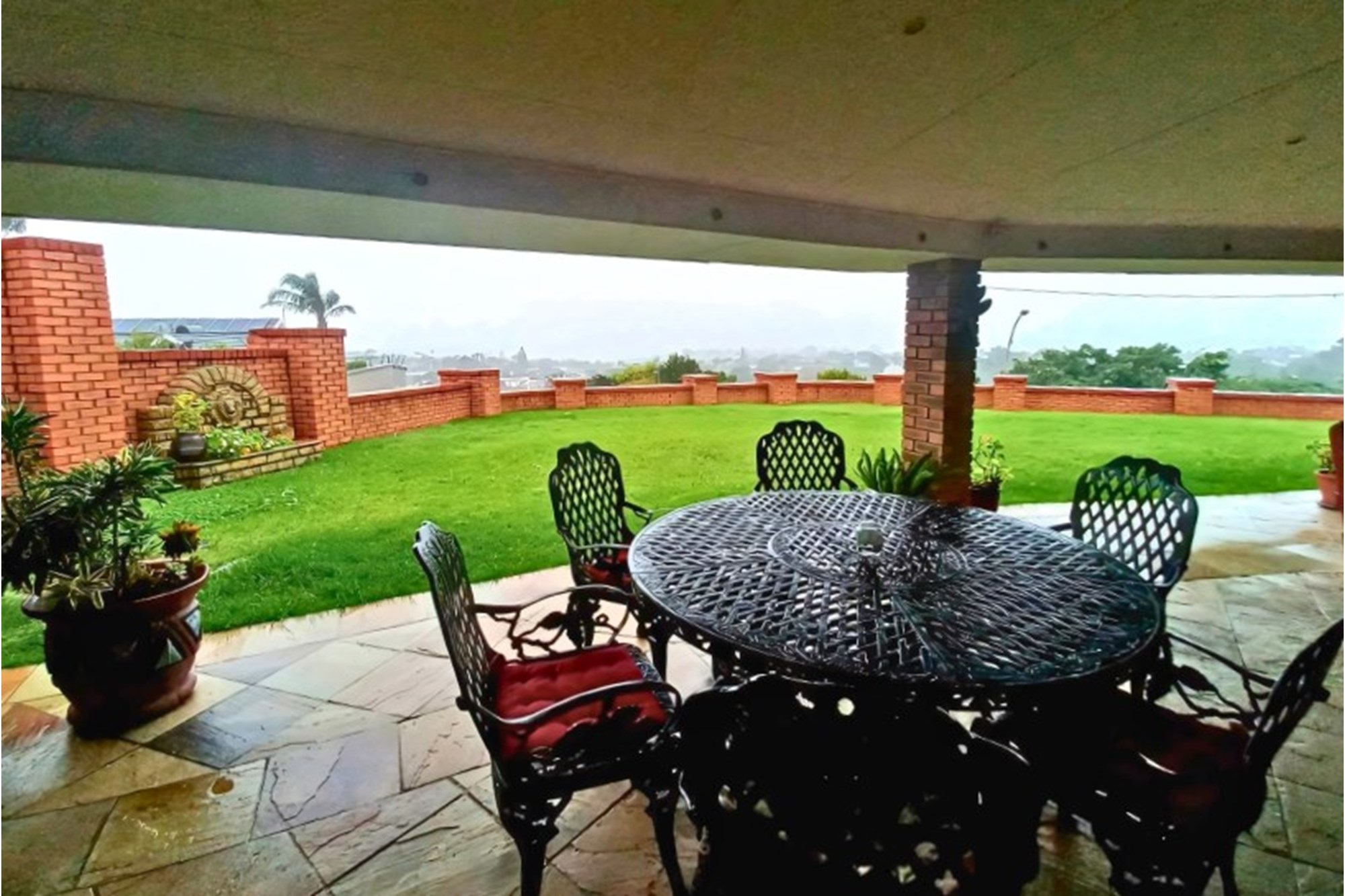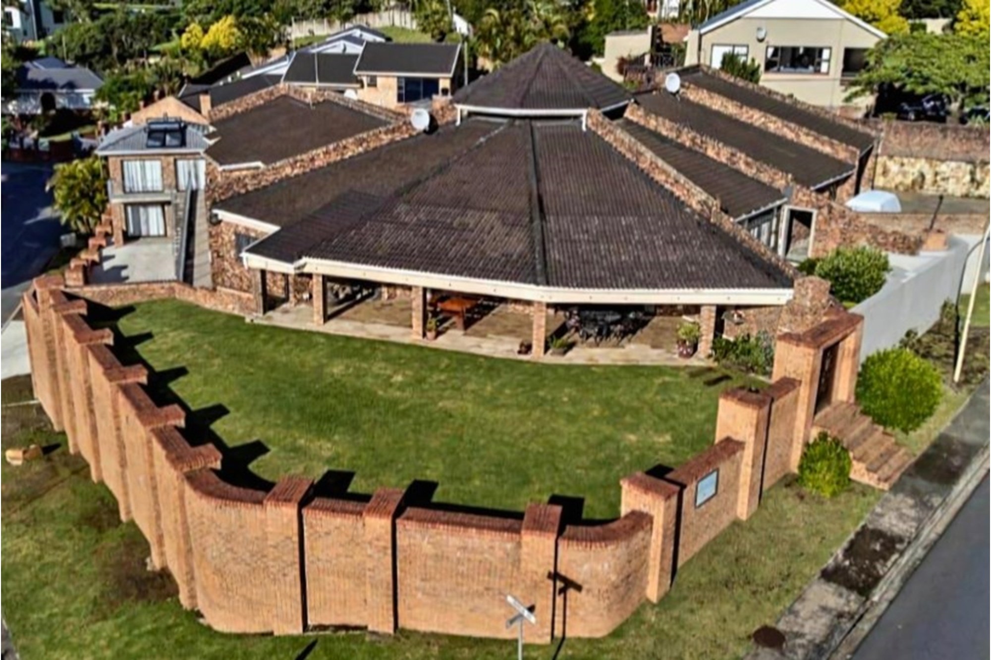 Perched on an elevated corner plot, this home commands attention with its striking architecture, low-maintenance clinker brick façade, and elegant arched doorways and windows that frame the stunning ocean vistas. Designed for effortless indoor-outdoor living, the residence features a beautifully landscaped garden, a saltwater swimming pool, and an expansive covered patio with a built-in braai, making it the perfect setting for entertaining guests while soaking in the picturesque valley and sea views.