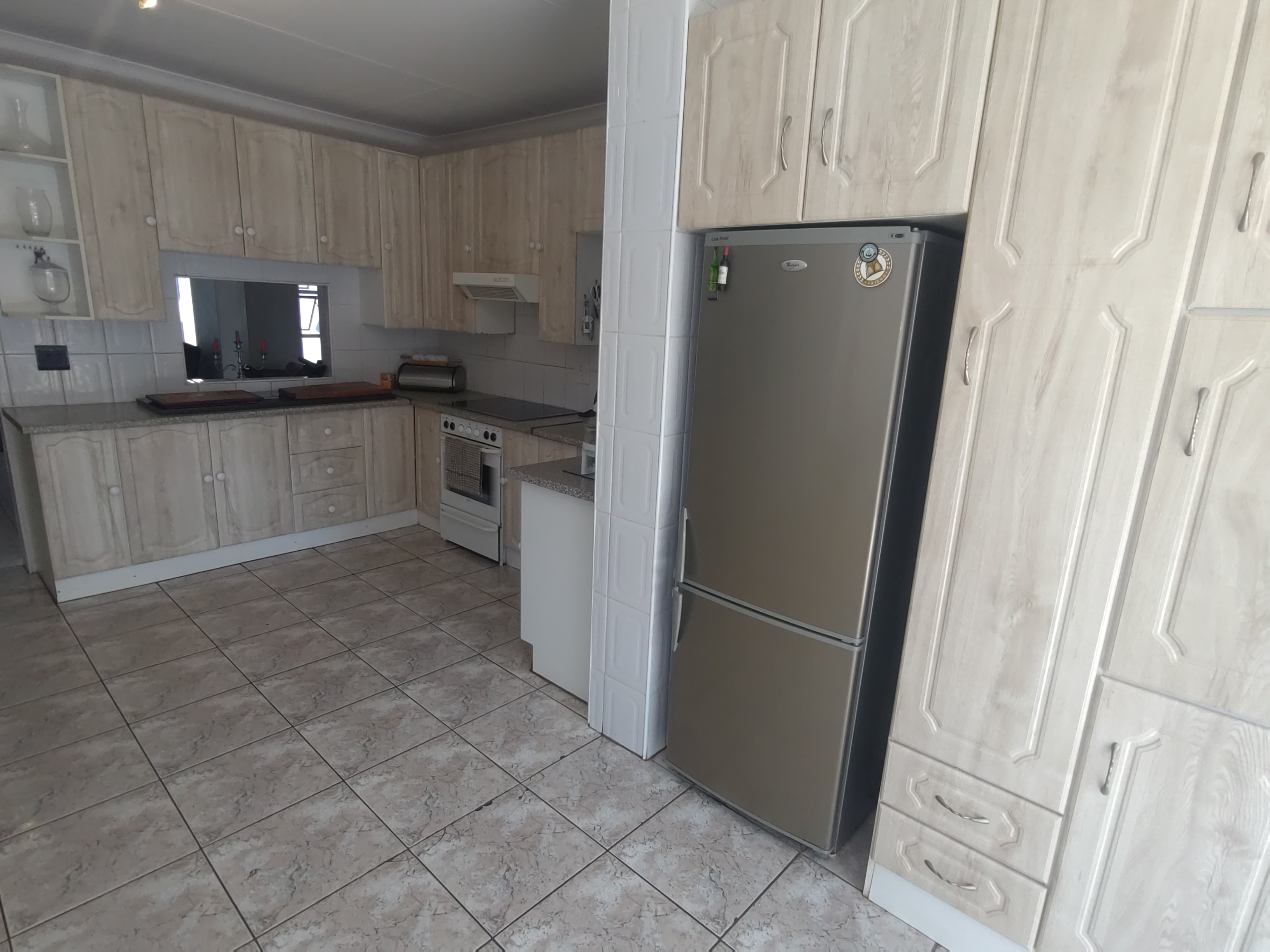 Spacious kitchen with ample cupboards. space for a dishwasher and fittings for your washer and dryer. sliding doors to the outside.