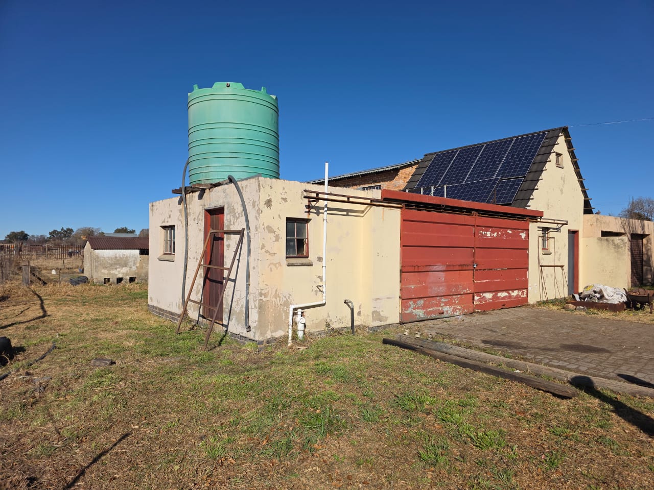 Equipped borehole with JOJO tank supplying both houses.