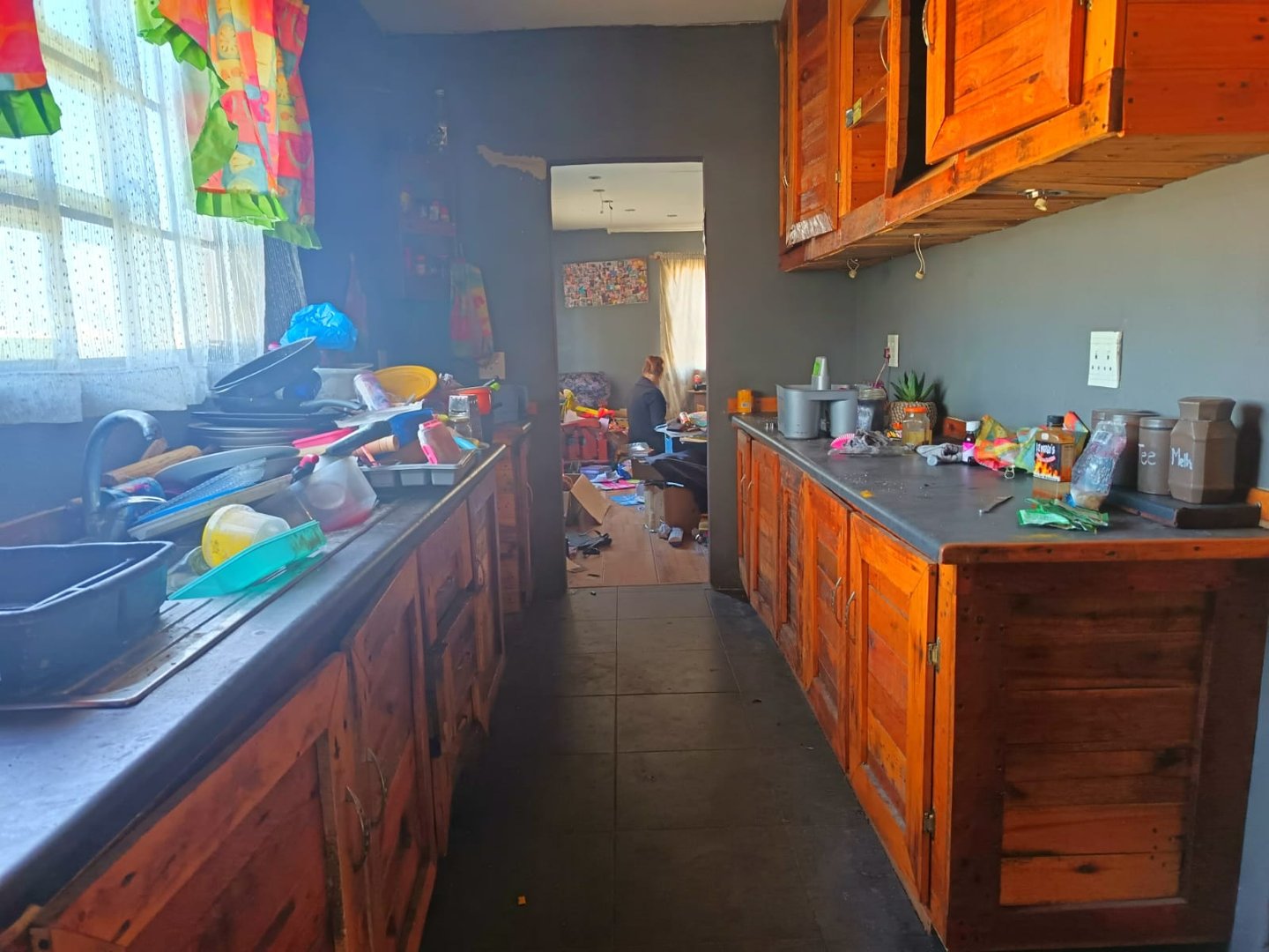 Kitchen with open plan living room area.