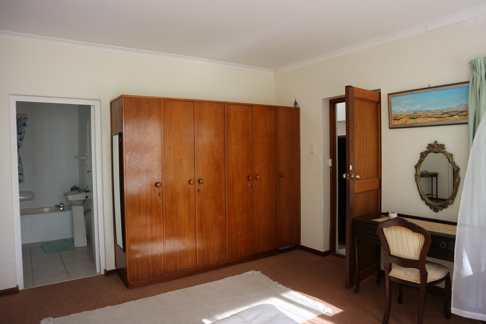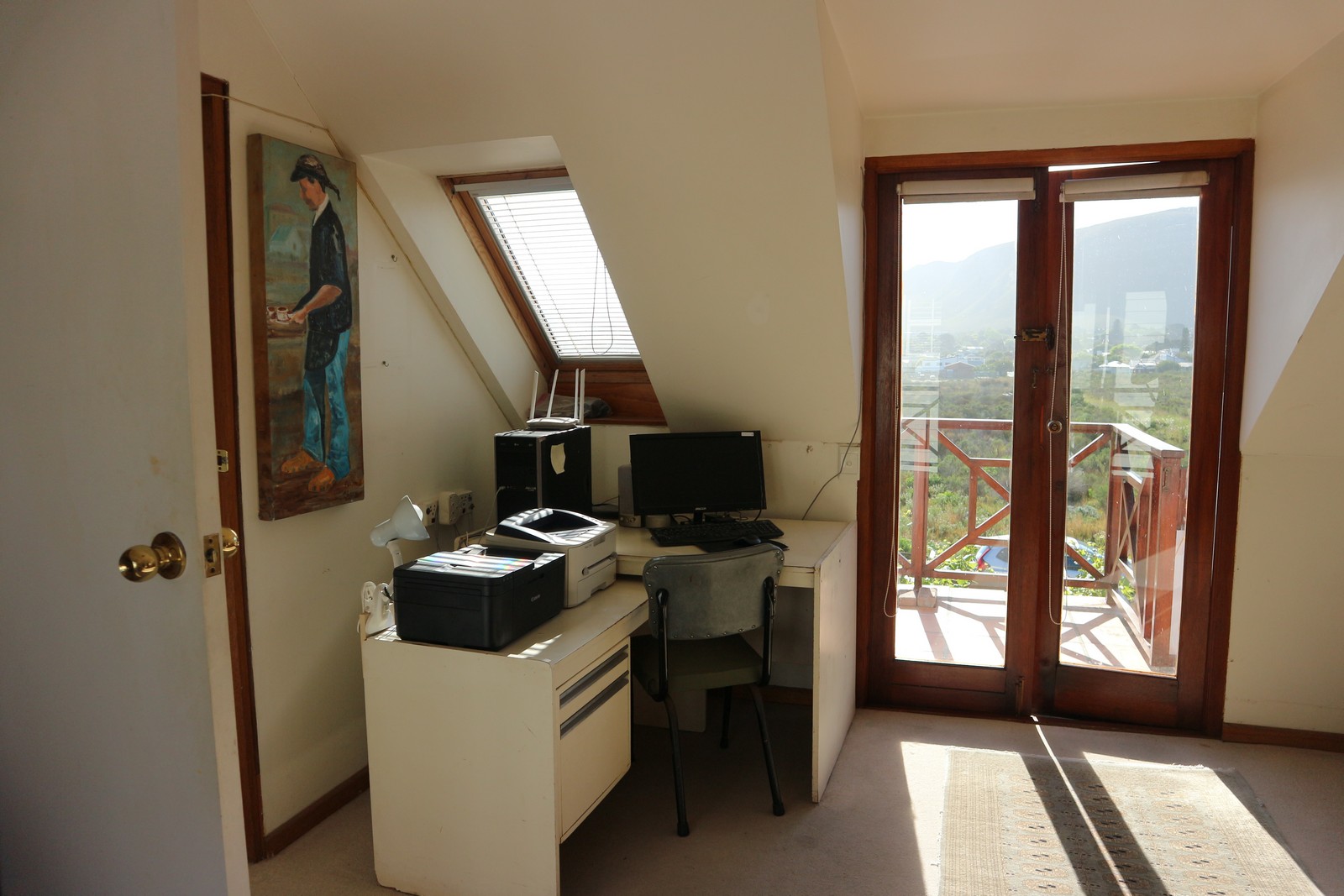 The upstairs master bedroom has an en-suite bathroom. Light and bright sunshine through the big windows. From the master's balcony you have lovely sea views towards the Old Harbour on a clear day. Upstairs is also a spacious study and sunroom leading out onto another balcony.
