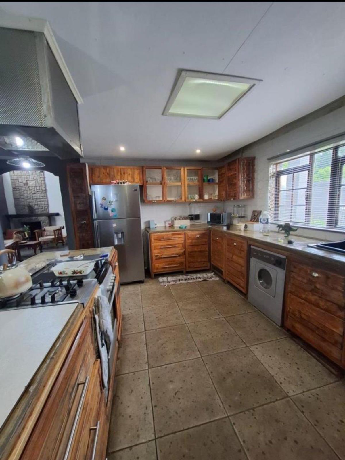 This stunning 5 bedroom, 3 bathroom home offers breath taking scenic views from the bedrooms and entertainment areas. The open-plan design connects a stylish lounge, dining area, and modern kitchen fitted with a gas stove, oven, and gas geyser, ideal for effortless entertaining.