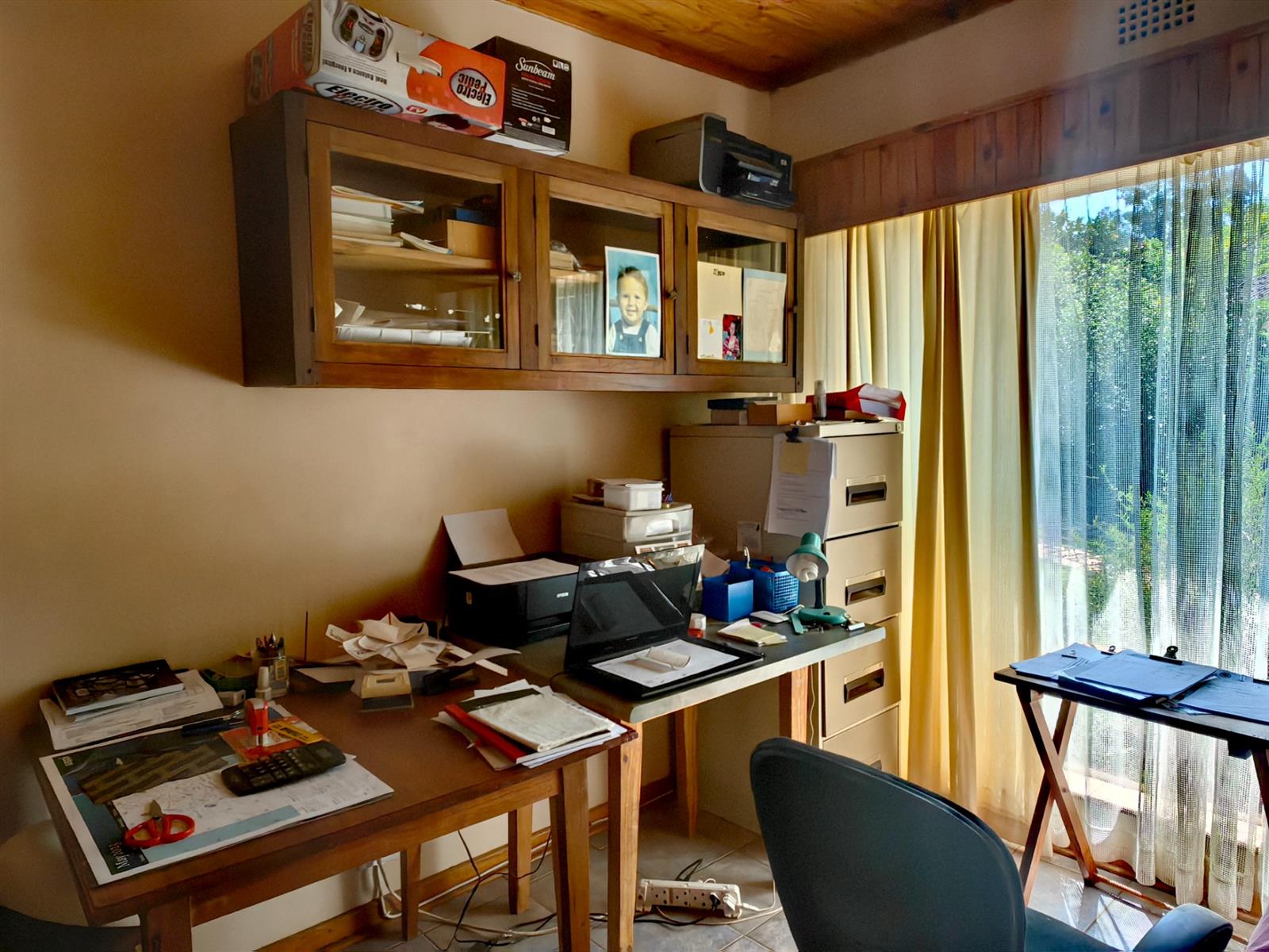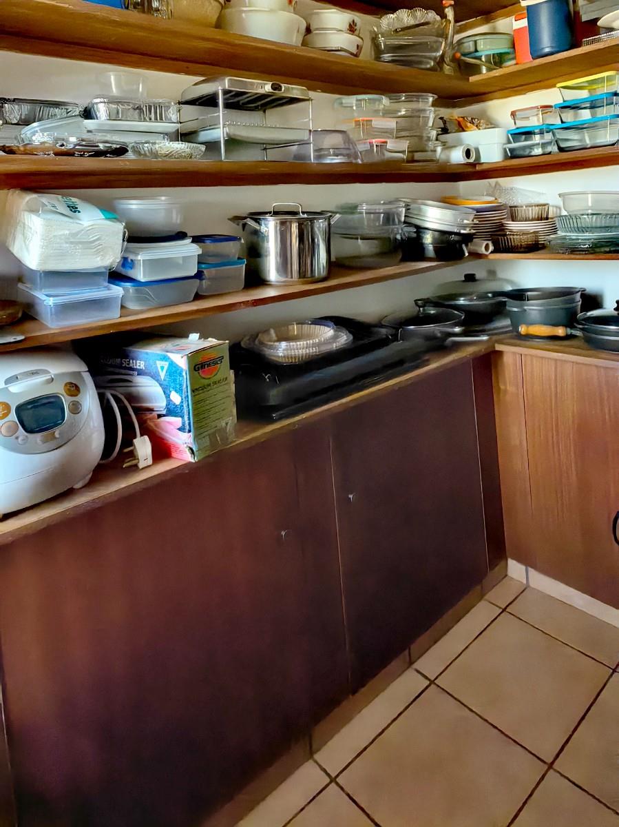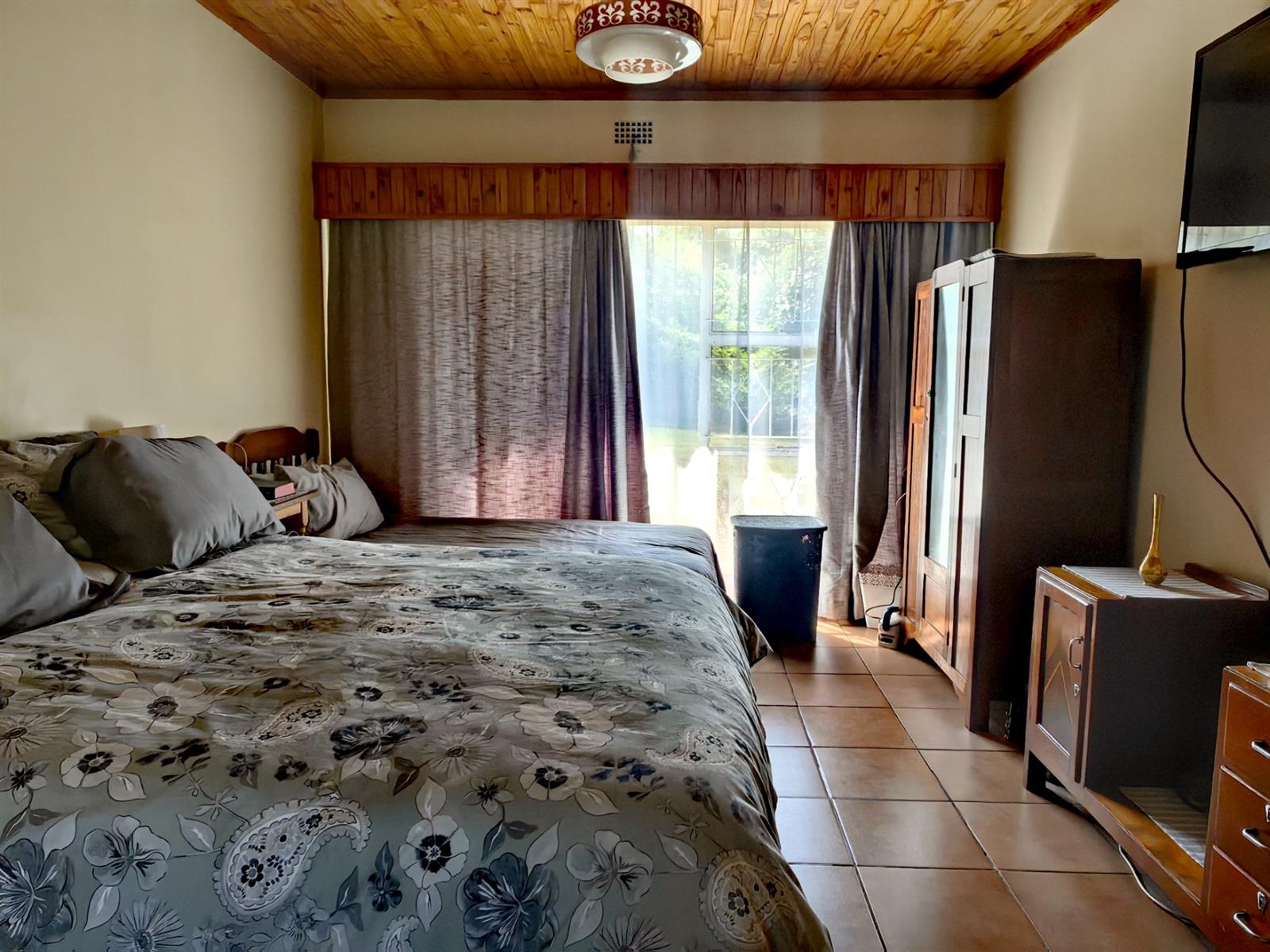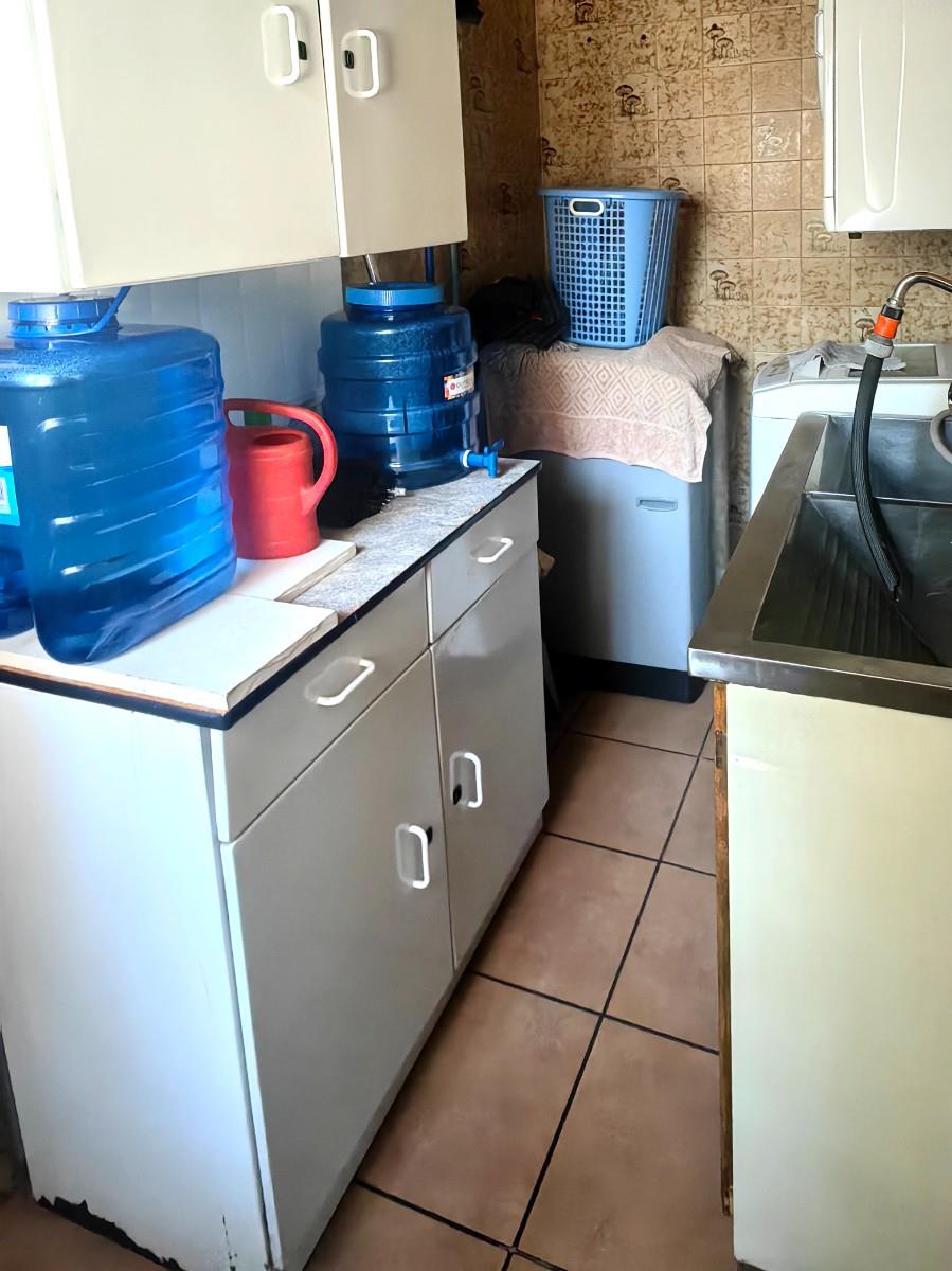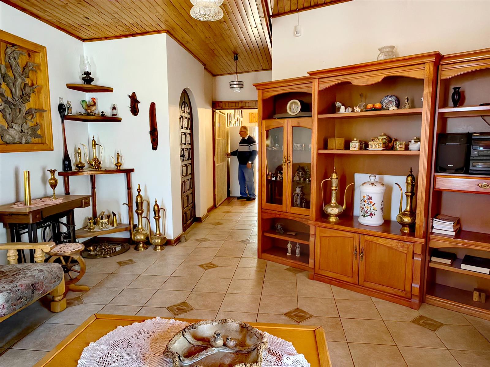 Step into a welcoming, open-plan kitchen that boasts beautiful wooden countertops, built-in cupboards, an electric stove, eye-level oven, a double basin, and a pantry – ideal family cooking. Adjacent to the kitchen is a warm and inviting dining area, seamlessly flowing into a small hallway leading to a spacious and light-filled lounge, featuring large windows that bathe the room in natural light.