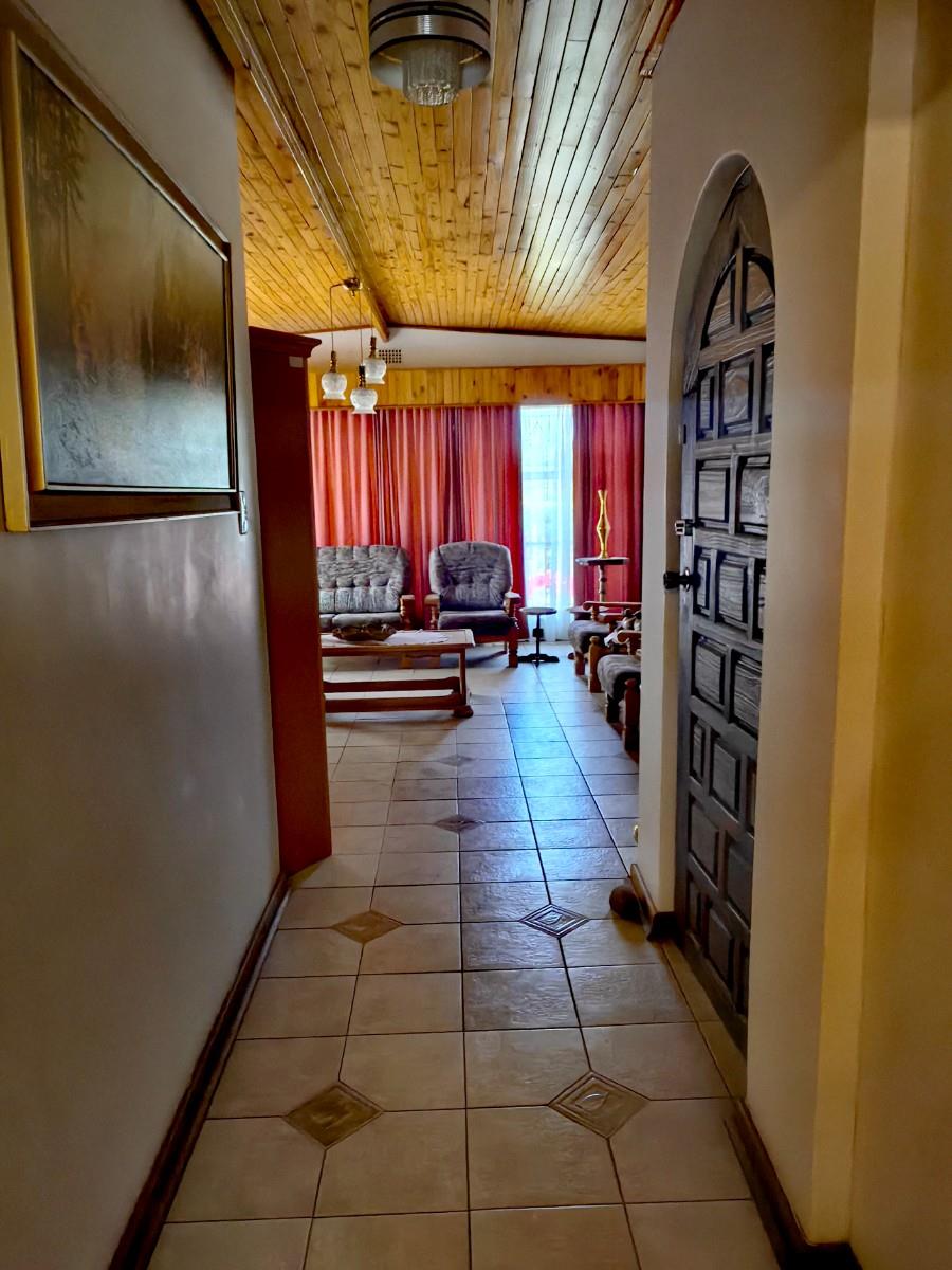 The home is finished with sleek tile flooring throughout and features beautiful wooden ceilings, adding warmth and character to the space.