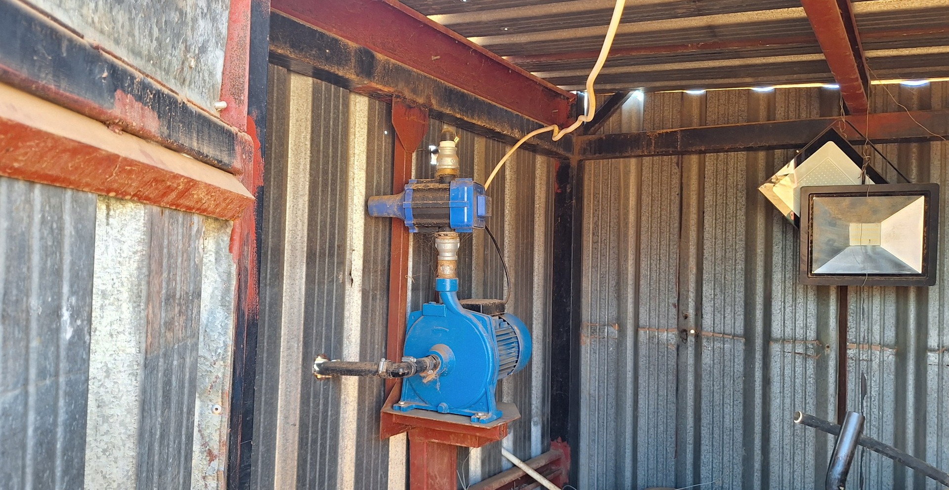 Borehole fitted with pump, and pressure pump and water tank