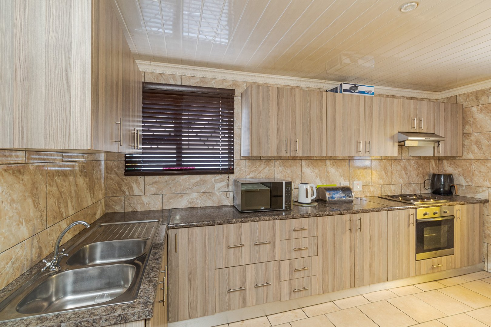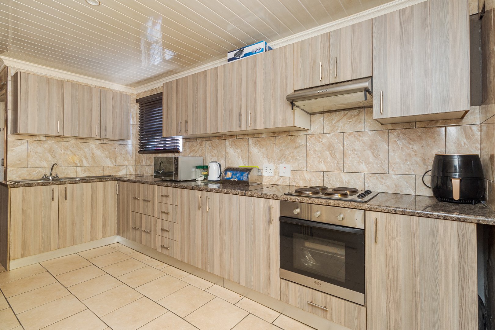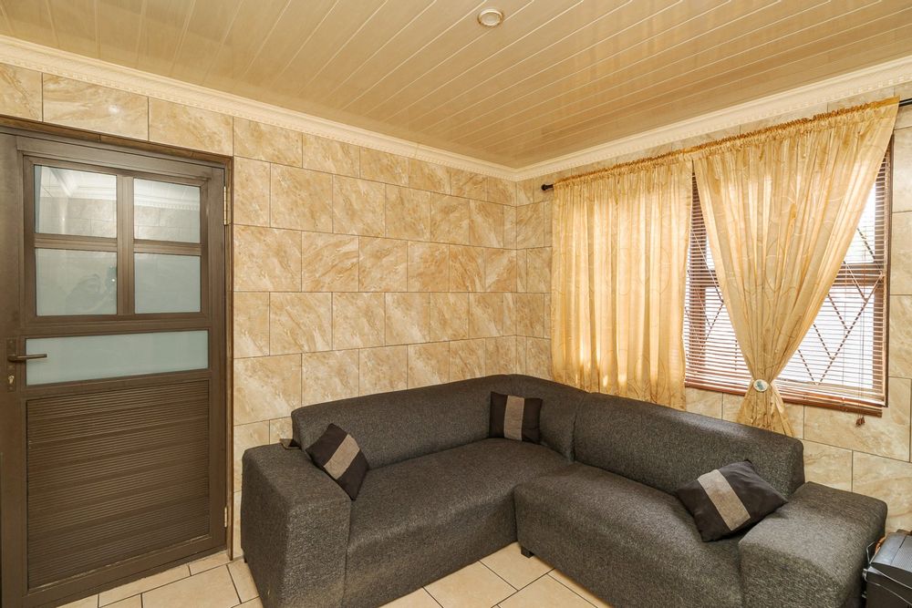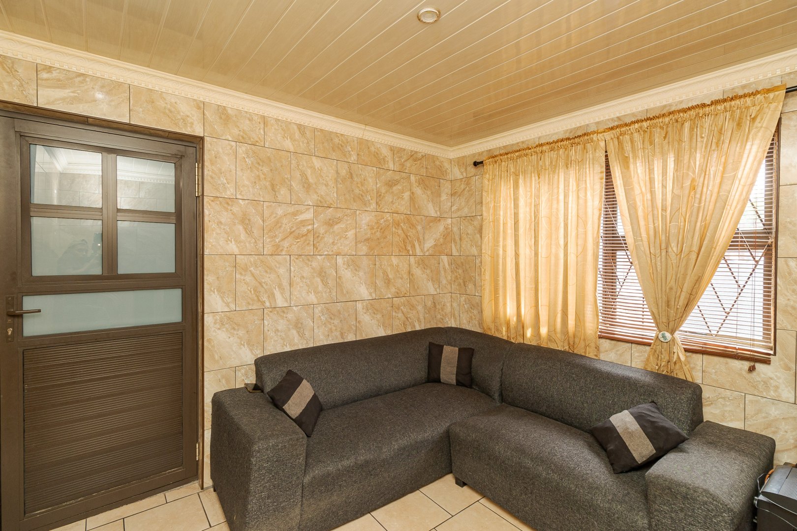 Welcome to this cozy, well-maintained home that offers comfort and practicality! The property features a modern kitchen complete with ample cabinet space, sleek countertops, and double sinks—perfect for preparing meals with ease. The adjoining living area exudes warmth with its tiled walls and inviting layout, making it an ideal spot for relaxation and family gatherings. The neutral tones and natural light filtering through the curtains create a welcoming ambiance.