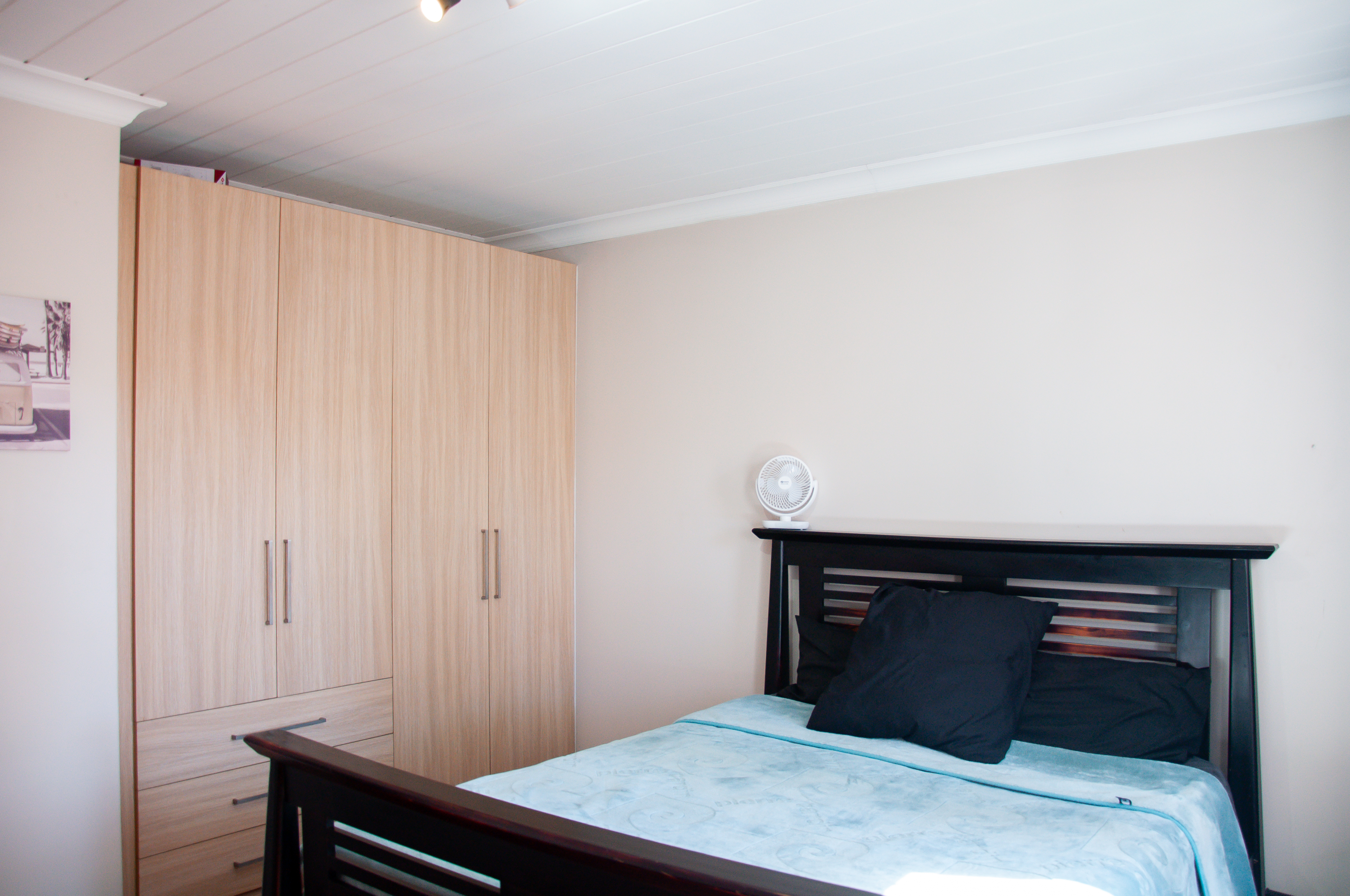 This lovely property is host to two spacious bedrooms with built-in cupboards and one full bathroom