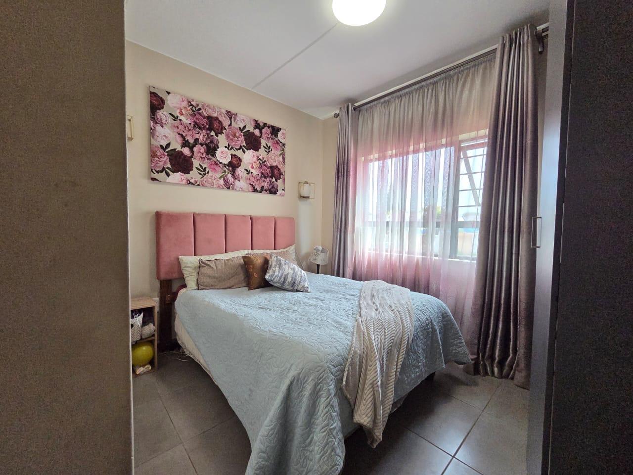This modern 2-bedroom home offers comfortable living with two bathrooms one fitted with a shower and the other with a tap bath. The property includes a sparkling swimming pool and a braai area, perfect for entertaining family and friends. Parking is convenient with space for one open car bay and plenty of additional parking available. Water and electricity are prepaid, giving you full control over your usage. Ideally located near the Mall of Africa, Food Lovers Market, shopping centres, garages, and reputable schools, this home combines lifestyle and convenience in one of the most sought-after areas.