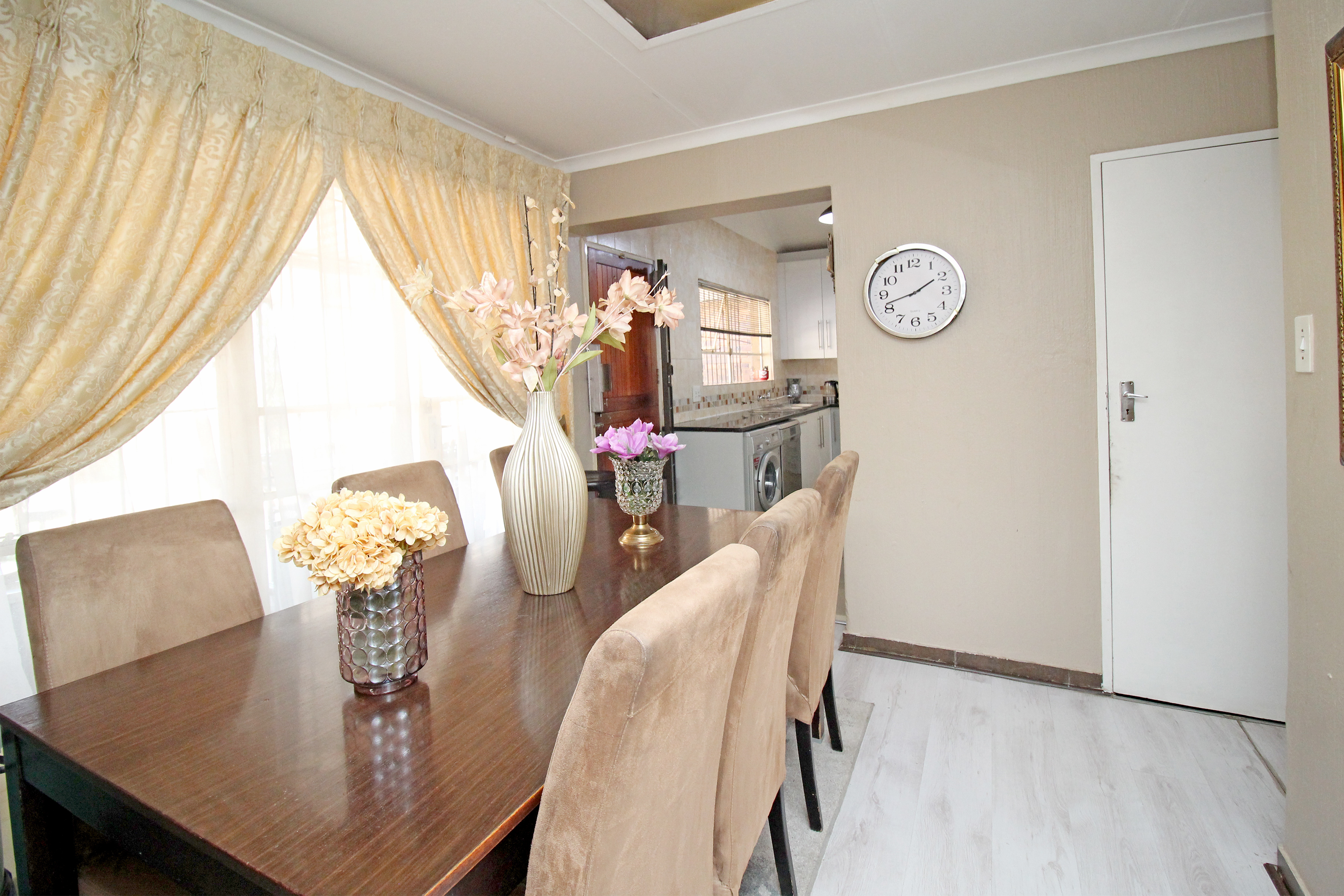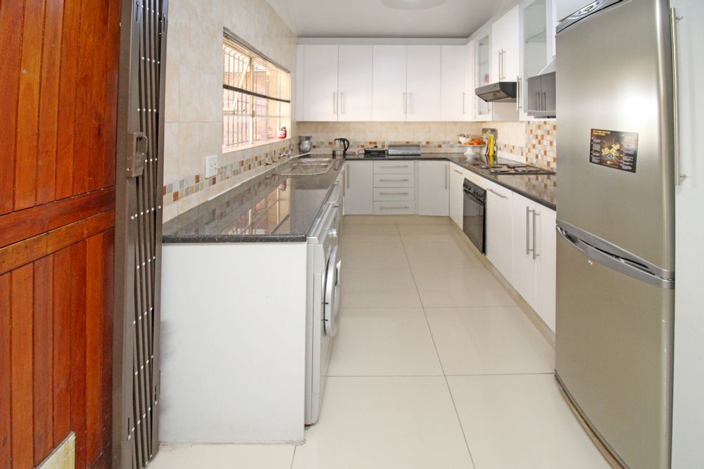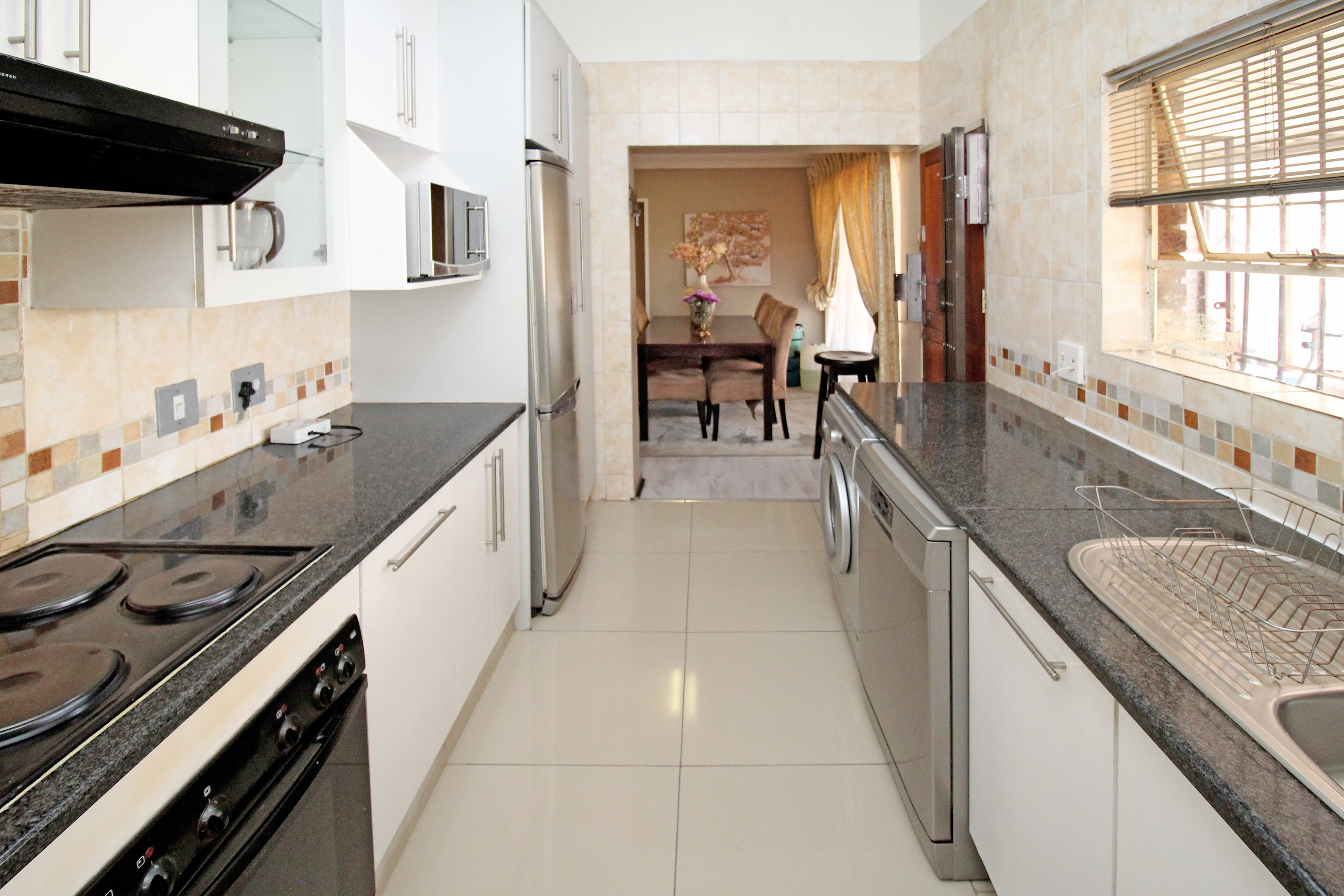Celebrating open-plan living at its best, wonderful spacious, light and airy open-plan living areas all lead out to the covered Patio in a magical I,035 sq.m garden and beautiful pool. - Close proximity to Mall of Africa, good schools and major travel routes for commuting professionals. Stunning modern open-plan kitchen with granite tops. Loads of cupboards and 2 under counter appliances plus single-door fridge.