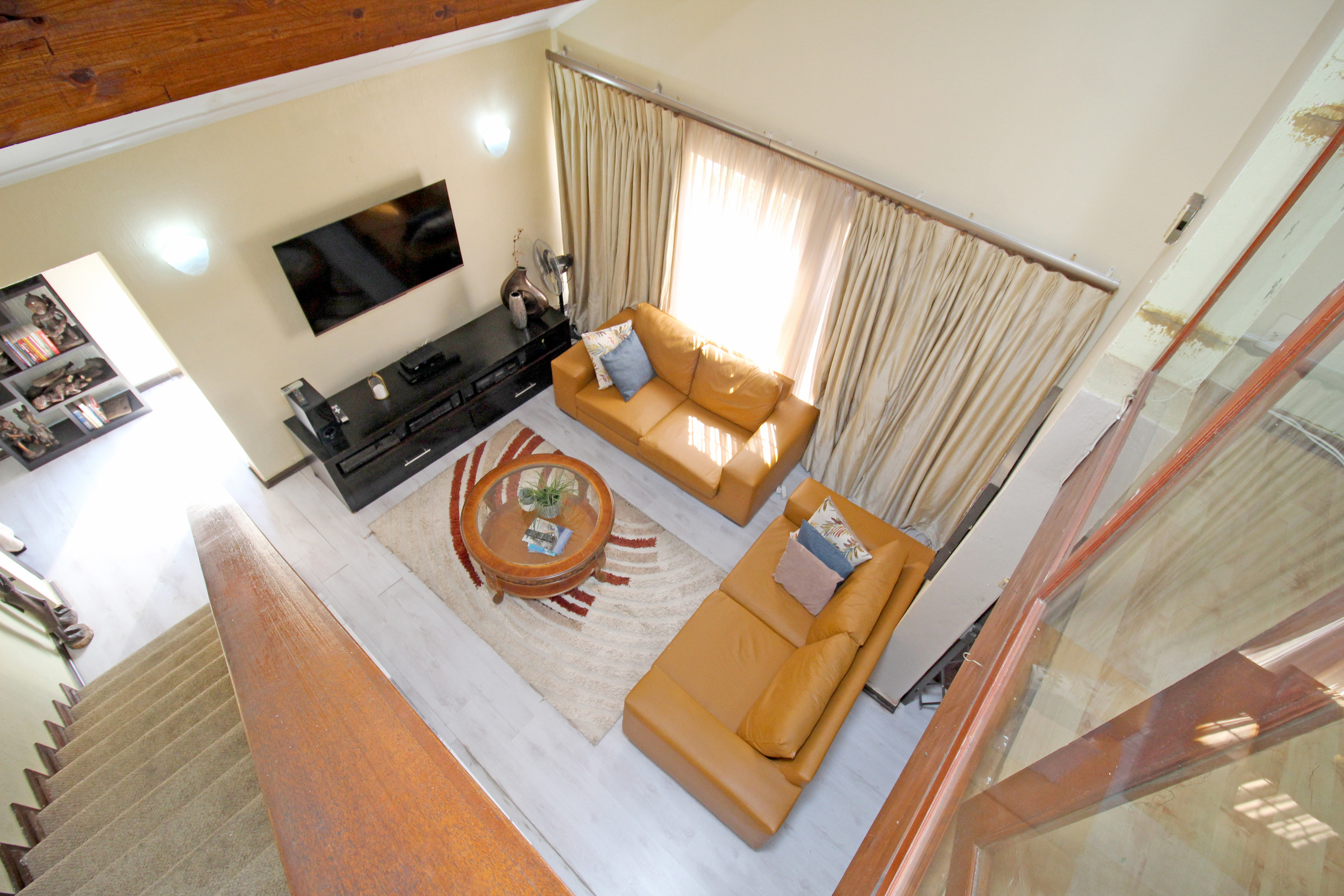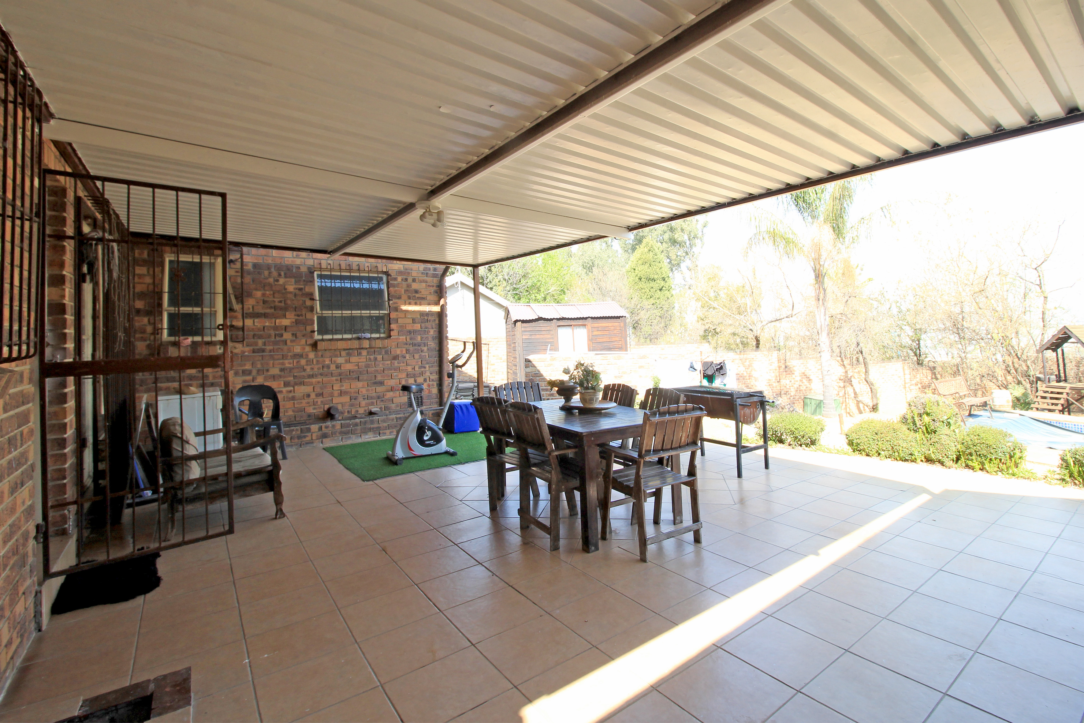 Three generously sized bedrooms overlooking the garden 2 bathrooms (MES with shower, loo, and basin) – all open to the wonderful, covered patio overlooking the beautiful garden and pool. upstairs offers a loft area that can be used as an additional bedroom, an office/study or as an entertainment area. A double garage opens into the house plus has a large shed with power for any extra appliances. Large driveway for kids to play and ride their bikes, to their hearts’ content.