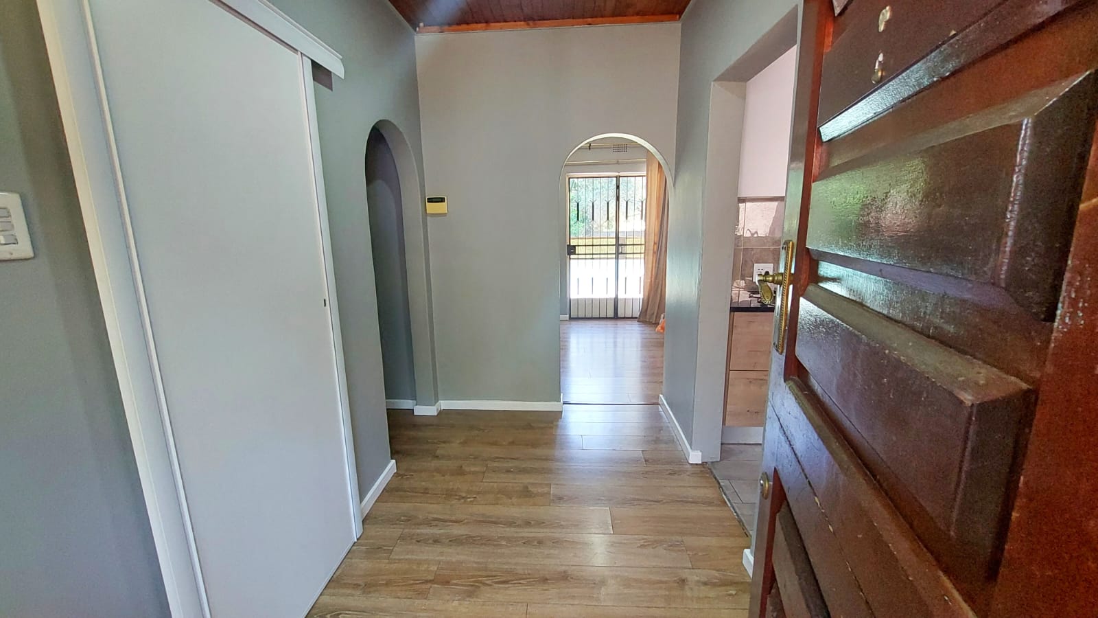 The home features a modern kitchen with ample cupboard space, double fridge space, and room for a washing machine, dishwasher, and tumble dryer. Open-plan living flows into a large lounge with direct access to the pool area, while a separate cozy lounge with a fireplace provides the perfect space for winter evenings.