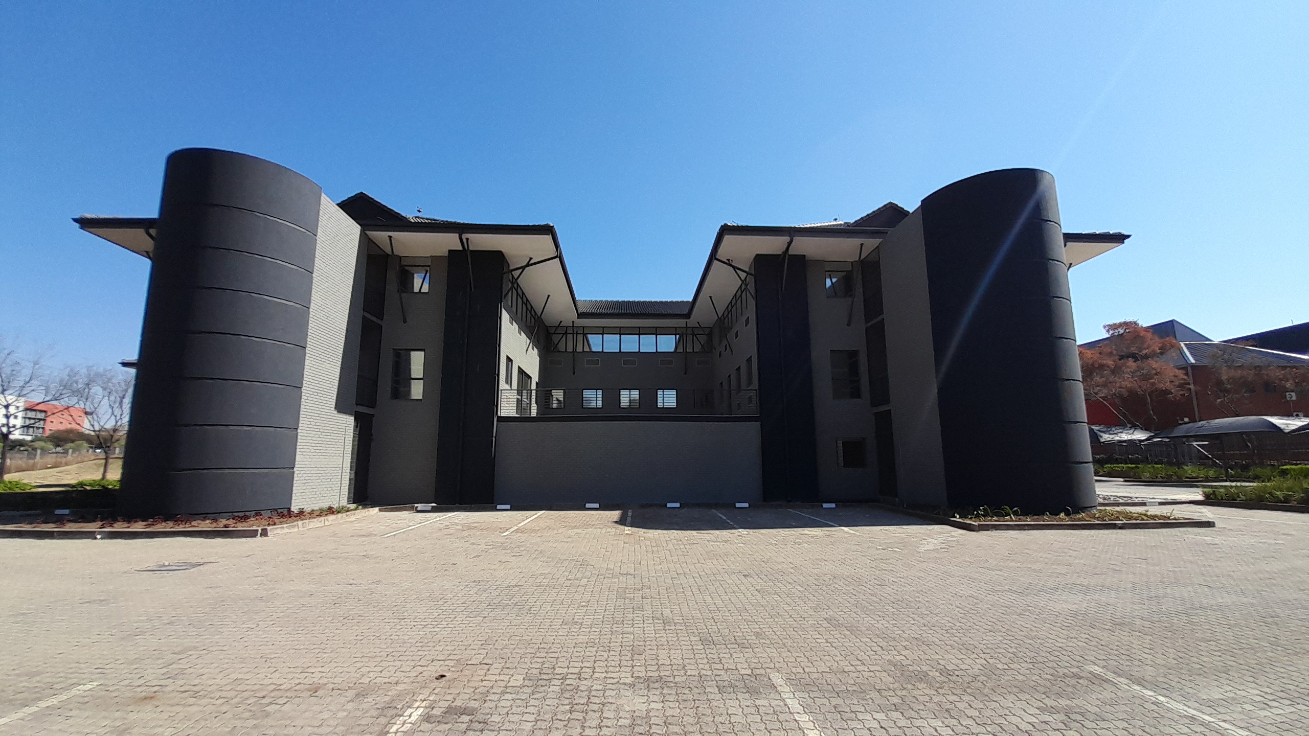 The property is fully secured with perimeter fencing and its own private guardhouse, complemented by the 24/7 access-controlled security of Waterfall Office Park. Parking is exceptionally well catered for with 142 bays, including open, covered, and basement options.