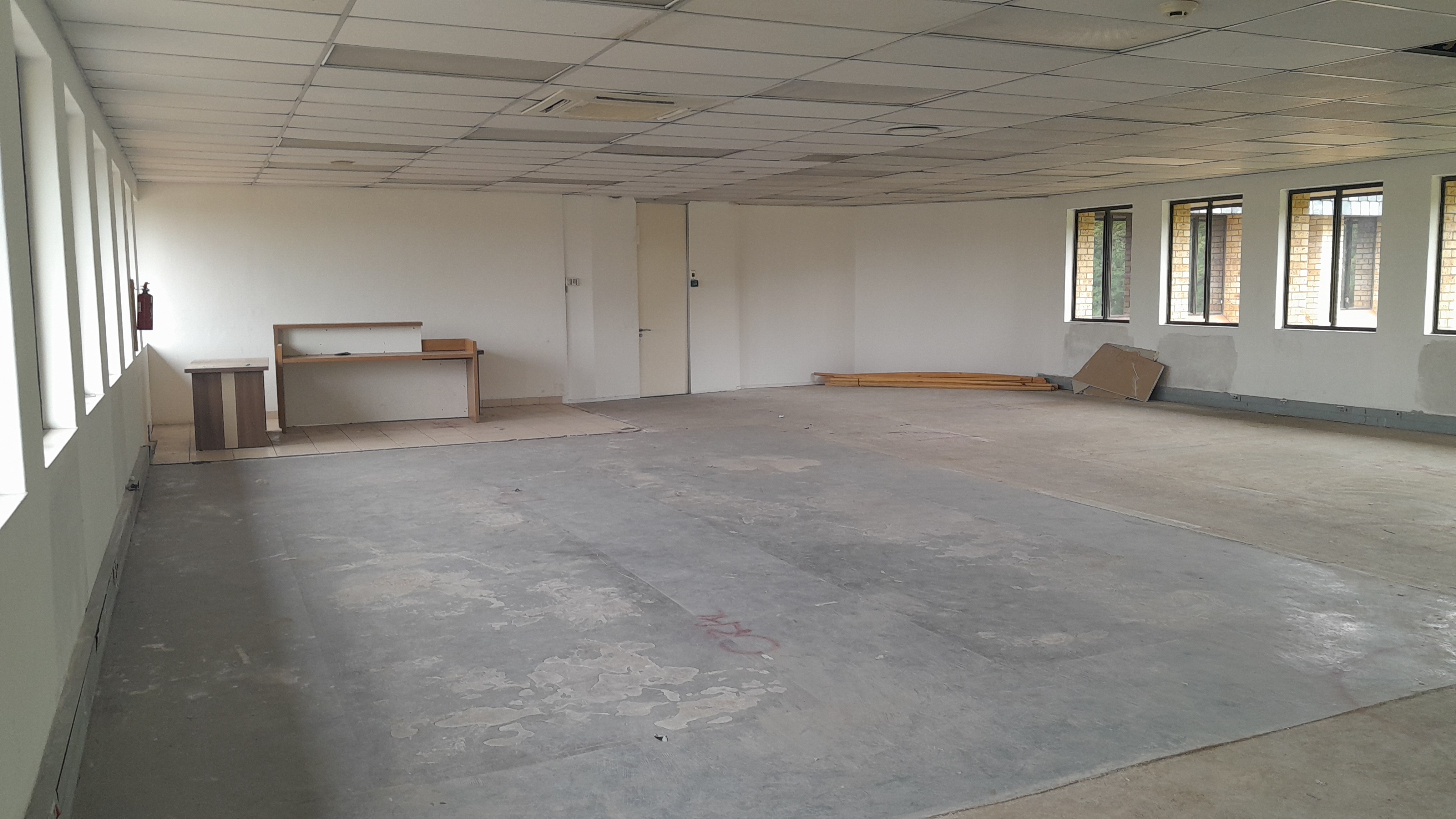 This 186m first-floor office unit is situated in Howick Gardens within the secure and well-located Waterfall Office Park in Midrand. The space offers a clean white box layout with screeded concrete flooring, providing an open-plan environment ideal for a custom tenant fit-out. The layout allows for flexible design options, from collaborative open-plan workspaces to partitioned offices. Communal ablutions and a shared kitchen are available within the building.